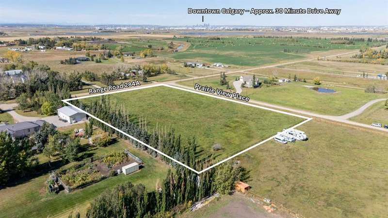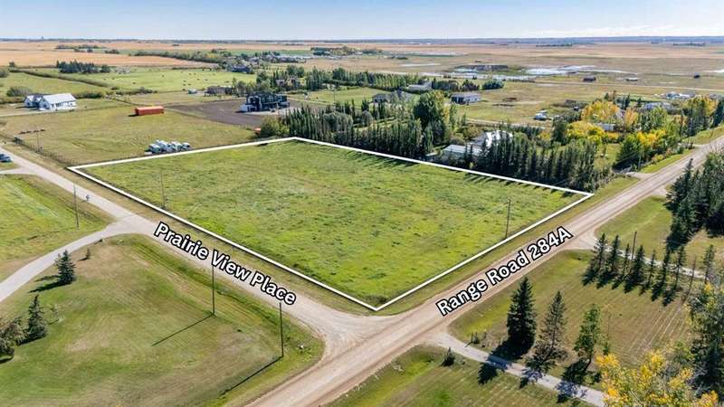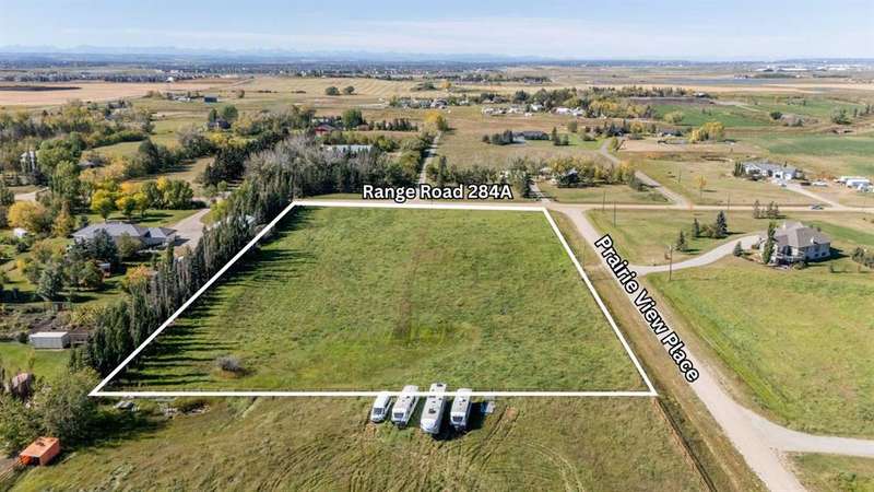 ** Welcome to Your FUTURE DREAM HOMESITE ** This Stunning 3.63-ACRE CORNER LOT is perfectly positioned Just Outside Calgary city limits—offering the Best of Both Worlds: PEACEFUL COUNTRY LIVING with the CONVENIENCE OF CITY ACCESS only 10 Minutes Away. Set in a Quiet Cul-De-Sac among Elegant Estate Homes, this Parcel offers PANORAMIC VIEWS of the City Skyline and the Rocky Mountains. A DRILLED WELL is already in place, and POWER, GAS, AND TELEPHONE SERVICES are at the property line—making it READY FOR YOUR CUSTOM BUILD. There’s Abundant Room for an Accessory Building or Shop, giving you Flexibility to Create the Lifestyle you’ve been dreaming of. Whether you envision a Modern Abode or a Serene Retreat, this Lot is Your BEAUTIFUL BLANK CANVAS. With the TRANQUILITY of Rural Life and NEARBY MULTIPLE AMENITIES in Mahogany, McKenzie Towne, and more… You’re Perfectly Connected—Yet Perfectly Tucked Away. ** Excited?? The Wait is Over and The Opportunity is YOURS -- Schedule your Viewing Appointment Today! ** ....... DIRECTIONS: Beginning in SE Calgary on Stoney Trail --> Exit onto Hwy 22X heading East, then Turn Left onto 104 Street SE (heading North), then Turn Right onto 146 Ave SE (heading East), then Turn Left onto Range Road 284A (heading North), then Turn Right onto Prairie View Place. The Land Lot is located on your Immediate Right after turning onto Prairie View Place (at the Corner of Prairie View Place and Range Road 284A).