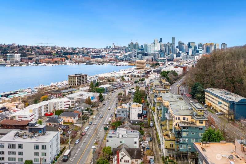 Welcome to The Portal Over Lake Union! This stylish 4th floor condominium w/ expansive & unobstructed views of Lake Union, Cascades, Gas Works Park & 4th of July fireworks! Enjoy this sun filled home w/over-sized windows, gleaming hardwoods, gas fireplace, balcony, and an open floor plan. Efficient kitchen w/ granite counters & ample storage. New interior paint, carpet & privacy shoji screen wall door between bdrm & liv area. Secure gar parking & storage. Entertain guests on the expansive rooftop deck w/ 360-degree views of all that Seattle has to offer. Easy access to Amazon, Facebook, Google, South Lake Union, Expedia, Fremont, Seattle Center & Space Needle, Chihuly Gardens, Cap Hill & Downtown. No Rental Cap/50%rented/Min 7day rental.