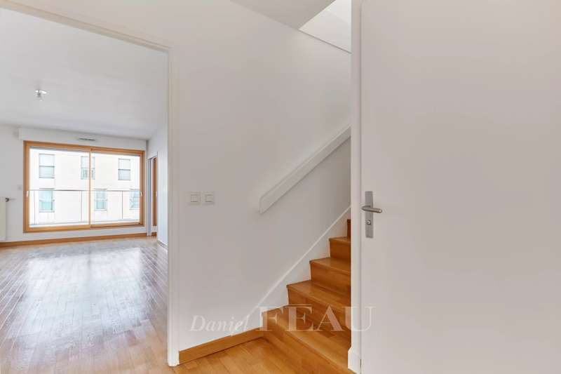 Ile Seguin - Rives de Seine. This bright and peaceful 88.50 four-room apartment is on the 5th and 6t floors of a luxurious and secure recent building in Boulogne’s "Rives de Seine" neighbourhood. It includes a 24.50 sqm living/reception room, a separate kitchen opening onto a terrace, three bedrooms, two bathrooms and two wc. The apartment benefits from two further terraces. With a parking space. A second parking space may be acquired at extra cost.