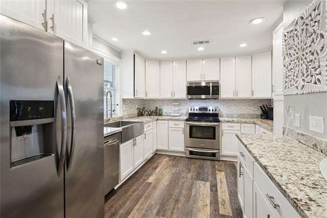 Fall in love with this completely renovated, conveniently located Northshore gem. Redone in 2021: New roof, exterior siding, energy efficient windows, granite countertops, cabinets, appliances, paint, fence and more. Inside you can enjoy high ceilings with a bounty of natural light, separate den and living areas, and an updated kitchen overlooking an expansive L shaped breakfast nook bench. Multiple bar areas allow for an open floor plan where main areas flow together. No carpet, walk-in closets and oversized bedrooms. The garage has been converted into 3 sep. spaces- laundry room, a studio/ office with separate entrance, and a large storage space. Cabinets and closets can be found all throughout the home, allowing for endless storage options. Outside, a new 12' x 48' covered patio spans the entire back exterior wall of the home. Enjoy entertaining with an oversized fully fenced backyard and ample garden space. Located in a preferred flood zone, multiple parks and a community pool top off everything you need in a location. Call today to schedule a private showing!