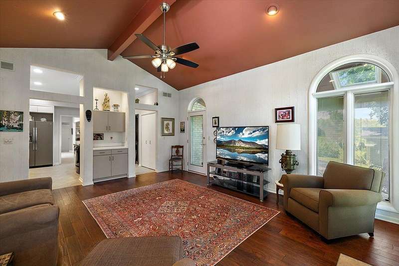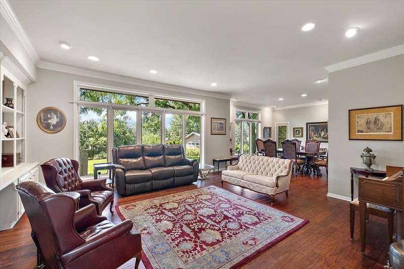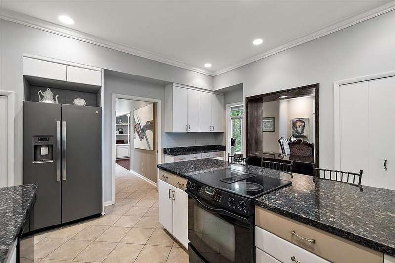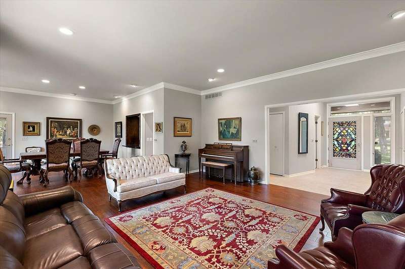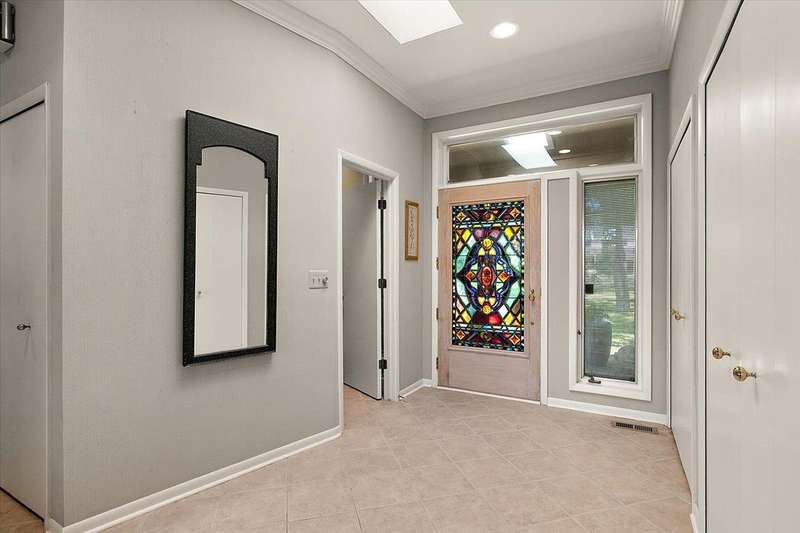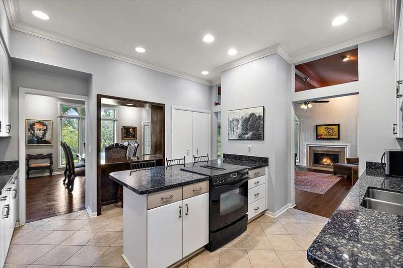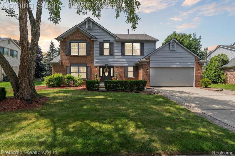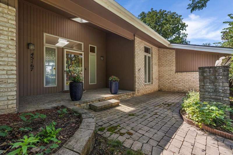 Welcome to this open floor plan ranch home in the highly sought-after Northville School District with over 2500 square feet of one level living space and an additional 1000 square feet in the finished lower level. Set back deep on a large half-acre lot on a quiet section of 9 Mile Road. Foyer with skylight flows into the formal living and dining rooms, featuring built-in cabinetry, crown moldings, and views of the private backyard. The kitchen with granite countertops, a center island, and white cabinetry opens into the dining area and expansive family room, where pitched ceilings, large windows, and a fireplace create a warm and inviting atmosphere. Enter the bedroom wing to find a spacious primary ensuite which includes a bathroom with a soaking tub and separate shower. Two additional large bedrooms and a full bath complete this area. The finished lower level includes a second family room and fireplace. The attached garage opens into a convenient mudroom, which could easily be converted into a laundry room. Outside, enjoy a spacious patio, storage shed, and plenty of room to relax or entertain. Walking distance to downtown Northville with Novi City taxes.