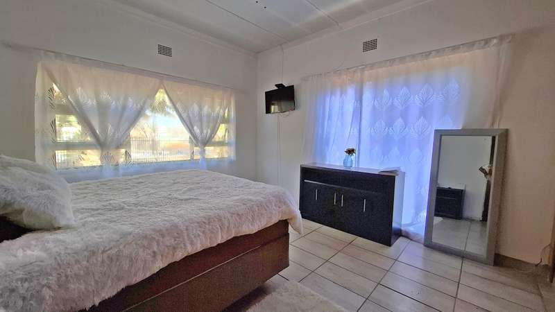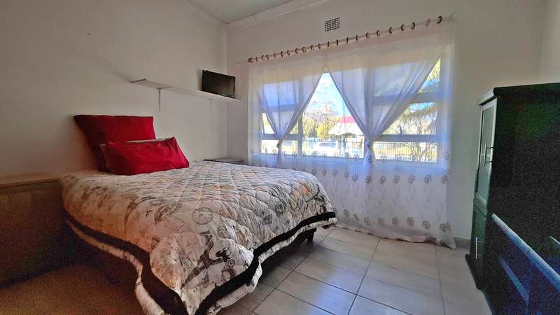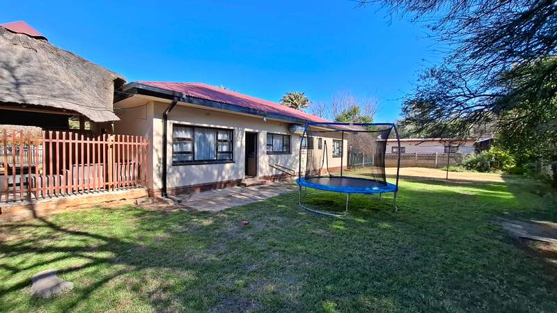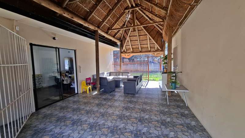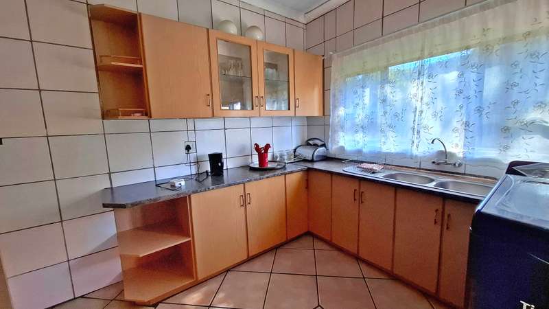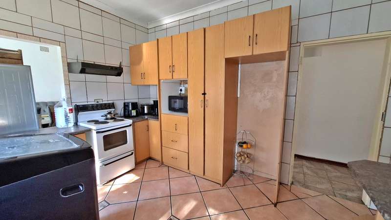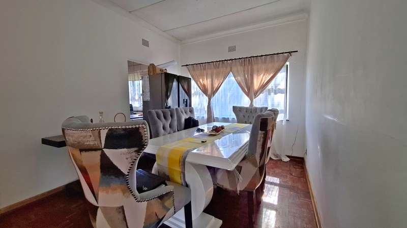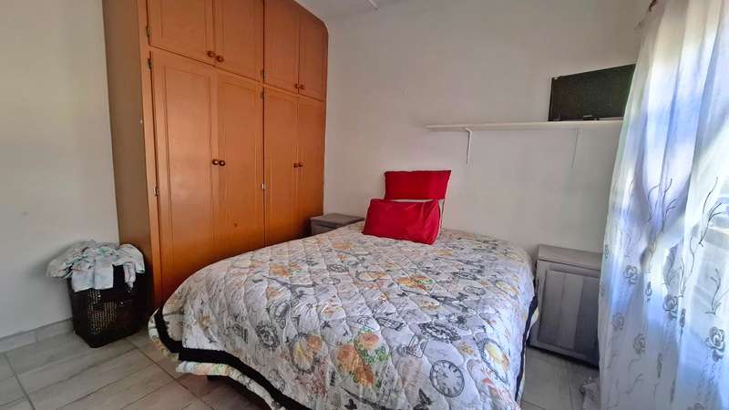 This well-maintained 3-bedroom family home offers comfort, space, and practicality—perfect for relaxed living and entertaining. Step into a light-filled open-plan living and dining area, complete with sliding doors that lead out to a spacious entertainment area—ideal for gatherings with family and friends. The kitchen is functional and inviting, featuring a freestanding oven and ample space to create your culinary favorites. All three bedrooms come with built-in cupboards, while a convenient linen cupboard adds extra storage. The full bathroom includes a bath, basin, and shower, with a separate toilet for added convenience. Security is a priority, with burglar bars and security gates throughout the property. An automated garage and additional carport ensure secure parking, and staff quarters with an outside toilet provide flexible utility space. Other great features include aluminum windows and doors for low-maintenance durability, and a JoJo Tank already connected to the house—perfect for backup water supply. A fantastic opportunity to own a solid family home with everything you need. Don’t miss out!