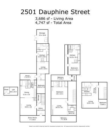 Great opportunity for an owner-occupied residence with four additional rental units to offset expenses, and tons of potential to renovate and/or reconfigure to a grand single family home or alternative unit mix. This handsome 1850s Greek Revival Double Gallery property is located at the prime intersection of Dauphine St and St. Roch Avenue in the heart of the vibrant Marigny neighborhood. Numerous restaurants, bars, music venues, and shops just minutes away, plus easy access to Crescent Park and a short stroll to the French Quarter. The corner lot provides easy access to the rear yard, parking for multiple vehicles, and allows in plentiful natural light. Stand-out features include large front and rear balconies to enjoy the gorgeous spring weather, views of the downtown skyline and ships passing in the river, tall ceilings throughout, original floors and mouldings, exposed fireplaces, and architectural details inside and out. One unit currently owner-occupied, one unit vacant, and three under lease. CASH or Commercial financing will be necessary with 5-unit configuration - will not qualify for conventional OR FHA/VA loans.