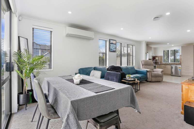 Step into style, comfort, and convenience with this stunning 3-bedroom corner freehold home—designed to impress and built to last with the remaining 10-year Master Builder Guarantee. Enjoy open-plan living with a sleek kitchen, dining, and lounge area, complemented by a heat pump and ventilation system for year-round comfort. Two dedicated car parks add everyday convenience. Upstairs, you'll find three peaceful bedrooms, a full family bathroom, and a handy guest toilet downstairs—perfect for growing families or guests. Outside, a sun-soaked, fully fenced yard offers a private, low-maintenance retreat—ideal for relaxing or entertaining without the hassle. Perfectly located just a short stroll to Kauri Flat School, Southgate Shopping Centre, Awakeri Wetlands, parks, playgrounds, and a quick drive to the motorway. Everything you need is right here! Whether you're a first-home buyer or an investor looking for a smart move—this is the one. Call Team DNA today—your dream home is just one call away!