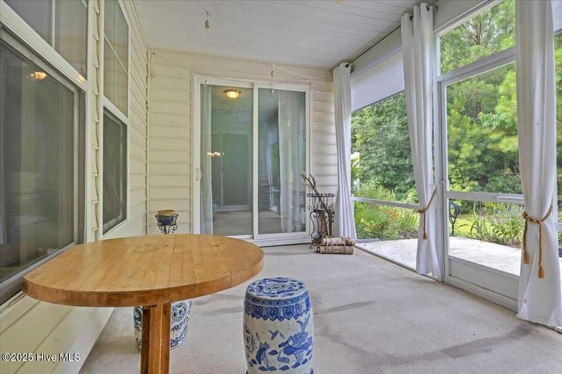 Start your next journey in the amenity rich community of Hawkeswater! Community pool and exercise facility are just steps away from this lovely townhouse, and the marina is just across the street from the neighborhood entrance.As you enter the beautiful home filled with natural light, you'll notice the soaring nine foot ceilings.The kitchen features 36-inch white cabinetry, granite countertops, and stylish subway tile backsplash. The open-concept living and dining areas boast cathedral ceilings and are bathed in natural light, with windows surrounding the space and leading to a spacious screened-in porchperfect for catching the warm summer breeze.For ultimate outdoor enjoyment, step onto the expansive 7x19 patio, where lush greenery and peaceful natural surroundings create your own private oasis.The main-level primary suite is a true retreat, complete with cathedral ceilings, direct access to the screened-in porch, a large walk-in closet, and a spacious en-suite bath featuring a dual vanity, walk-in shower, tile flooring, and generous storage including a full-size and linen closet.Also on the main floor: a full bath, a guest bedroom with 9-foot ceilings, and a third bedroom with cathedral ceilingsperfect for visitors or a home office.Upstairs, you'll find a fourth bedroom with a walk-in closet and easy attic access, offering extra space for guests, hobbies, or storage.A rare find in this community, the finished TWO-CAR GARAGE comes equipped with a dedicated mini-split HVAC systemideal for a workshop, fitness area, or protecting your custom vehicle from the elements.Worry-free living is part of the package: the HOA covers landscaping, gutter cleaning, annual dryer vent cleaning, exterior power washing, and trash removal.