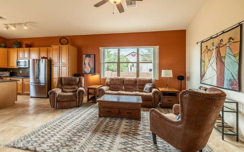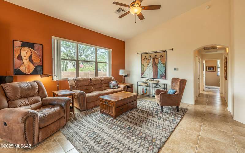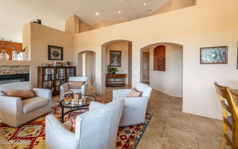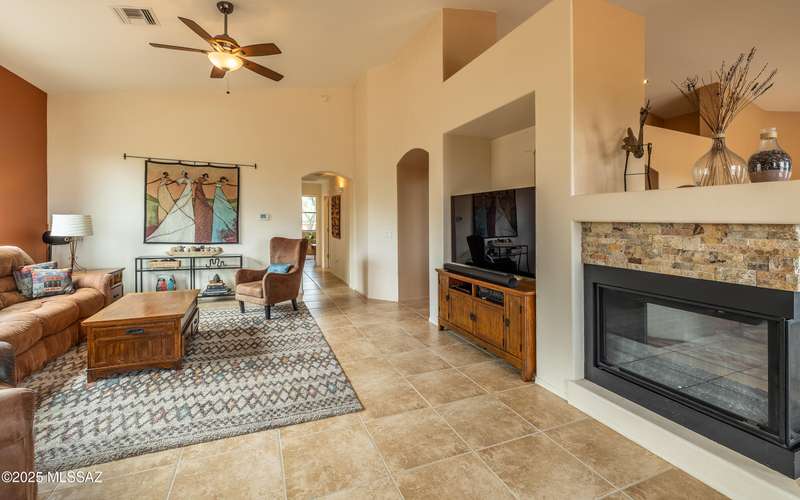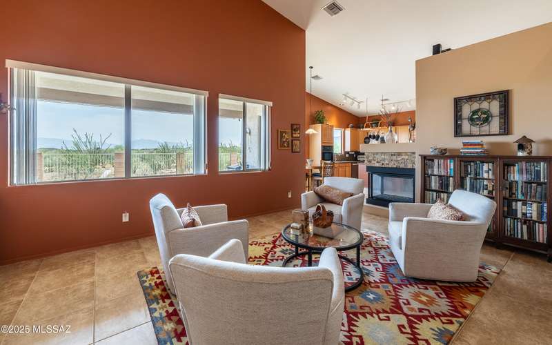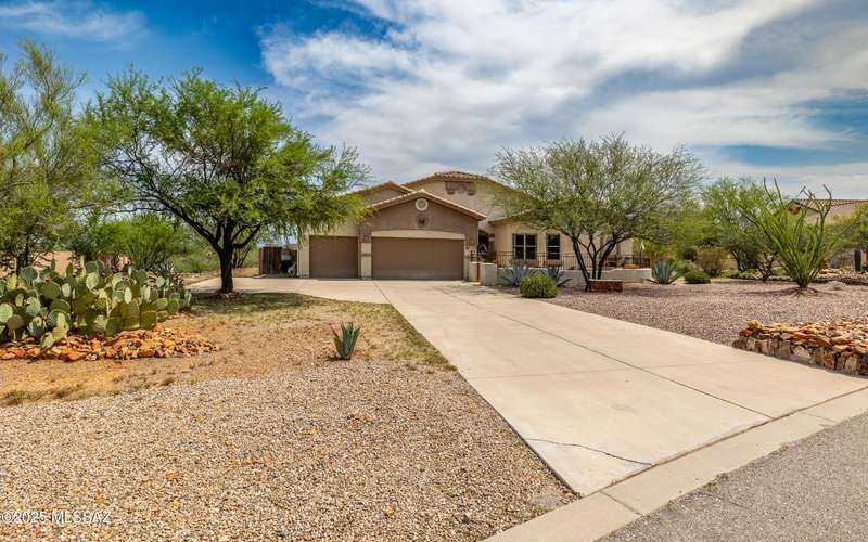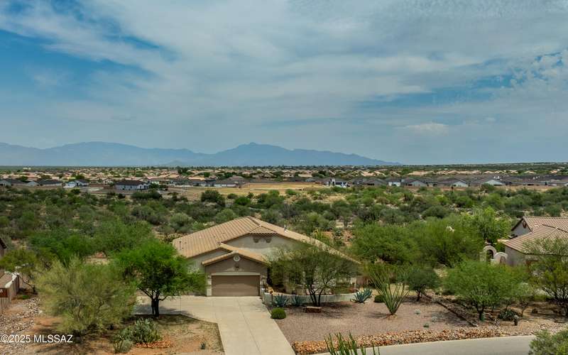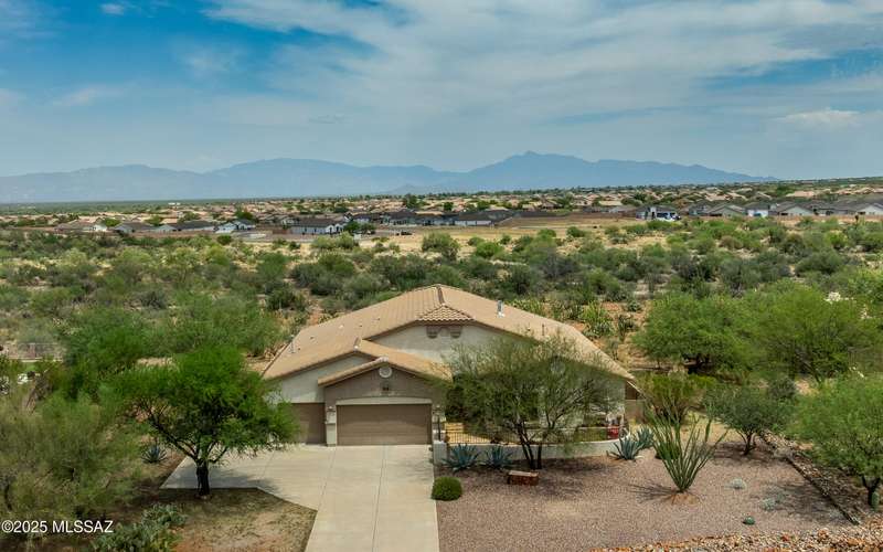 Beautiful and immaculate semi-custom 4-bedroom, 2-bath home with 2,474 sqft, set on a 0.80-acre lot offering stunning mountain and desert views, and privacy. The desirable split, open floor plan showcases soaring ceilings, natural light, tile flooring throughout, and a newer gas fireplace as a warm focal point. A spacious 3-car garage provides generous storage and parking. Community amenities include a pool, basketball courts, a park, and scenic desert trails. Located in the Vail School District, with convenient access to Raytheon, the Tech Park, and Tucson International Airport.