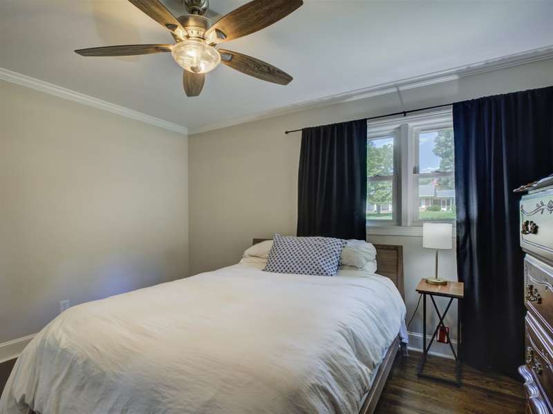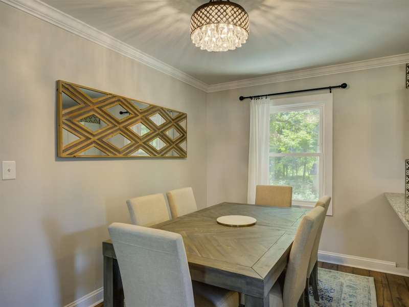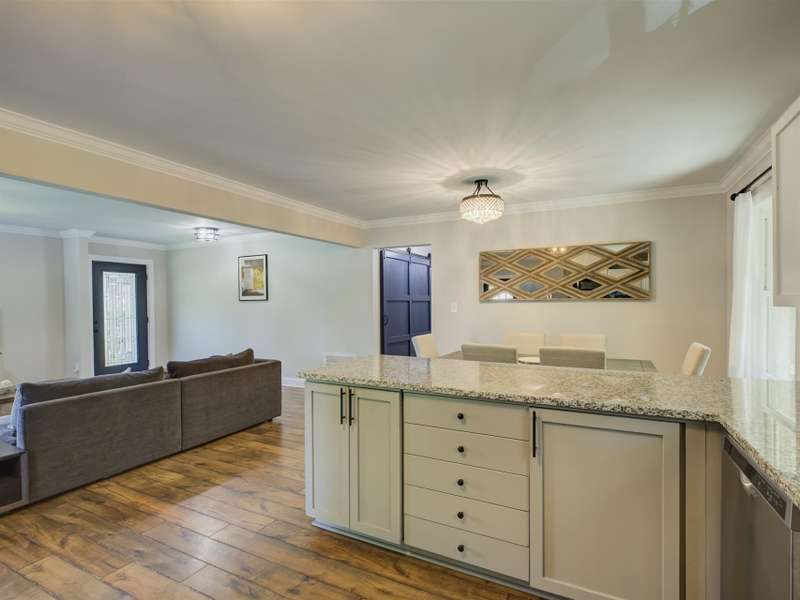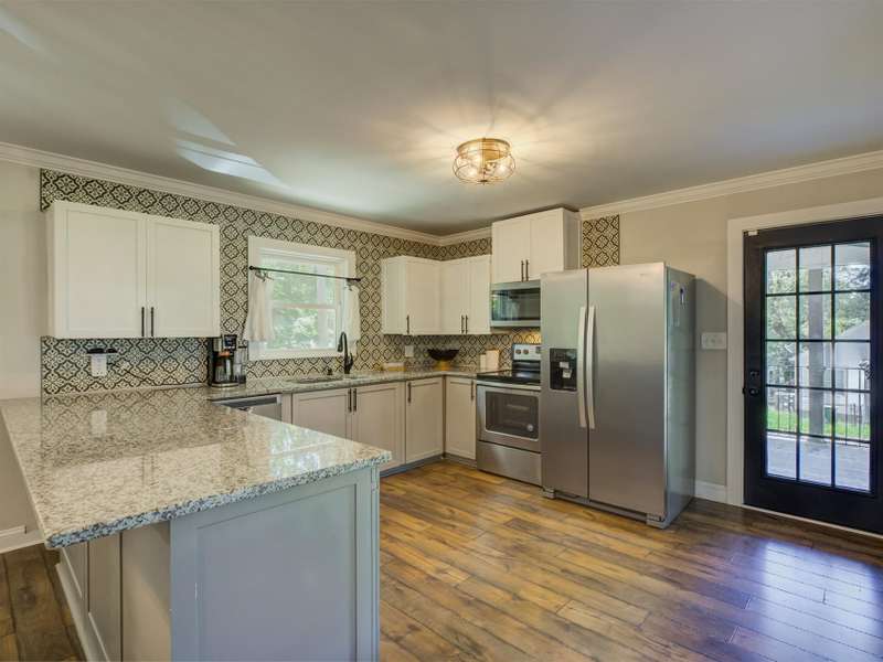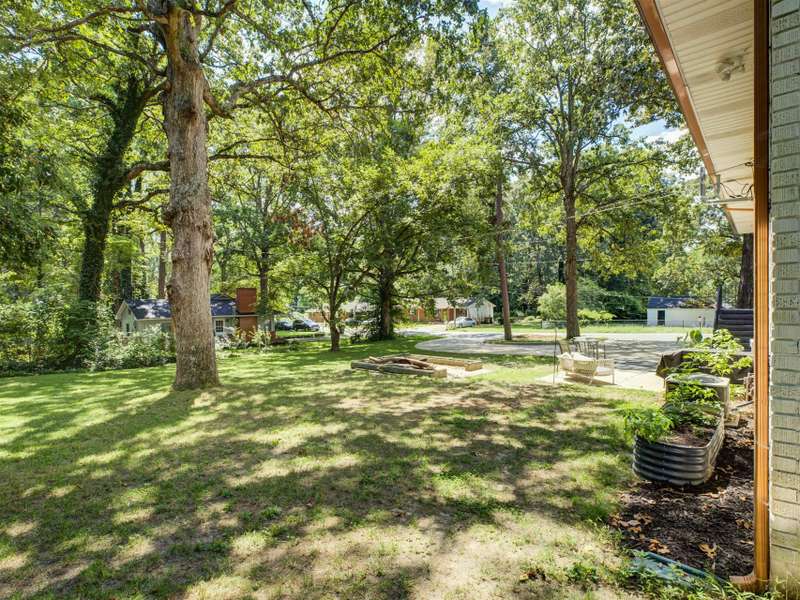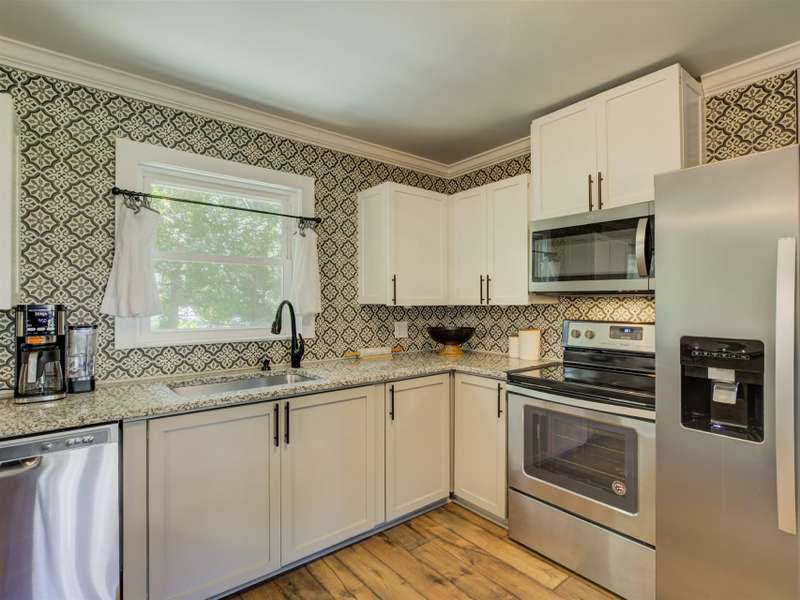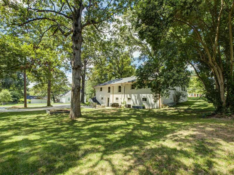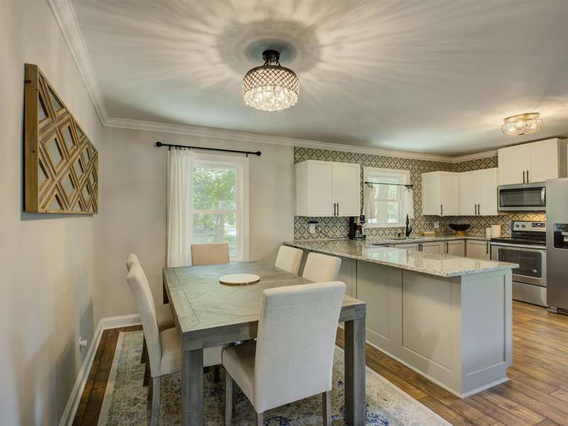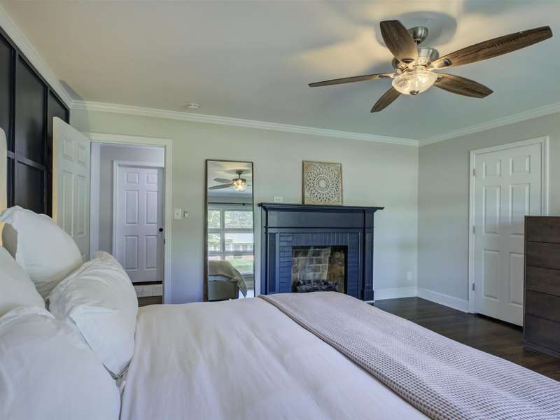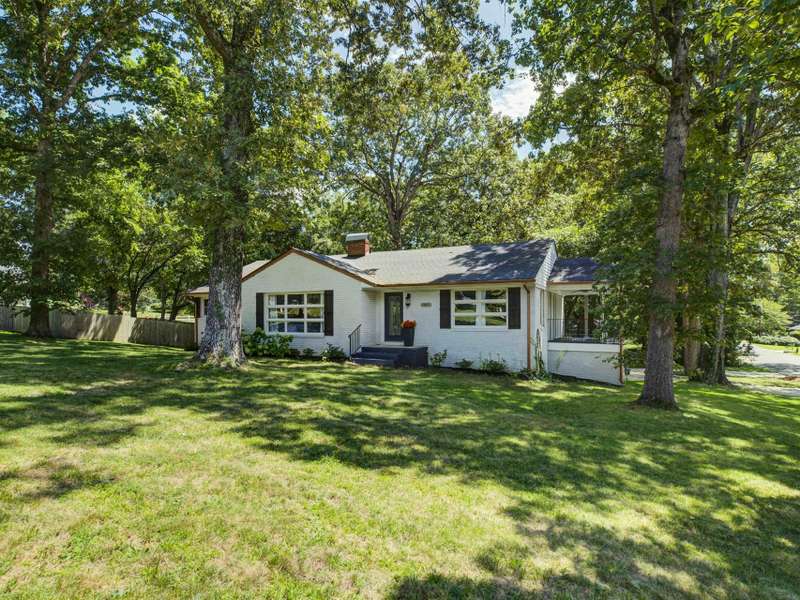 Full of character and modern updates, this 4-bedroom, 2-bath home offers over 1,700 sq ft with a spacious living area and open floor plan that flow easily for everyday living and entertaining. The corner lot sits on nearly half an acre, set back from the main road for privacy with a circular driveway for easy access. The kitchen features a breakfast bar with dining space and connects seamlessly to the main living space, making it a natural spot to gather. The primary suite stands out with large windows, an accent wall, and a fireplace for a comfortable retreat. A basement with exterior access adds storage and flexibility. Outdoors, the side covered deck and large patio extend the home's living space, perfect for relaxing or hosting guests.