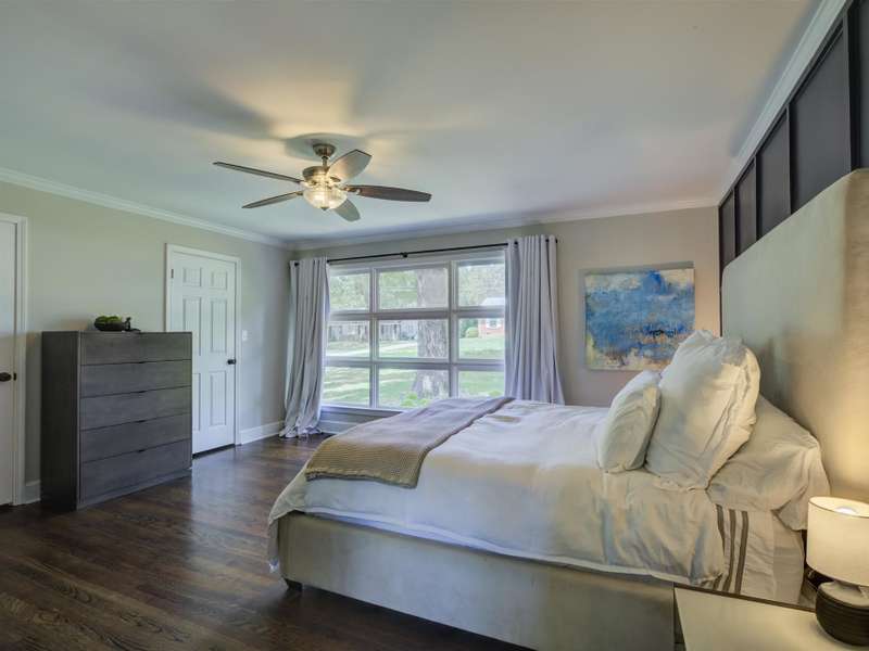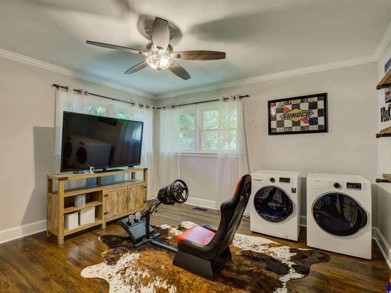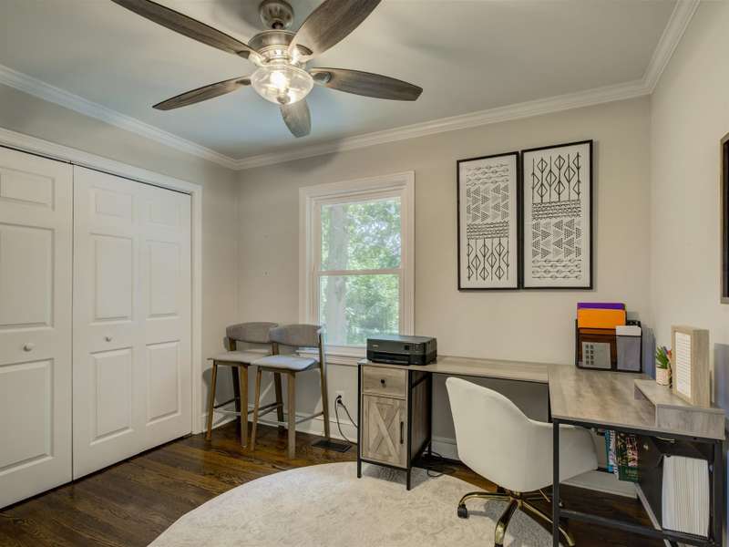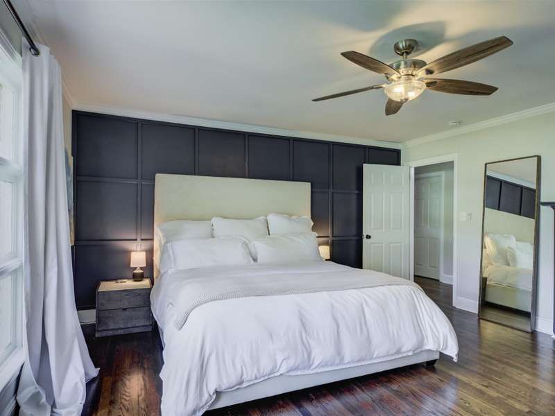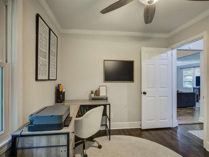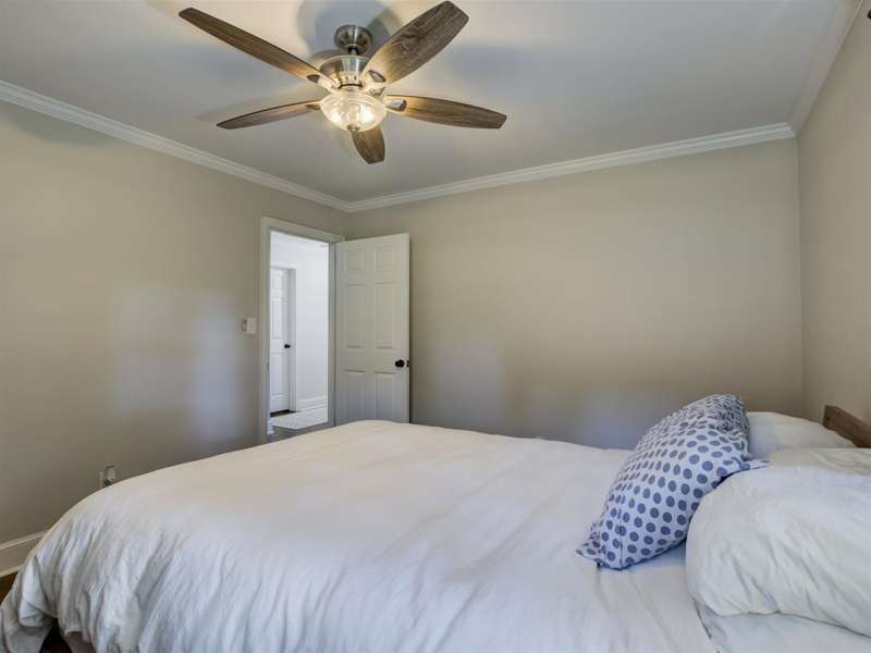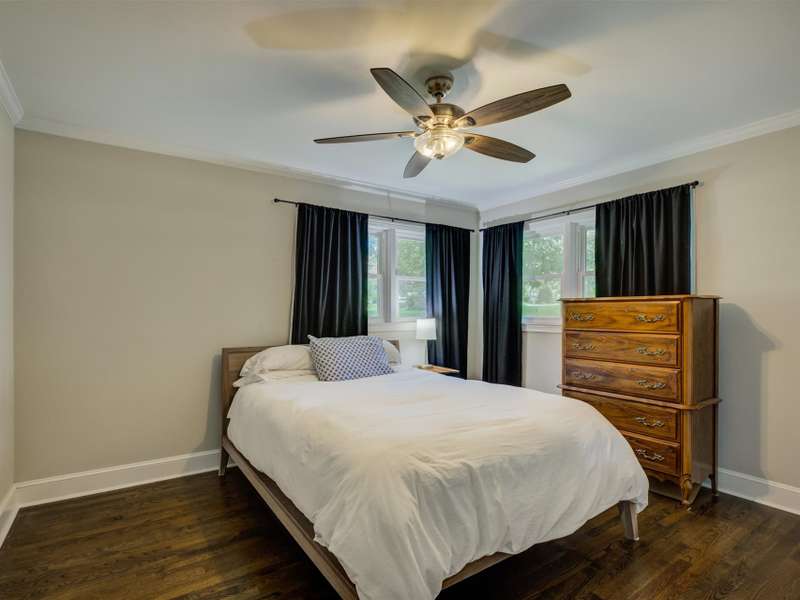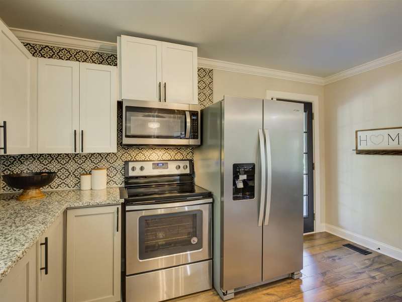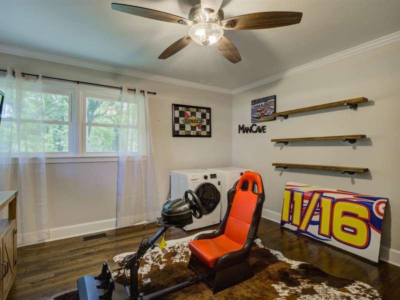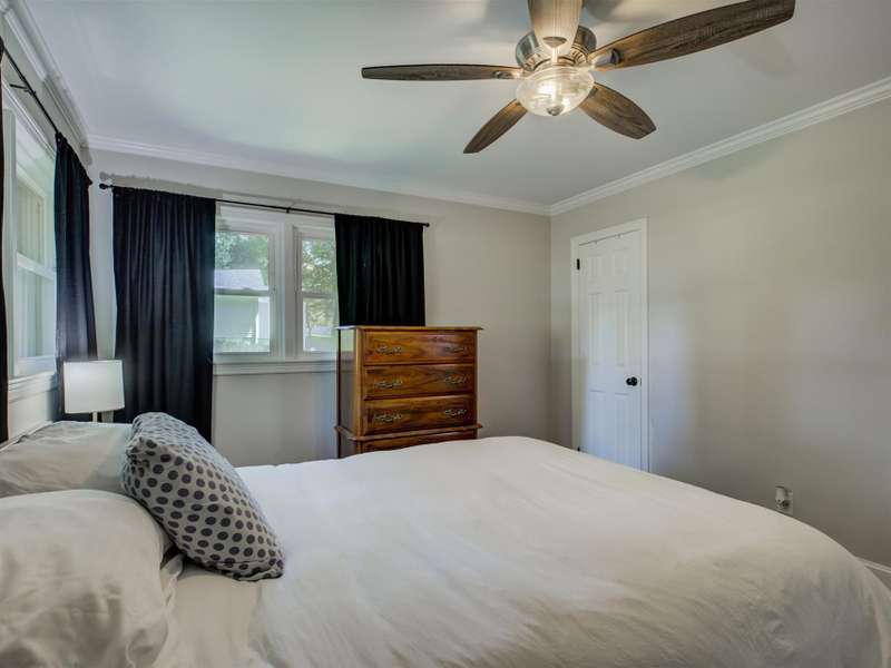 Full of character and modern updates, this 4-bedroom, 2-bath home offers over 1,700 sq ft with a spacious living area and open floor plan that flow easily for everyday living and entertaining. The corner lot sits on nearly half an acre, set back from the main road for privacy with a circular driveway for easy access. The kitchen features a breakfast bar with dining space and connects seamlessly to the main living space, making it a natural spot to gather. The primary suite stands out with large windows, an accent wall, and a fireplace for a comfortable retreat. A basement with exterior access adds storage and flexibility. Outdoors, the side covered deck and large patio extend the home's living space, perfect for relaxing or hosting guests.