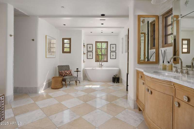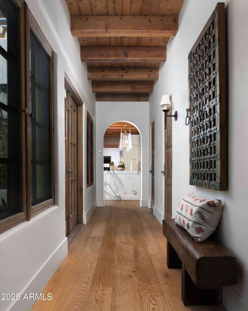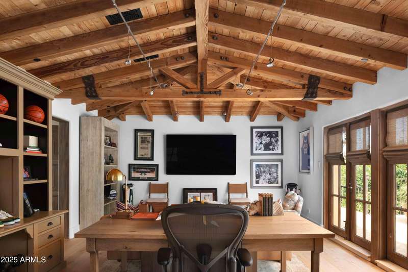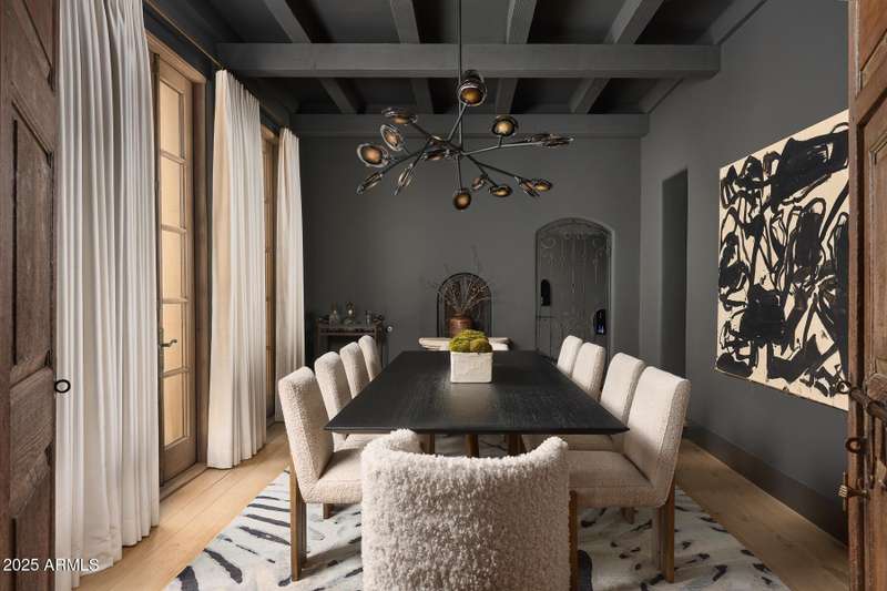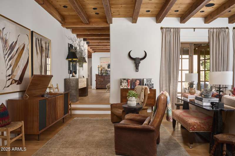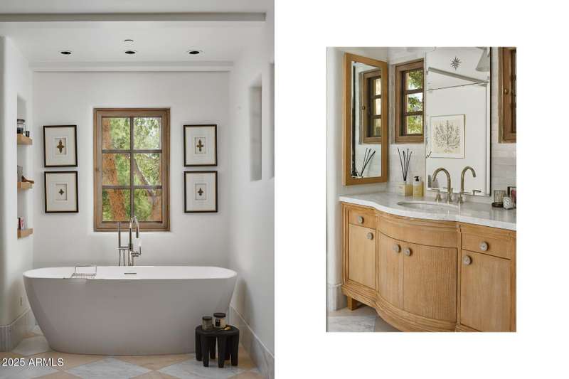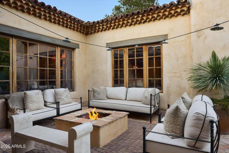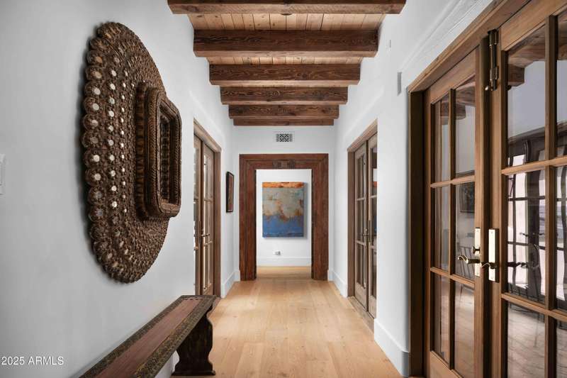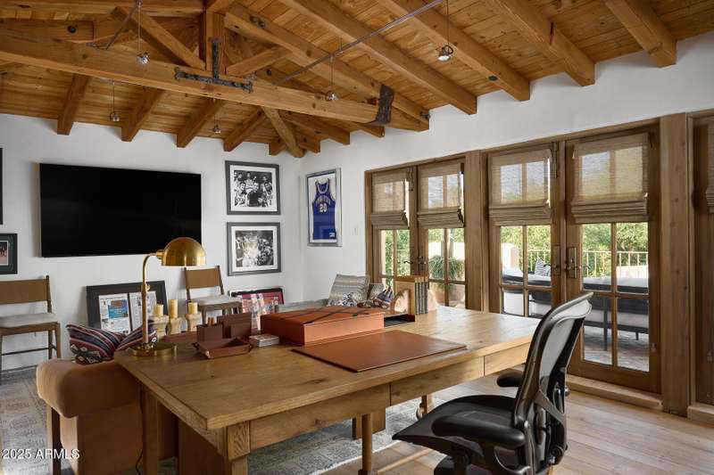 Step into a realm of refined French Mediterranean architectural grace, where timeless luxury meets modern innovation. Originally designed by renowned OZ Architects this extraordinary estate reflects a pedigree of distinction. Masterfully restored and renovated in 2023—this residence artfully blends antique European elements with thoughtful, refined finishes throughout. Spanning over 7,300 square feet on a lush 1.186-acre lot with dramatic mountain views, this home offers unmatched craftsmanship and functionality. Highlights include 4 en suite bedrooms, 5 full baths, a dedicated office (easily a 5th bedroom), a billiards room, a craft room, a roof deck, and a three-car garage with ample guest parking. Seamlessly integrated with a Savant Home Automation system, the property provides effortless control of lighting, climate, entertainment, and securityelevating everyday living to new heights. The enchanting grounds feature multiple private courtyards, a vegetable and herb garden, 8 fireplaces, an exterior fire pit, a private, heated pool with a charming poolside ramada, and a 5,000-bottle-capacity wine cellar. Designed for both entertaining and intimate gatherings, the formal dining room offers a private courtyard view and direct access to the wine cellar, while the butler's pantry conveniently connects the kitchen and dining areas. The chef's kitchen is a culinary dream, featuring top-of-the-line Wolf appliances: a six-burner plus griddle double oven range, a steam oven and a Sub-Zero refrigerator/freezer. A dedicated coffee station includes a Miele in-wall espresso system and warming drawer for morning indulgence. The luxurious primary suite overlooks the lush grounds and private patio, with a serene window bench nook. The spa-like primary bath boasts a spacious walk-in shower, standalone tub, dual vanities, and 2 separate fully renovated oversized closets. Additional bedrooms offer walk-in closets and scenic mountain views, providing comfort and privacy. From Venetian plaster walls and rough-hewn ceiling beams to custom European millwork, every detail radiates Old World charm and enduring elegance. With room to expand or personalize further, this is a residence where artistry, sophistication, and modern comforts come together in perfect harmony. Welcome to a masterpiece of luxury livingtimeless, distinguished, and simply extraordinary.