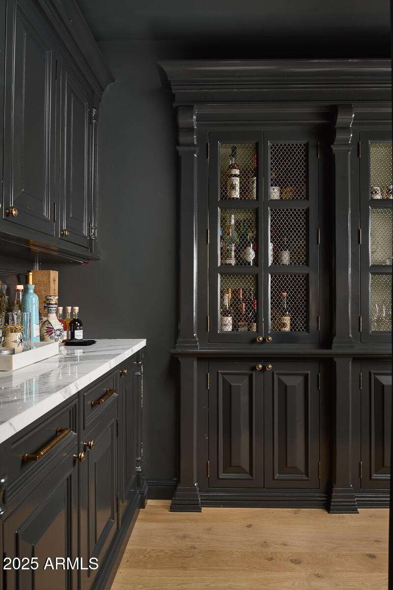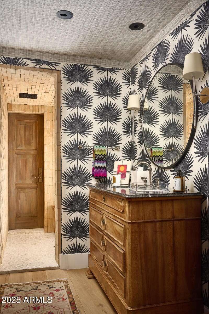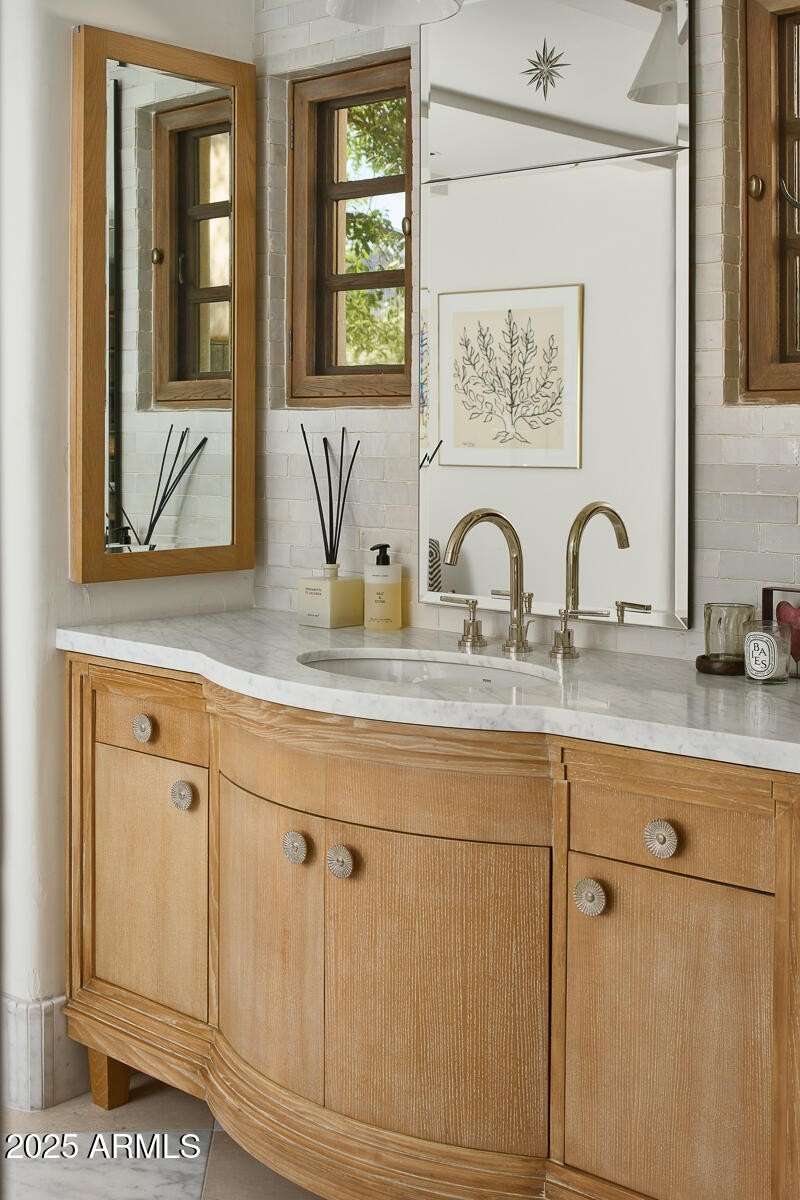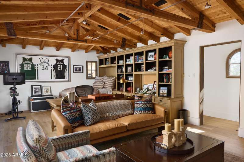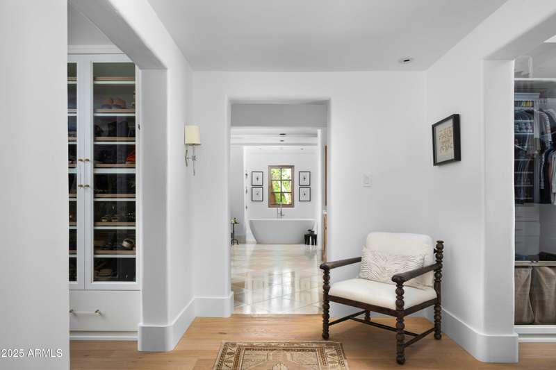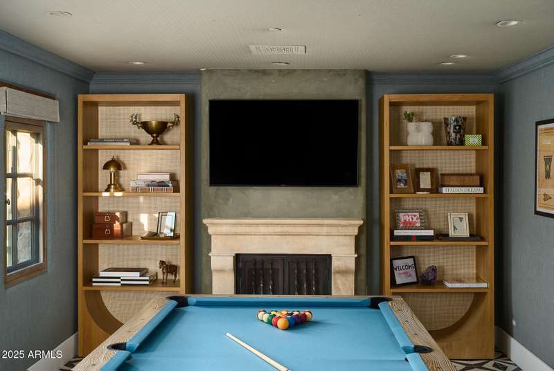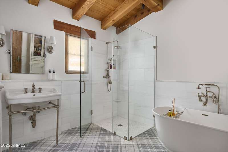 Step into a realm of refined French Mediterranean architectural grace, where timeless luxury meets modern innovation. Originally designed by renowned OZ Architects this extraordinary estate reflects a pedigree of distinction. Masterfully restored and renovated in 2023—this residence artfully blends antique European elements with thoughtful, refined finishes throughout. Spanning over 7,300 square feet on a lush 1.186-acre lot with dramatic mountain views, this home offers unmatched craftsmanship and functionality. Highlights include 4 en suite bedrooms, 5 full baths, a dedicated office (easily a 5th bedroom), a billiards room, a craft room, a roof deck, and a three-car garage with ample guest parking. Seamlessly integrated with a Savant Home Automation system, the property provides effortless control of lighting, climate, entertainment, and securityelevating everyday living to new heights. The enchanting grounds feature multiple private courtyards, a vegetable and herb garden, 8 fireplaces, an exterior fire pit, a private, heated pool with a charming poolside ramada, and a 5,000-bottle-capacity wine cellar. Designed for both entertaining and intimate gatherings, the formal dining room offers a private courtyard view and direct access to the wine cellar, while the butler's pantry conveniently connects the kitchen and dining areas. The chef's kitchen is a culinary dream, featuring top-of-the-line Wolf appliances: a six-burner plus griddle double oven range, a steam oven and a Sub-Zero refrigerator/freezer. A dedicated coffee station includes a Miele in-wall espresso system and warming drawer for morning indulgence. The luxurious primary suite overlooks the lush grounds and private patio, with a serene window bench nook. The spa-like primary bath boasts a spacious walk-in shower, standalone tub, dual vanities, and 2 separate fully renovated oversized closets. Additional bedrooms offer walk-in closets and scenic mountain views, providing comfort and privacy. From Venetian plaster walls and rough-hewn ceiling beams to custom European millwork, every detail radiates Old World charm and enduring elegance. With room to expand or personalize further, this is a residence where artistry, sophistication, and modern comforts come together in perfect harmony. Welcome to a masterpiece of luxury livingtimeless, distinguished, and simply extraordinary.