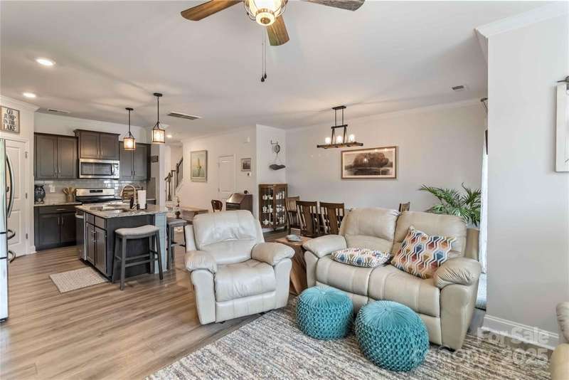 PRICE IMPROVEMENT! Welcome to this upgraded 3 bedroom, 2.5 bath townhome in the desirable Village at Ivy Ridge community. Built in 2020 and thoughtfully enhanced since, this home blends modern convenience with stylish comfort. The open concept main level features upgraded lighting in the kitchen, dining, and living areas, creating a warm and inviting atmosphere. Recent improvements include a new refrigerator and washer (2024), new ceiling fans in all bedrooms (2025), and stylish, updated light fixtures throughout. The entire home- including the garage- was freshly painted in 2023, offering a crisp, clean look. Outdoor spaces have been thoughtfully enhanced with an extended front porch and back patio, perfect for relaxing, watching wildlife or entertaining. A charming perennial garden adds beauty and color year round. Upstairs, you will find 3 spacious bedrooms including a primary suite with plenty of natural light. Located just minutes from Lake Wylie and a short drive to Charlotte, this home offers easy access to shopping, dining and top-rated Clover schools. The community features low maintenance living and exceptional amenities including a clubhouse, pool, playground and pickleball court. With thoughtful upgrades, modern finishes and an unbeatable location, this townhome is truly move in ready and one you don't want to miss.