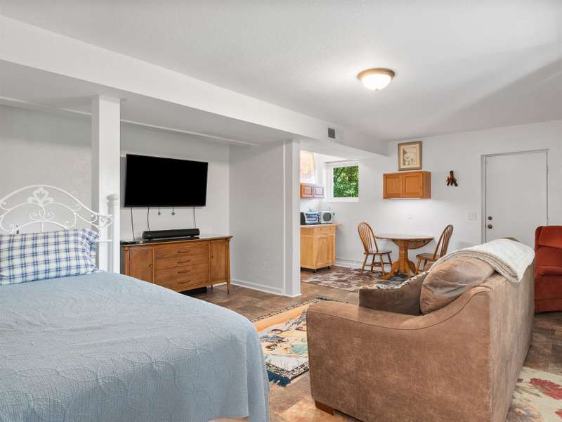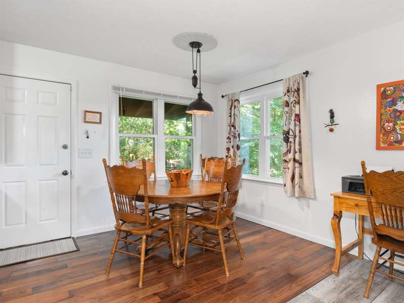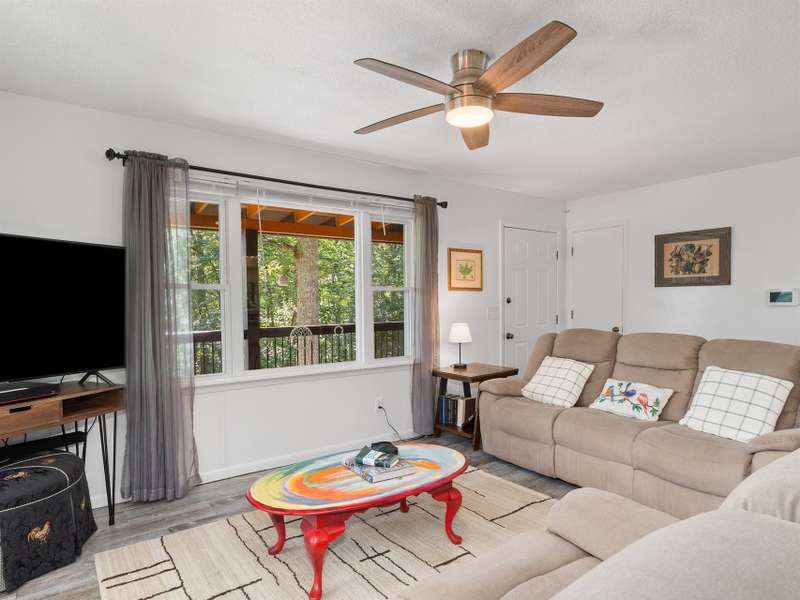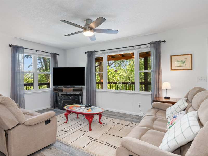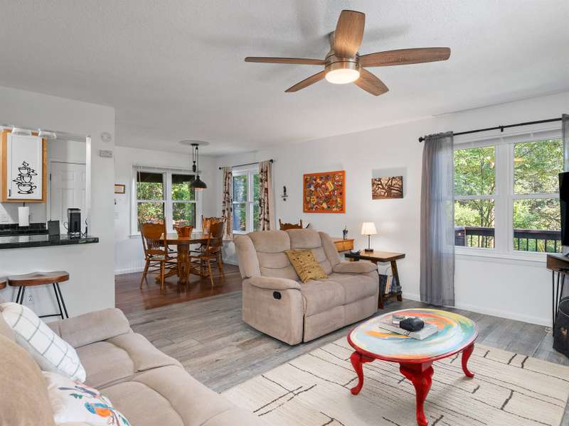 This charming three-bedroom, two-bath home in the serene Potts Branch community offers a beautifully updated open floor plan. The spacious kitchen features a breakfast bar, flowing seamlessly into the dining area and expansive great room, perfect for entertaining. Enjoy easy access to a wraparound deck, ideal for outdoor relaxation. The main level hosts two bedrooms and one bath, while the lower level includes a third bedroom, second bath, and a partially finished basement with a single-car garage and unfinished space for customization. Nestled in a park-like setting, the property boasts an additional lot with a roughed-in driveway and house pad, ready for a second home site. Embrace the tranquil lifestyle of this inviting retreat, blending modern comforts with natural beauty.