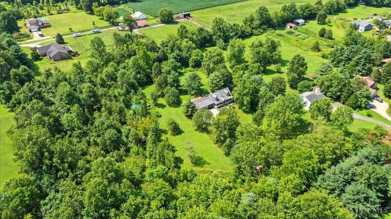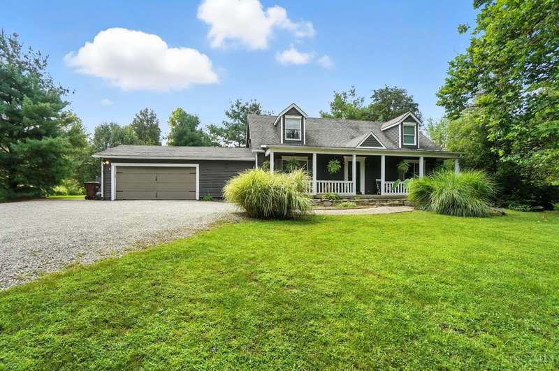 Private, wooded retreat on 1.67 acres! Charming Cape Cod offers peace and privacy down a long shared drive. Enjoy quiet mornings on the full covered porch. Spacious kitchen w/ granite, full appliance package, pantry, bar seating & laminate flooring. Cozy dining room features gas fireplace & walkout to deck/patiogreat for gatherings. Large great room perfect for relaxing or entertaining. First-floor primary w/ private half bath + adjacent full bath; 2nd main-level BR ideal for guests. Upstairs: 2 spacious BRs & full bath. Walkout basement partially finished w/ laminate flooring & bath rough-inready to customize! Large 1st-floor laundry, 2-car garage. Lebanon Schools. Convenient to town, highways & shopping. Bonus: Adjacent 2.68-acre wooded lot (MLS#1850287) also available for $150Kexpand or enhance privacy! Sold As-Is.