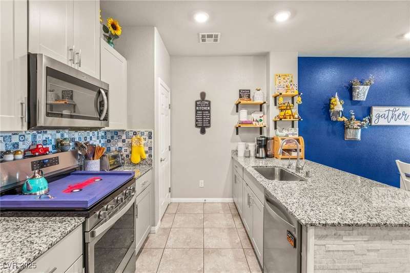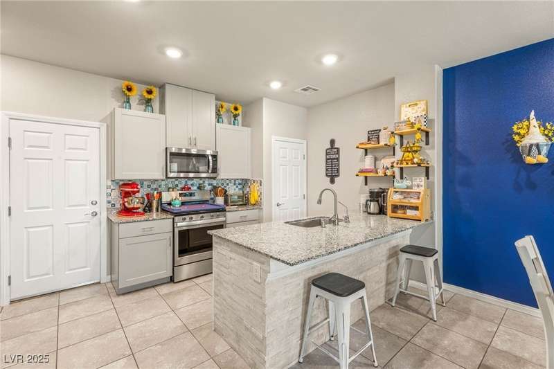 Stylish and move-in ready home located in the gated community of Vela Point in Valley Vista! This well cared for property features stunning mountain views and thoughtful upgrades throughout. Tile flooring downstairs and luxury vinyl plank upstairs offer easy maintenance and a modern feel. The kitchen stands out with a custom backsplash and added stone detail beneath the countertop. Enjoy added privacy and expanding outdoor living with one of the most secluded lots in the neighborhood. Practical upgrades include overhead storage in the garage, a tankless water heater, leased water softener, and a reverse osmosis system. VA assumable loan available - Ask for details!