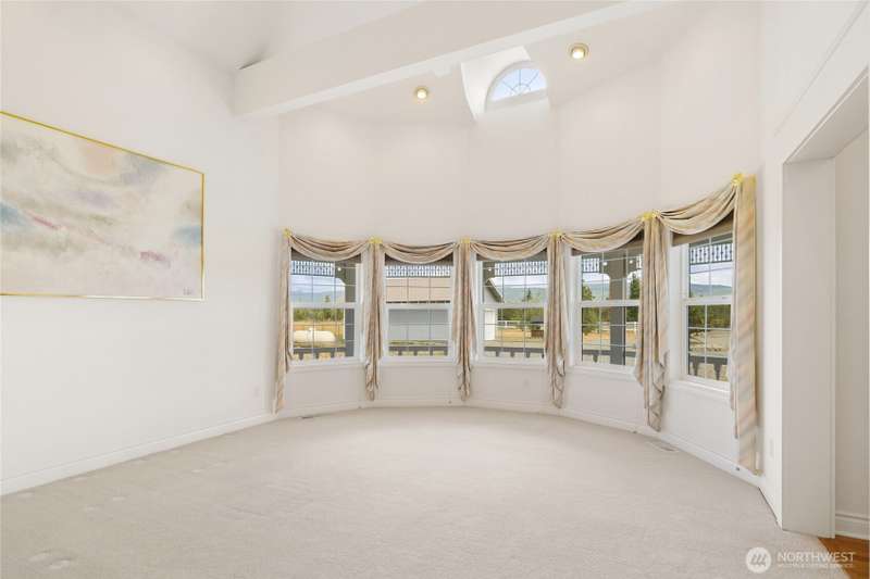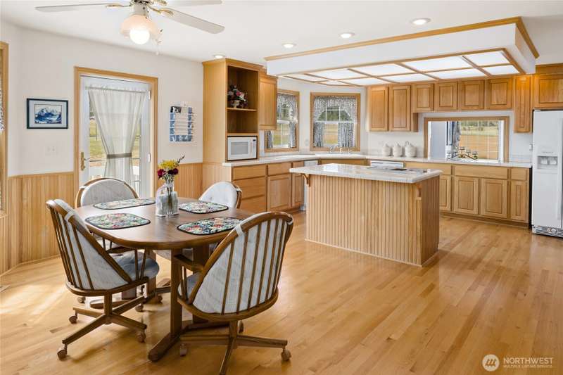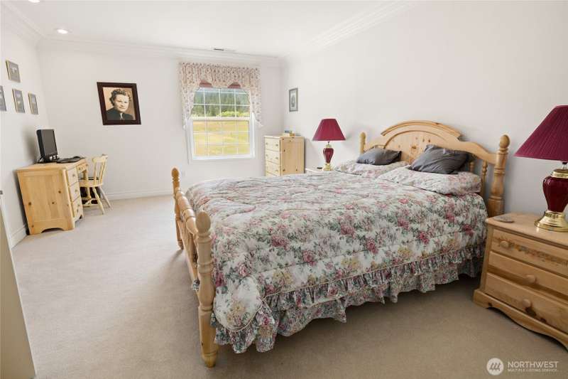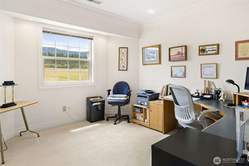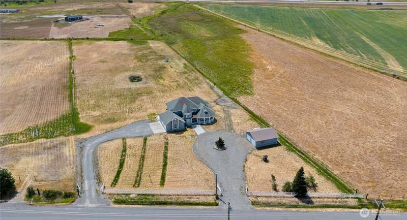 Custom one-owner Victorian farmhouse with sweeping Peoh Point views on four acres. Well-maintained with meticulous attention to detail. Double doors open onto a grand entrance hall with curved staircase. Vaulted ceilings & a multitude of windows flood the living room with natural light. Spacious eat-in kitchen w/ample storage in the custom cabinetry, & large dining room with beautiful mountain views. Family room has a gas fireplace & French doors opening onto the deck. Primary bedroom with sitting area, double sinks, jetted tub, & walk-in closet. 2nd ensuite bedroom upstairs. Attached 2 car garage, 2 bay shop & circular drive. Fenced, level acreage with small pond, irrigation rights, no HOA/CCRs. State Park trail system across the street.
