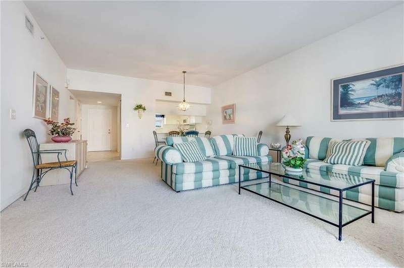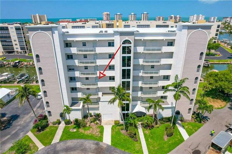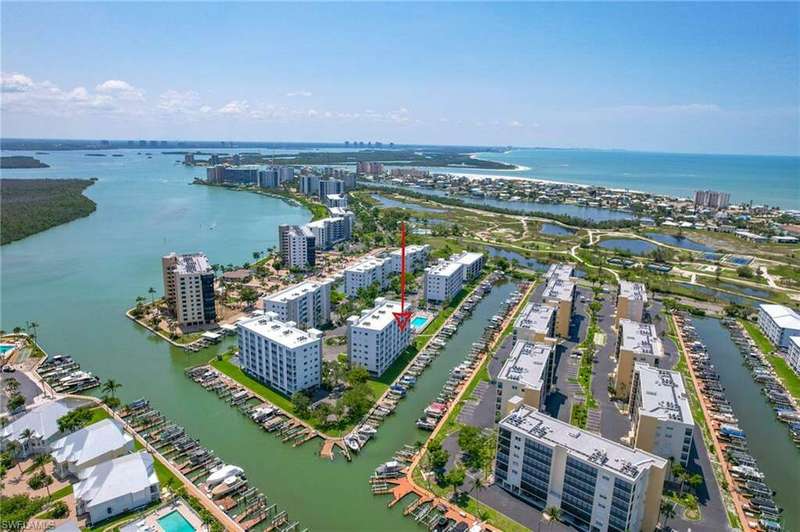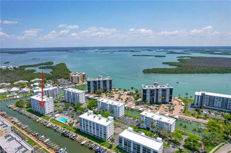 2 bed/2 bath TURNKEY condo in Casa Marina. Bi-weekly rentals allowed! Open and spacious floor plan with oversized Lanai. Great canal views and western exposure. Sit and watch the Dolphins and Manatees right from your lanai! Spacious primary bedroom with private lanai access, ensuite bathroom and large walk in closet. Guest bedroom with large walk in closet next to second bathroom. Community pool is conveniently located right next to the building. EBIA amenities include: Deeded Beach Access, Tennis, Pickle ball, Bocce ball, walking paths, chipping greens, fishing pier, and Boat slips available for sale. Walking distance to many restaurants, shops, liquor store, groceries and sugar white sand beaches on the Gulf of Mexico & Lovers Key State Park a few minutes away.