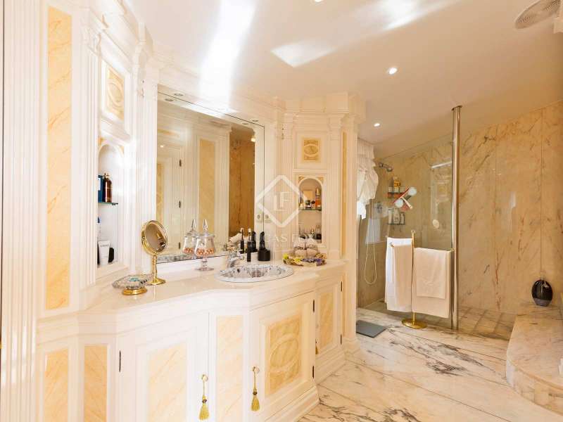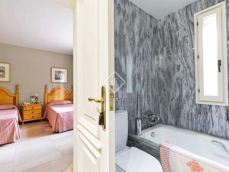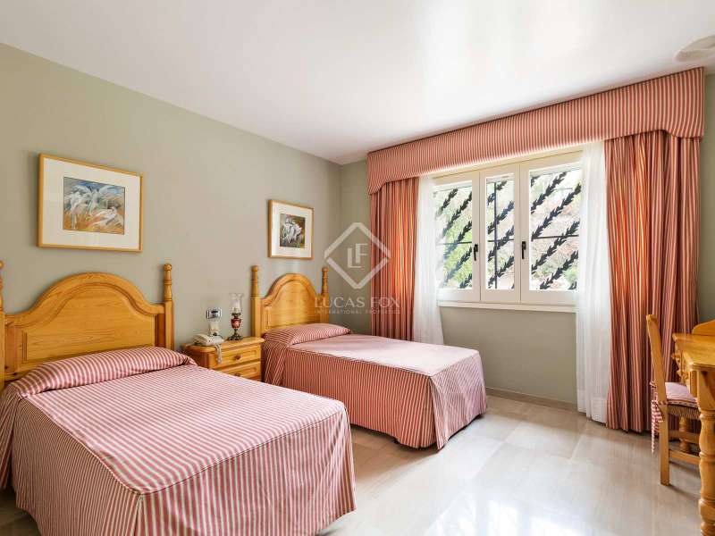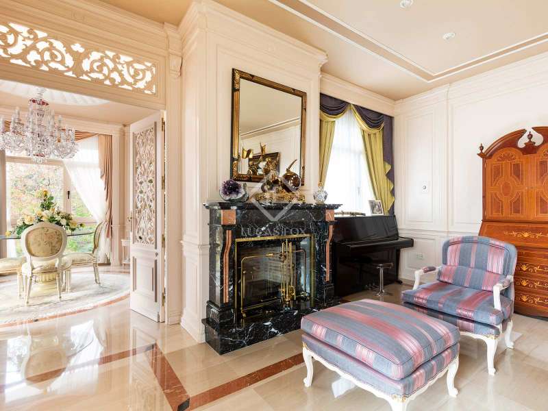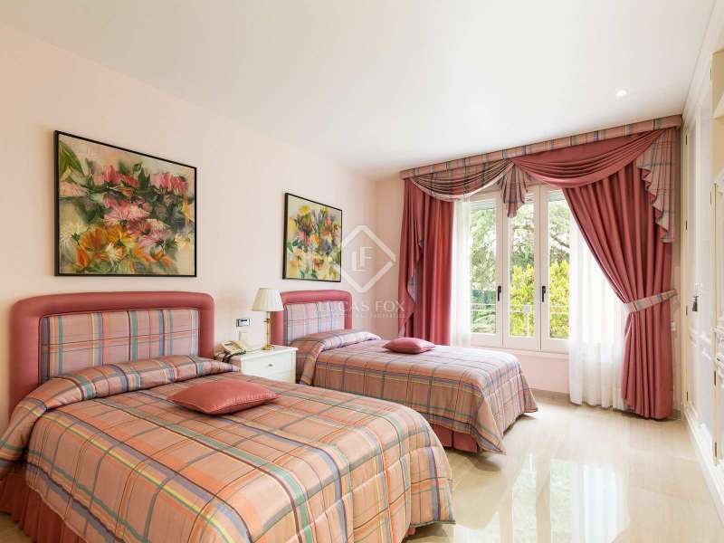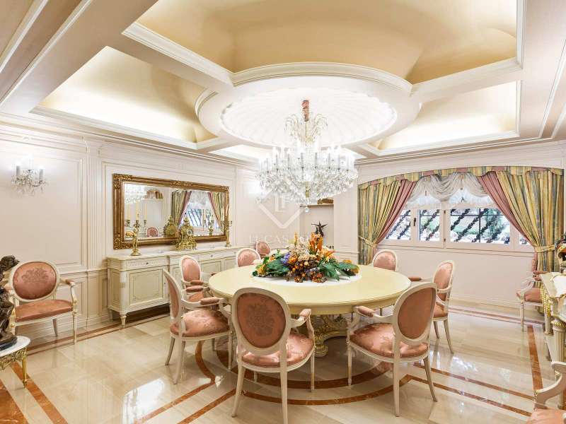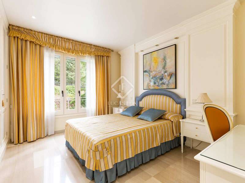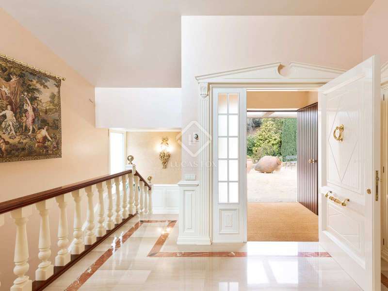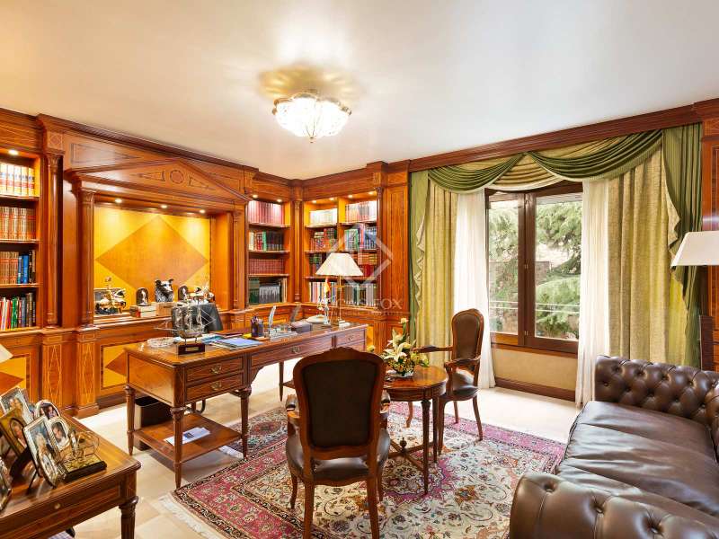 Lucas Fox is pleased to present this spectacular stately mansion that has a constructed area of 1,271 m² on a plot of 3,736 m². The main property is distributed over three floors and has a completely independent annex . We access the property from an imposing entrance with the personal seal of José Fernández Castrillo, a successful glass craftsman. Once inside we can see the gardens and their excellent views. From the entrance hall, we enter the property and appreciate its unique and classic style, with marble floors, elegant rooms, designed and decorated by high-level architects, who have taken care of even the smallest detail. Each room has windows and lots of natural light. On this first floor we find a large study with an exclusive design, independent access to the main bedroom with its dressing room, private bathroom and terrace and the completely independent night area with four bedrooms with their bathrooms and terrace. In addition, there is an lift and stairs that lead us to the day area. Going down the stairs with wooden railing and marble steps covered by classic style carpets we access the entrance hall of the day area. To the left we find a magnificent living-dining room, a hallway access to the guest toilet that also leads to the kitchen. To the right, we find a spacious and luxurious living room that leads to another living room to have tea and contemplate the views of the outdoor gardens. From the entrance hall we also have access to the lift and the independent entrance to the kitchen. The kitchen is very spacious and is fully equipped and connected to a large pantry and a large dining room with access to a spectacular terrace. On the same floor with access from the exterior and from the daily dining room , we also find the guest area with two bedrooms with their private bathrooms, a living room, a rest room for children and the utility room. From the entrance hall , going down the stairs we access the lower ground floor where we find a entrance hall, the lift, a large games room with a bar, a guest toilet, the machine room and a large wine cellar for 5,000 bottles and a storage area. . Exterior we find fountains, artificial rivers, gardens with palm trees, olive trees, fruit trees, orchards of aromatic plants, a large swimming pool, a garage for seven cars and a completely independent annex with a barbecue area, fitness room, spa, sauna, changing rooms. and a professional squash court. The property is sold fully furnished and decorated as presented. Contact Lucas Fox for more information. We will be happy to help you in your search for your new home.