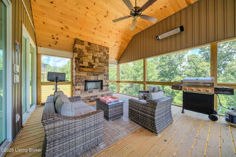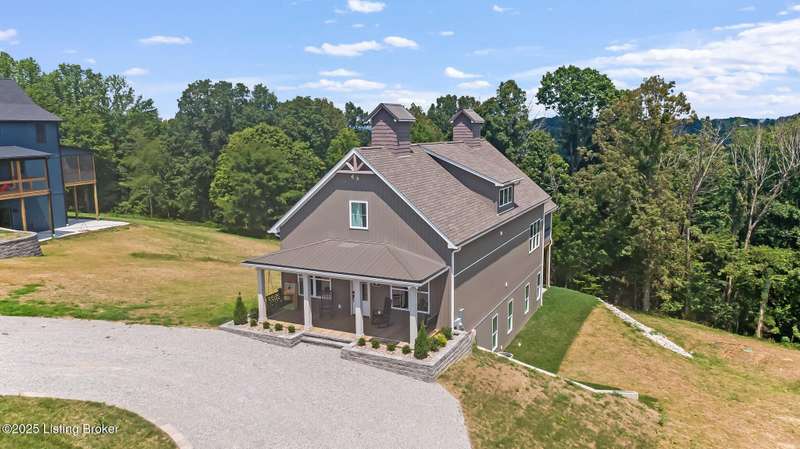 Welcome to Paradise Grove, a distinguished retreat by the shores of Nolin Lake, where timeless design meets the best of lake living. This 4-bedroom, 4-bath residence showcases a versatile 1.5-story layout with a loft, expansive open-concept living, and walls of windows that flood the home with natural light. Every detail has been thoughtfully executed, from the designated laundry room to dual water heaters and a spacious finished basement designed for both entertaining and relaxation. Step outside to the screened-in porch, complete with a stone fireplace, offering the perfect year-round gathering space. Beyond the home, residents of Paradise Grove enjoy an exclusive lifestyle with access to a clubhouse, pickleball and basketball courts, an outdoor fireplace, a mini soccer field, and an in-ground pool coming soon. Currently available to be used by the new owner as a short-term rental, this property also presents a unique investment opportunity. Perfectly situated near Wax Marina, Iberia, and popular campgrounds, it offers the ideal balance of personal retreat and income potential. Paradise Grove is more than a home, it's a community designed for connection, recreation, and unforgettable experiences.