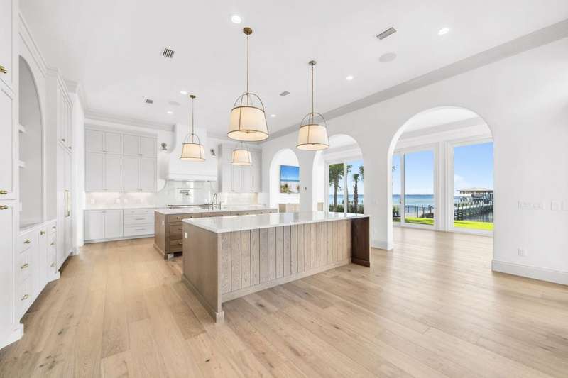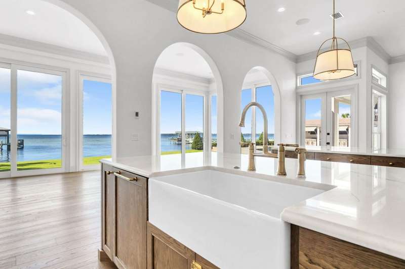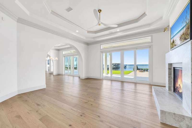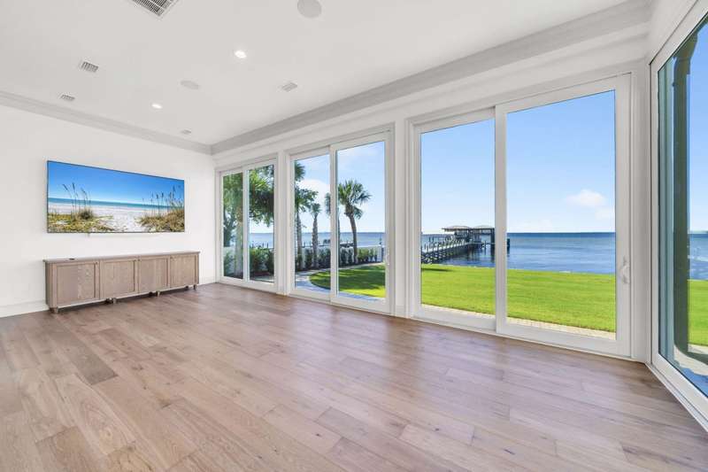 Welcome to 6 Sunset Beach Place, an extraordinary bay front estate in the gated community of Sunset Beach within Bluewater Bay. Set on nearly an acre of land with 151 feet of pristine waterfront overlooking beautiful Choctawhatchee Bay, this 6 bedroom, 6.5 bath dream home offers 6,424 square feet of luxury living. Every detail has been professionally designed and no expense spared with over $1.8 million in thoughtful renovations blending timeless architecture with modern sophistication.Almost every room provides gorgeous panoramic views of the bay. This home features new engineered hardwood and designer tile flooring, 12-foot ceilings on the first level and 10-foot ceilings on the second level, solid wood interior doors, arched openings, and plantation shutters throughout. The expansive open-concept layout includes a chef's kitchen with white oak cabinetry, marble countertops, Thermador professional appliances, an imported French oven, and a butler's pantry with custom built-ins and quartz accents. A coffee and wine bar and prep kitchen provide added convenience for entertaining.Elegant living spaces flow seamlessly to the outdoors, where expansive patios and balconies capture stunning bay views. The sparkling pool and hot tub with new PebbleTec finish offers a more natural texture that delivers enduring elegance and durability. A brand new outdoor kitchen, complete with a premium Coyote grill and appliances, sets the stage for unforgettable outdoor dining. Featuring elegant Taj Mahal quartz countertops, sophisticated Synergy wood details, and convenient remote-controlled awnings, it's the ultimate setting for any gathering while the fire pit and 12-color programmable pool lighting add to the ambiance. The air conditioned pool house offers a full bathroom, changing area, and shower. Every mechanical system has been upgraded, including five HVAC units, new water filtration and soft water systems, a Generac generator, impact-rated sliding glass doors, and a new concrete tile roof. The insulated and air conditioned oversized 3-car garage features new doors, epoxy flooring, and abundant attic storage. Expanded parking added offering plenty of space for family, friends, and entertaining guests. Smart technology enhances comfort and security with a full camera system, doorbell, sound system, and smart lighting throughout.Designed by Amy Killebrew of Sinkler Designs, the home showcases $320,000 in custom ArtisanBilt cabinetry, Taj Mahal quartz, marble finishes, and designer fixtures. Two new gas fireplaces, located in the living area and primary suite, add warmth and charm. The west wing offers a private kitchenette and entrance, ideal for guests or multigenerational living.Outside, the reimagined landscape adds a southern tropical oasis featuring gorgeous palm trees, plants and trees designed for privacy and low maintenance. Professional lighting, brick pavers, and custom gates. Enjoy bayfront living with a shared dock and boat lift, perfect for days spent on the water.Sunset Beach is an highly sought after neighborhood known for its serene lakes, fairways, and bayfront homes. Residents enjoy access to a private clubhouse, pool, and beach overlooking the bay, along with the amenities of Bluewater Baytennis courts, a marina, boat launch, and championship golf. Ideally located near the Mid-Bay Bridge, this home offers quick access to Destin's sugar-white beaches, fine dining, and entertainment while remaining just minutes from Niceville's