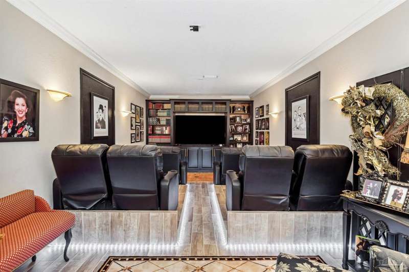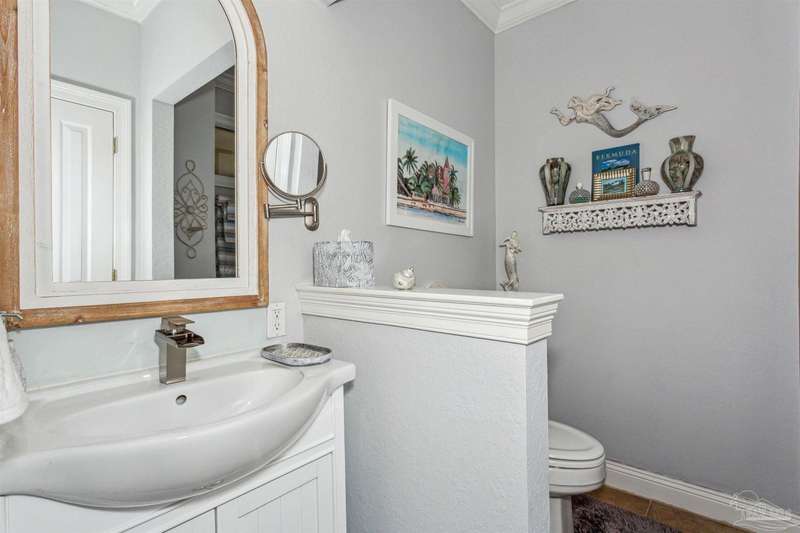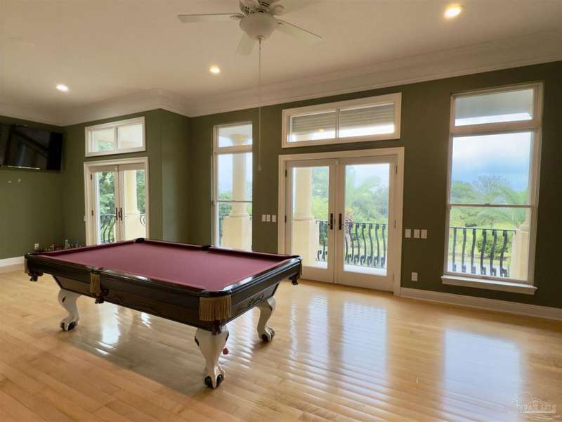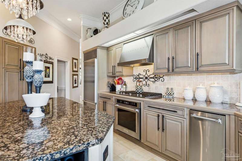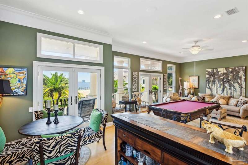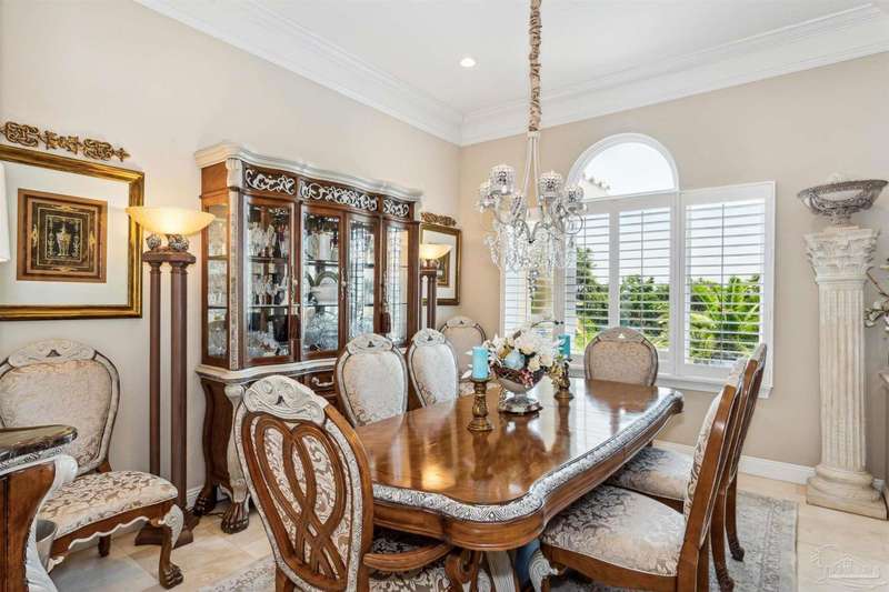 Escape to this peaceful serene atmosphere as you enter into this stunning home nestled along the 17 acres nature preserve of picturesque coastal forest and amazing views of Santa Rosa Sound and the Intercoastal Waterway. This property includes a piece of property across the street which makes for easy access down to the beach and waterfront. Many upgrades include water filtration system, a full-house generator, electric storm shutters, geo-thermal HVAC, surround sound speakers, security alarm, 2 dumb waiters, one located on the back of the home outside which serves as an elevator for people unable to use the stairs and one located inside off the garage that opens near the kitchen, great for transporting groceries! Luxurious and opulent with lavish features, such as travertine natural stone floors, decorative black iron railing encasing beautiful wood stairs, soaring ceilings, private screened balcony, gunite pool with spill-over hot tub, gourmet chef's dream kitchen featuring walk-in pantry, high-end stainless-steel appliances, gas-cooktop and top of the line refrigerator. Enjoy many rooms for entertaining and living including a large game room, office, theatre room, craft room, exercise/gym room, ensuite for guests and spacious owners ensuite with walk-in closets. The seamless transition from inside to outside makes perfect for entertaining guests off any of the well-appointed balconies or relaxing with friends and family around the sparkling pool w/ hot tub. This exceptional property located mere steps away from the Shoreline Park includes additional recreational opportunities such as paddle sports, trails for hiking, fishing, and a place to launch your own boat! Living here will not disappoint!