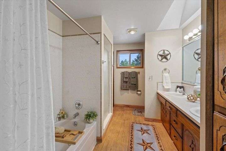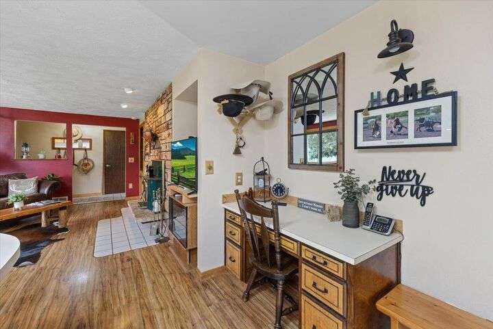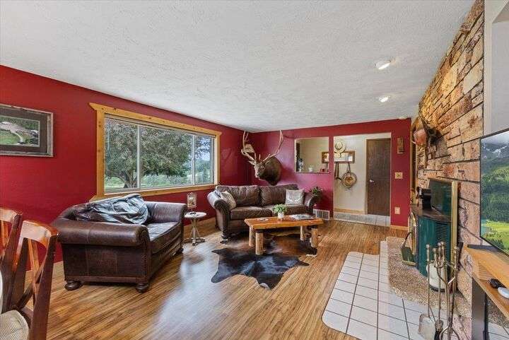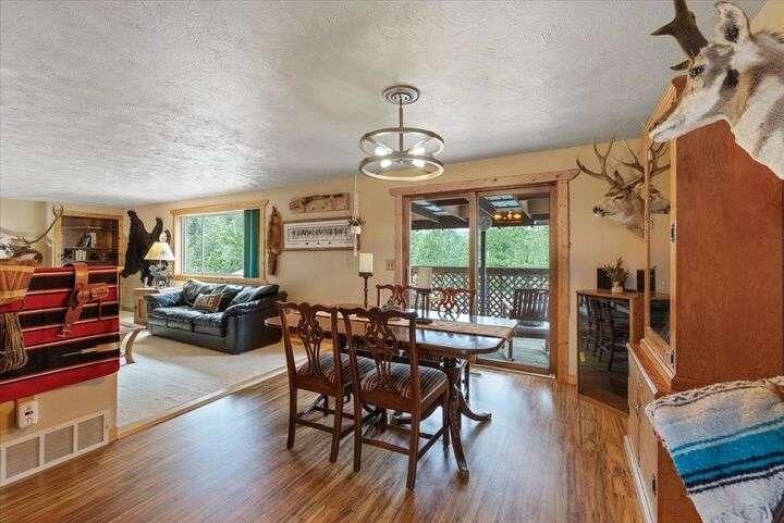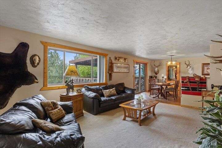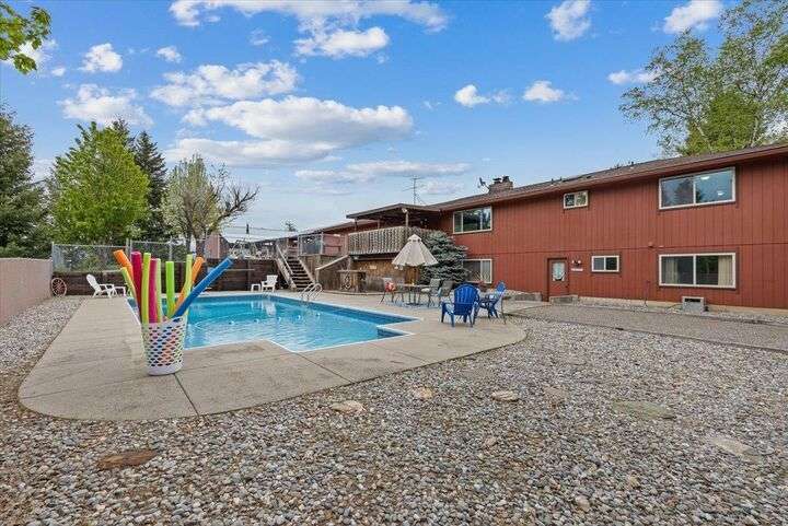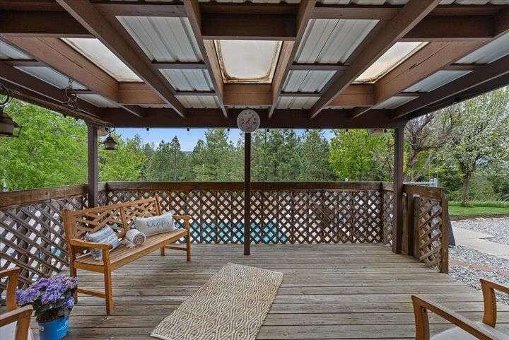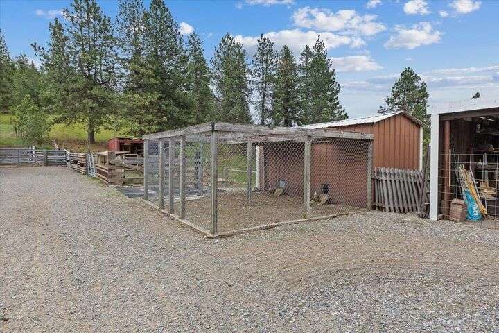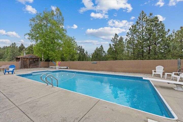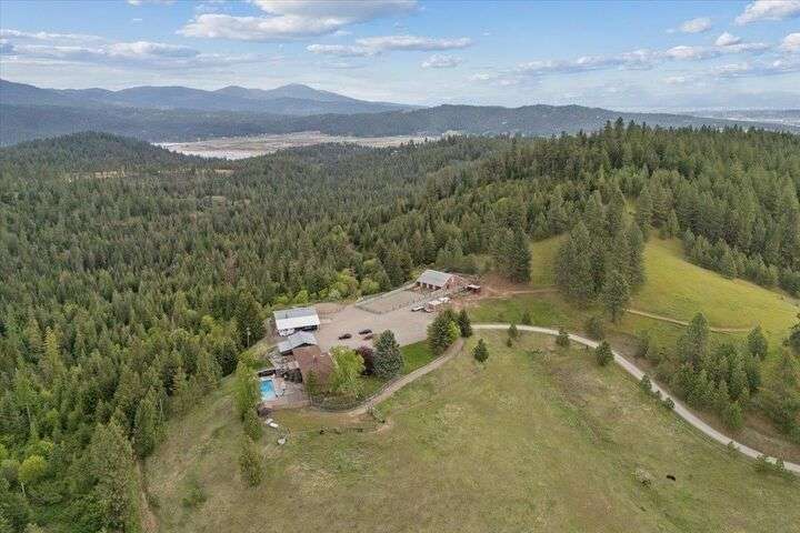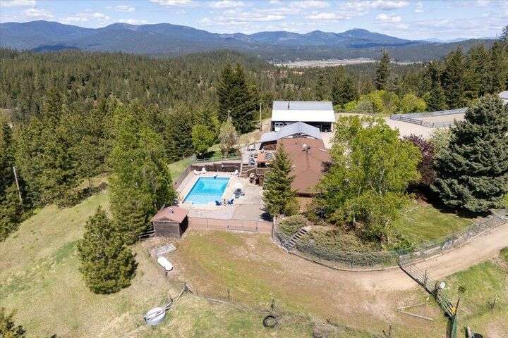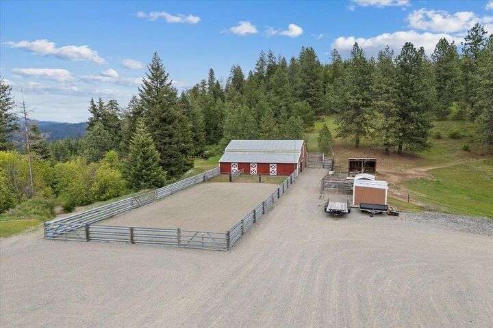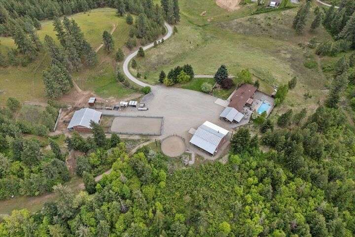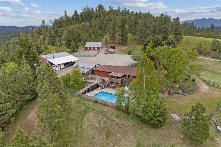 Nestled in Newman Lake mountains and minutes from the lake. The 2 level brick house provides privacy and stunning views. A daylight basement, spacious yard, and pool. 6 bedrooms and 2 living spaces. The primary bedroom and plumbing for an additional washer and dryer are on the main level. Central vacuum system, new carpeting in downstairs bedrooms, and a recently painted exterior. The driveway can accommodate several guests, making parking or maneuvering trailers and equipment easy. The horse-friendly barn offers hay storage, paddocks, three indoor and outdoor stables, a tack room, an adjoining 30 x 50 arena, and a riding ring. A sizable shop includes a 14-ft insulated sliding door, heat source, water, a lean-to storage area attached to the garage, and a three-bay carport. 20 acres of fenced pasture and timber terrain to explore. One 10-acre lot could be sold or utilized for additional buildings or a home. A chicken coop/dog kennel and fruit trees. Close to 4 lakes. Ask your Realtor for the full description