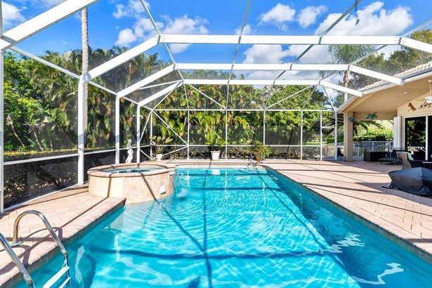 Custom single family house on a private lushly landscaped acre parcel in the gated community of Bay Hill Estates. The property has been meticulously maintained with several updated features such as resurfaced pool with updated mechanicals, several renovated bathrooms, custom interior appointments as well as 9.5 and 12 foot ceilings. Intercom and surround sound systems The oversized pool deck with raised spa is screened and has generous covered deck areas great for entertaining. The property is situated on a pie shaped parcel overlooking the 17th hole of the community golf course, No mandatory membership and low HOA fee.