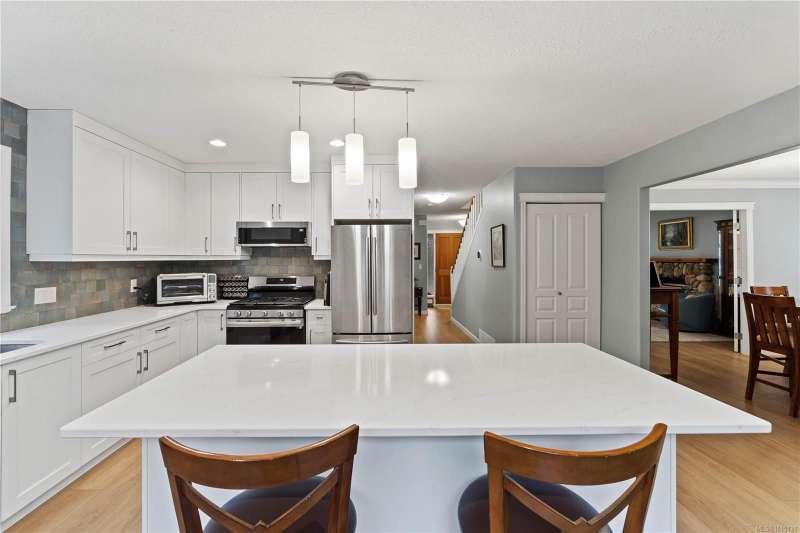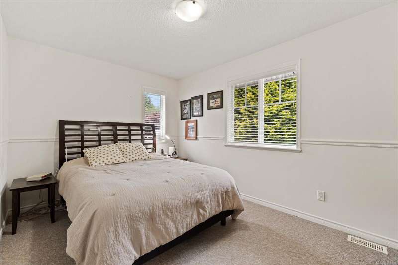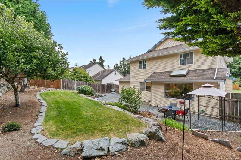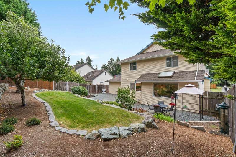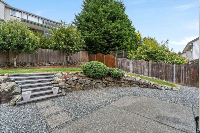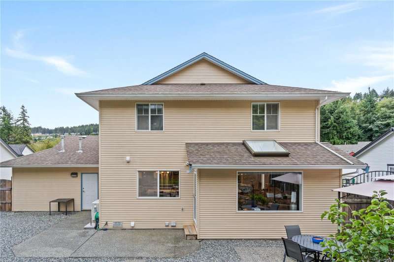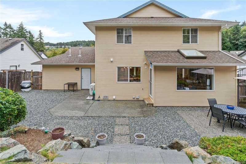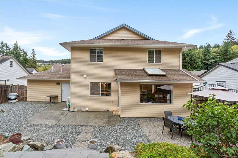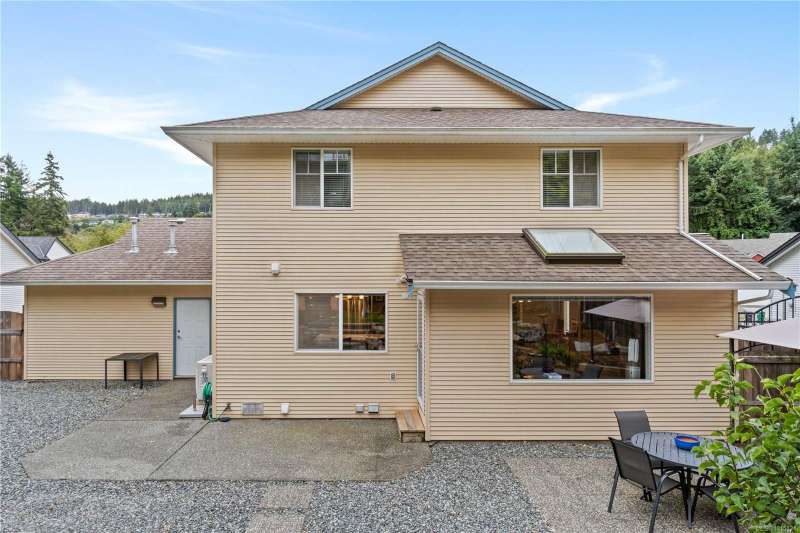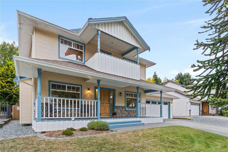Welcome to this beautifully updated 4-bedroom + den, 3-bath home in one of Nanaimo's most desirable neighbourhoods. The main level features new flooring and an open-concept kitchen with updated countertops and backsplash, flowing into the family and dining areas—perfect for entertaining. Upstairs, the oversized primary bedroom is a true retreat with a private balcony. A bedroom has been converted into a massive walk-in closet but can easily revert back to a 4th bedroom. Laundry is also conveniently located on this level. The main-floor den offers flexibility as a home office or guest space. Outside, enjoy newly landscaped, low-maintenance grounds. A high-efficiency heat pump and furnace (both under 5 years old) ensure year-round comfort. Close to schools, parks, shopping, and more, this home combines modern comfort with everyday convenience in a fantastic family-friendly location.