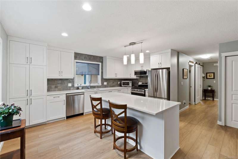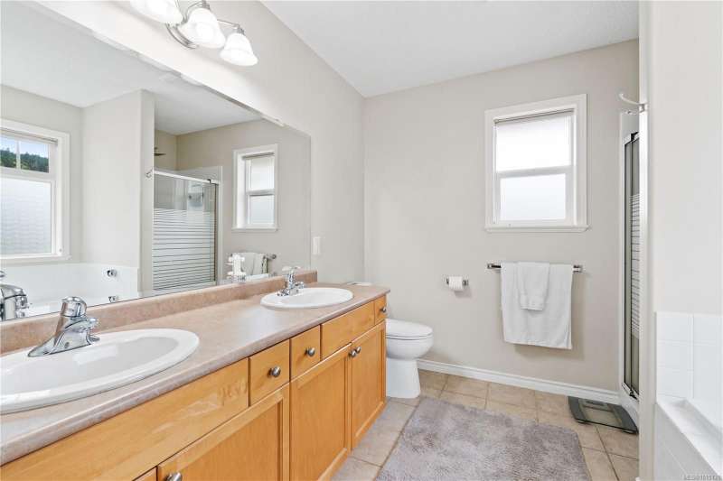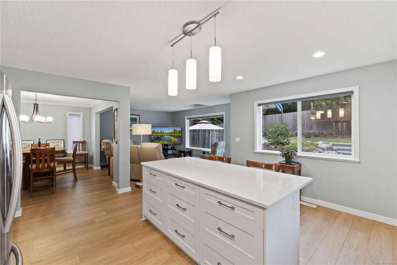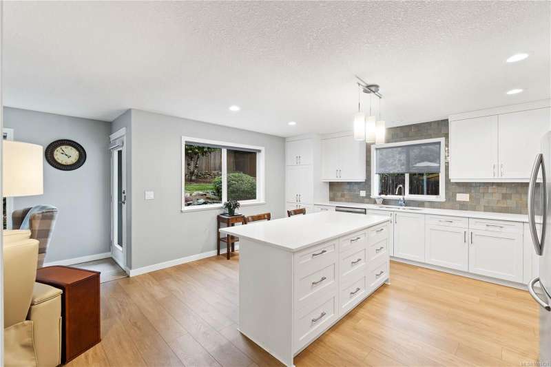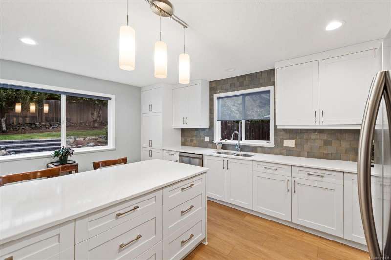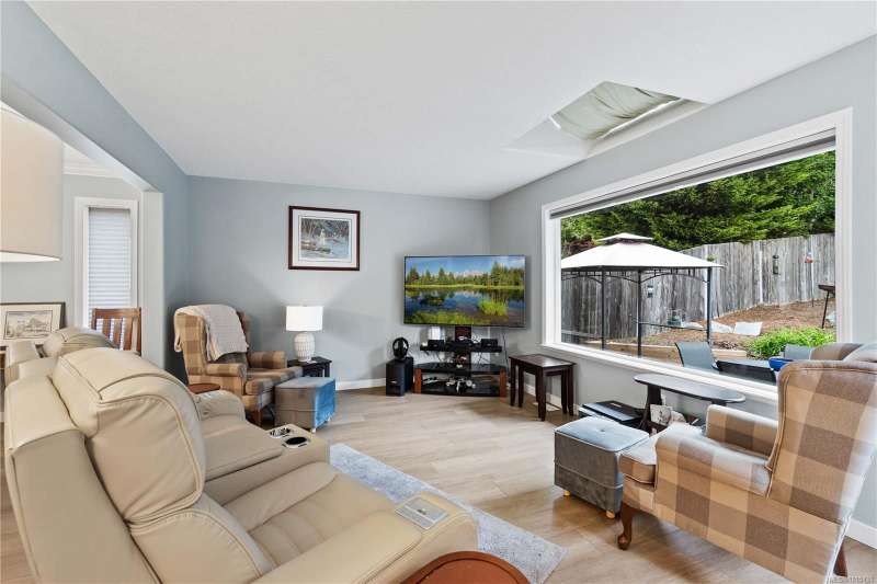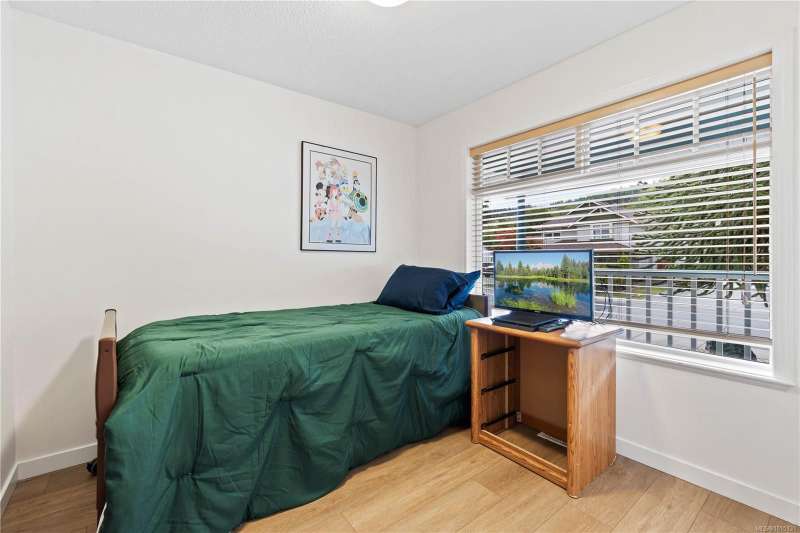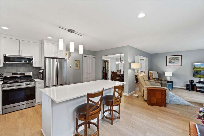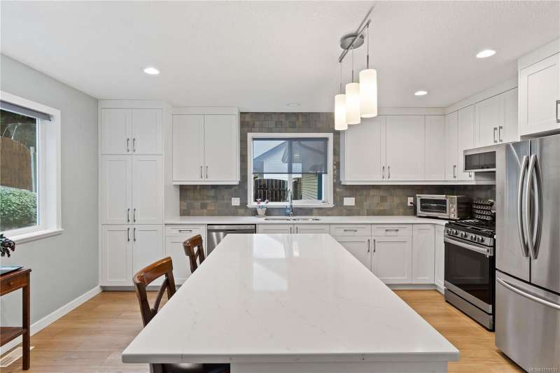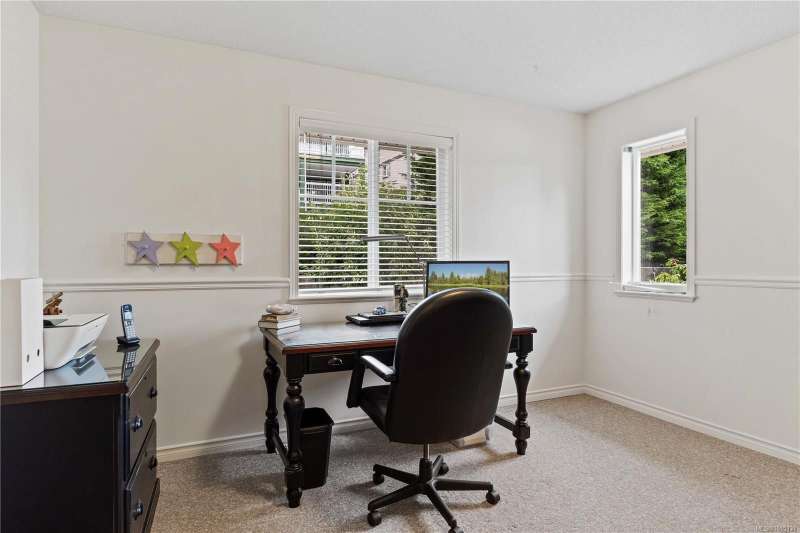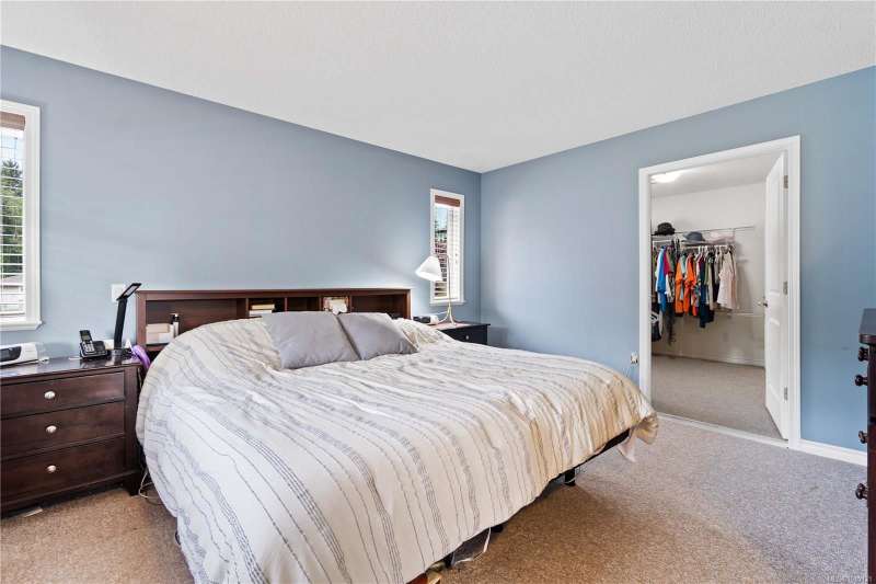 Welcome to this beautifully updated 4-bedroom + den, 3-bath home in one of Nanaimo's most desirable neighbourhoods. The main level features new flooring and an open-concept kitchen with updated countertops and backsplash, flowing into the family and dining areas—perfect for entertaining. Upstairs, the oversized primary bedroom is a true retreat with a private balcony. A bedroom has been converted into a massive walk-in closet but can easily revert back to a 4th bedroom. Laundry is also conveniently located on this level. The main-floor den offers flexibility as a home office or guest space. Outside, enjoy newly landscaped, low-maintenance grounds. A high-efficiency heat pump and furnace (both under 5 years old) ensure year-round comfort. Close to schools, parks, shopping, and more, this home combines modern comfort with everyday convenience in a fantastic family-friendly location.