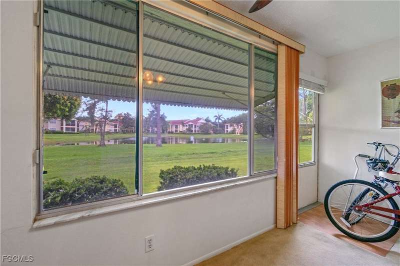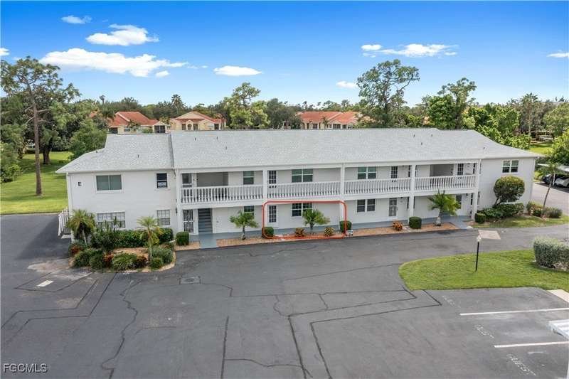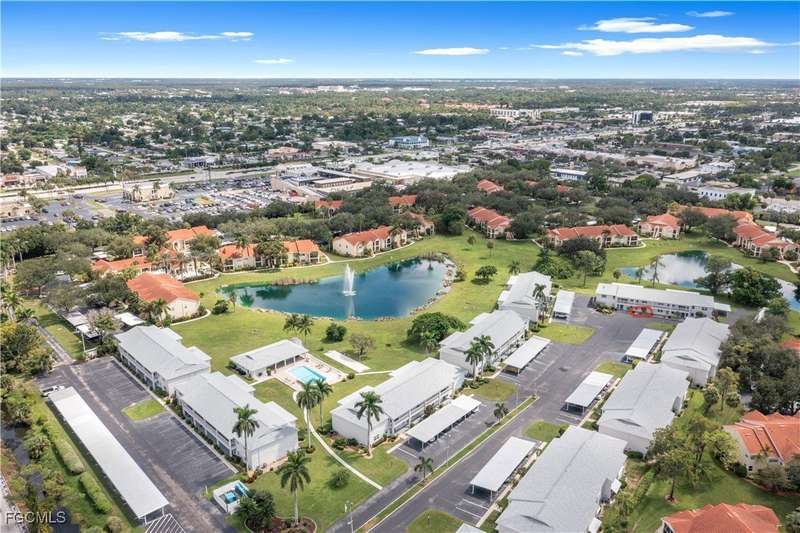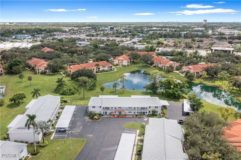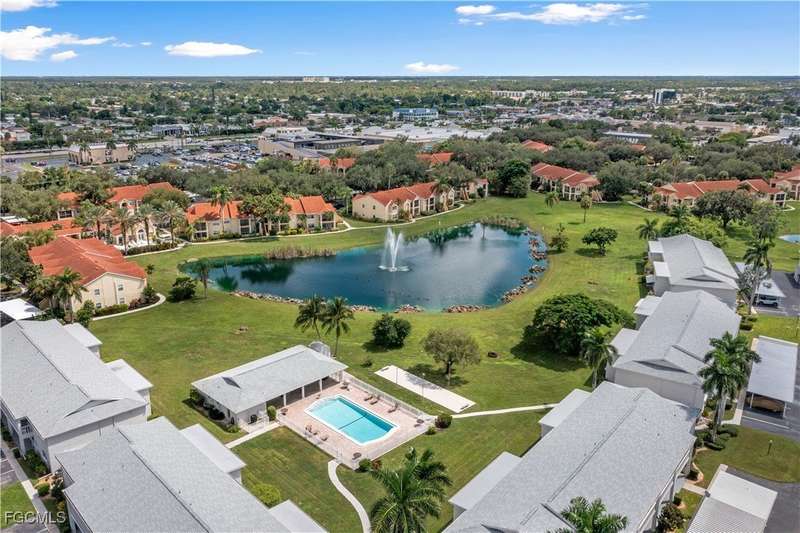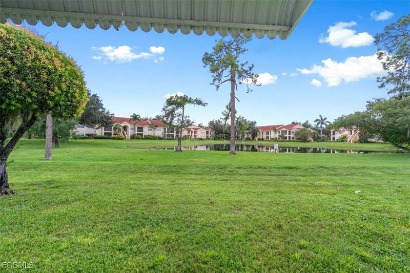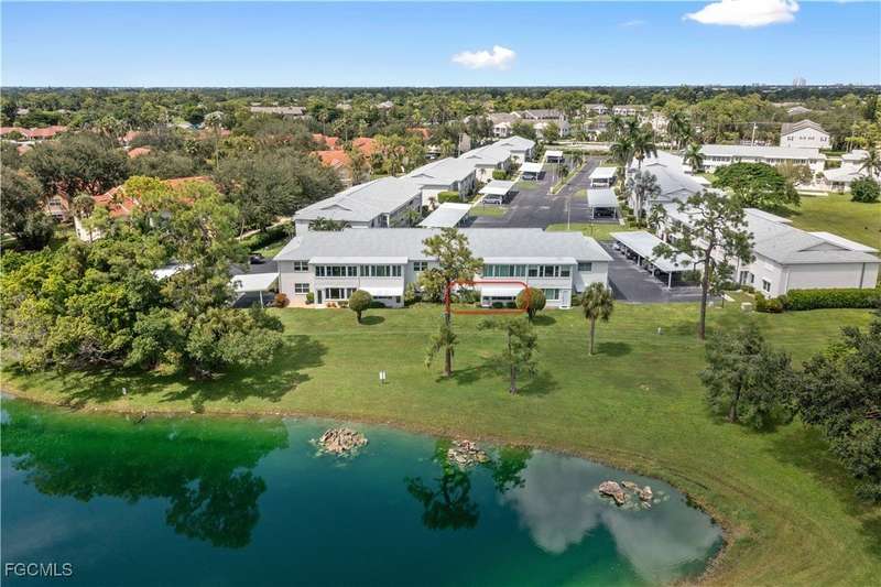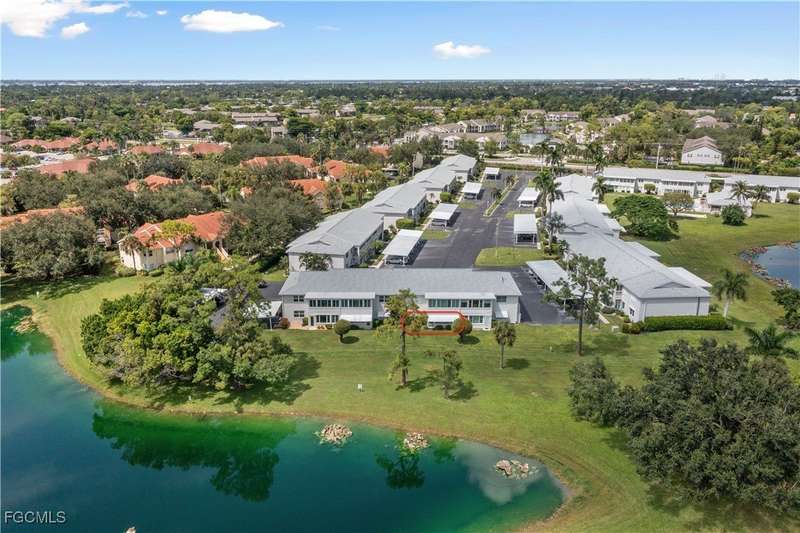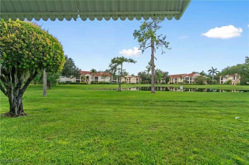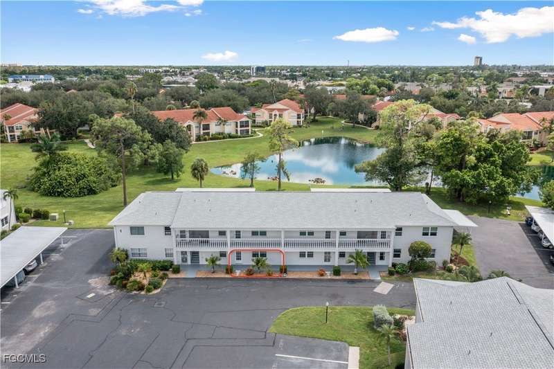 Welcome to Lake Lawn Condo. This beautiful FIRST FLOOR unit offers 2 bedroom, 2 bathroom, and over 1,300 square feet of living space with a bright and open floor plan. Stunning lake views from the unit makes of one of the best located condos in the entire development. Upgrades include a newer AC unit (2021), impact windows on the front of the unit, and a large laundry room. Being offered furnished, this condo is the definition of move in ready. Situated in a quiet and very well maintained 55+ community, the amenities here include a well kept clubhouse, community pool, shuffleboard, and covered parking all with very reasonable HOA dues. With convenient access to tons of local attractions such as the River District and Downtown Fort Myers, RSW Airport, tons of local shopping and dining options, and our beautiful beaches, you'll love the lifestyle offered here.