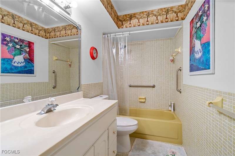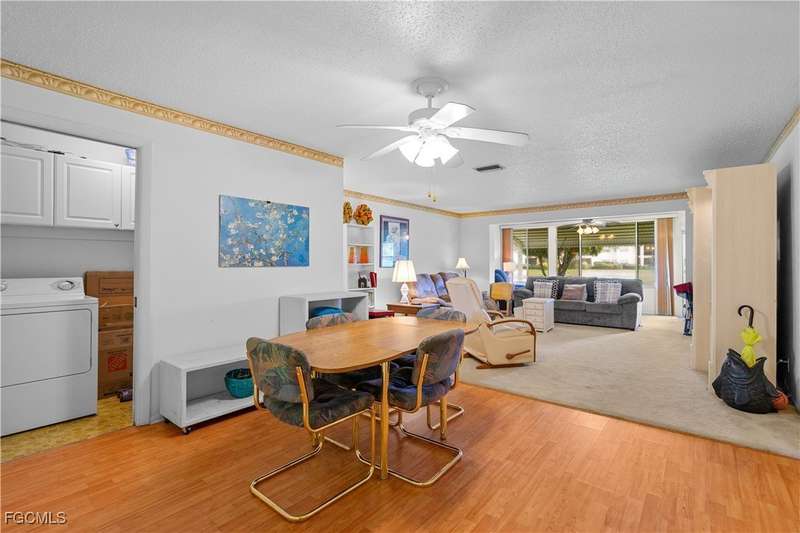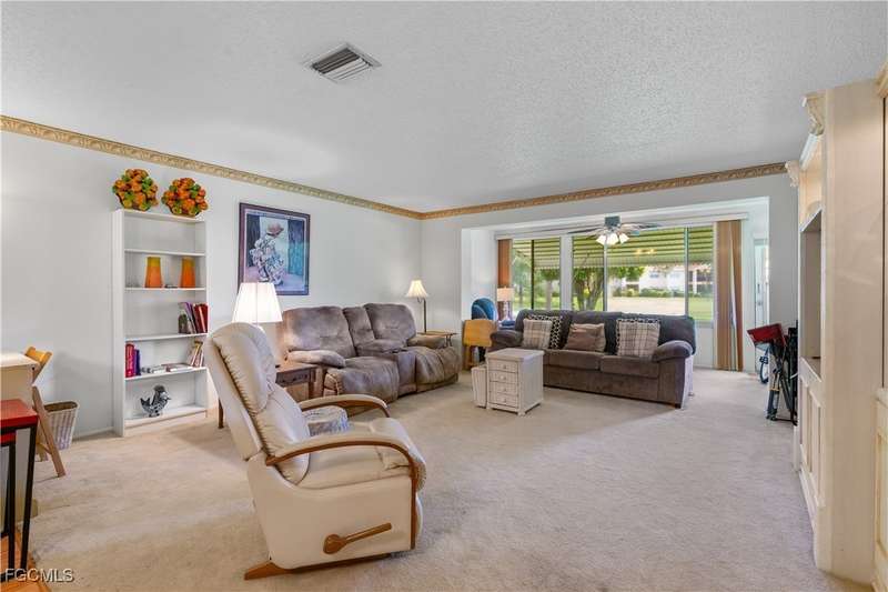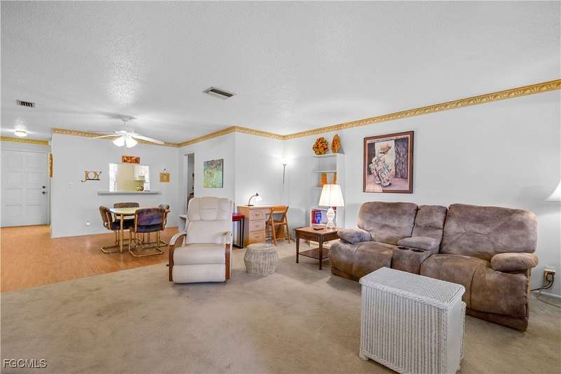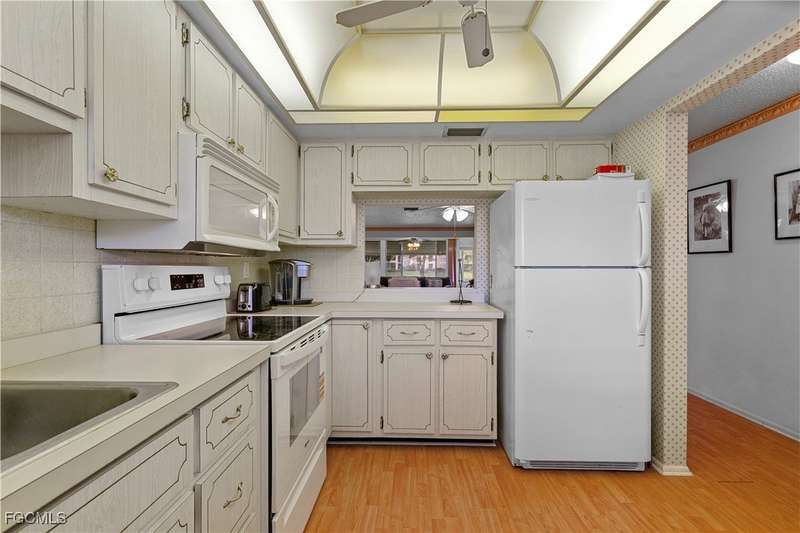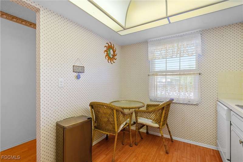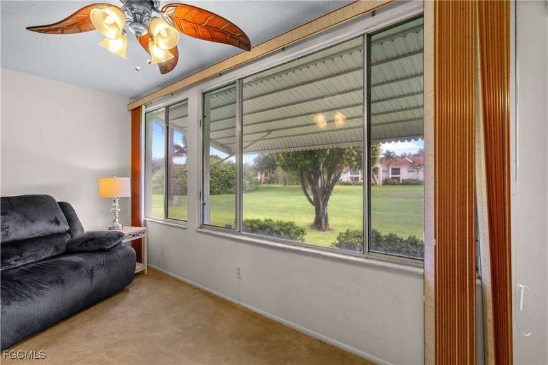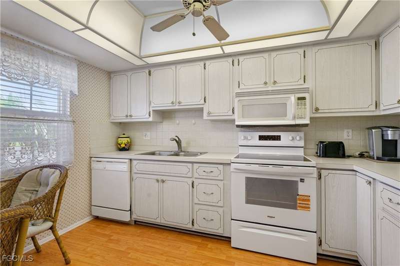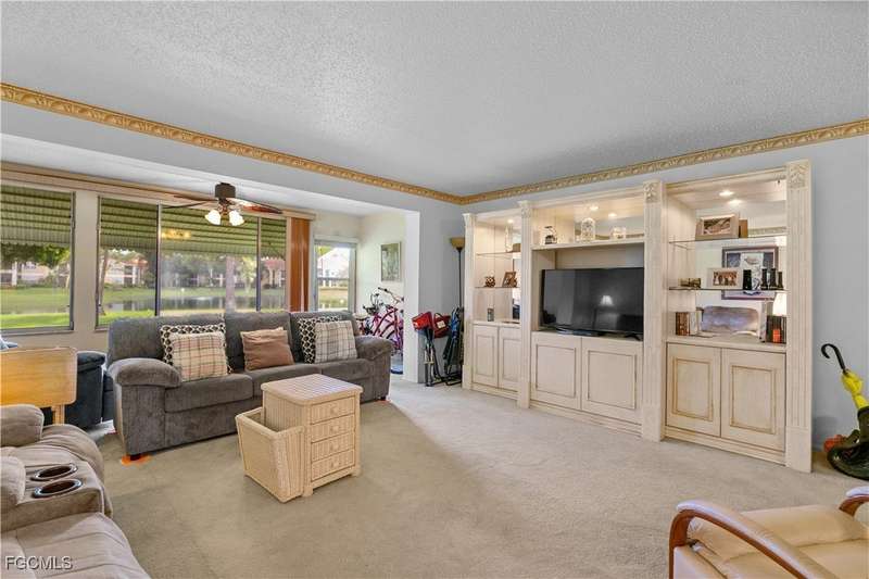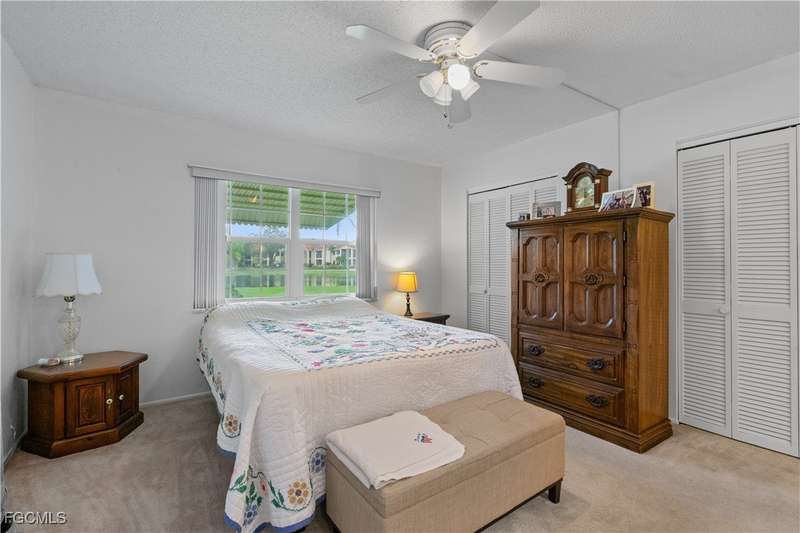 Welcome to Lake Lawn Condo. This beautiful FIRST FLOOR unit offers 2 bedroom, 2 bathroom, and over 1,300 square feet of living space with a bright and open floor plan. Stunning lake views from the unit makes of one of the best located condos in the entire development. Upgrades include a newer AC unit (2021), impact windows on the front of the unit, and a large laundry room. Being offered furnished, this condo is the definition of move in ready. Situated in a quiet and very well maintained 55+ community, the amenities here include a well kept clubhouse, community pool, shuffleboard, and covered parking all with very reasonable HOA dues. With convenient access to tons of local attractions such as the River District and Downtown Fort Myers, RSW Airport, tons of local shopping and dining options, and our beautiful beaches, you'll love the lifestyle offered here.