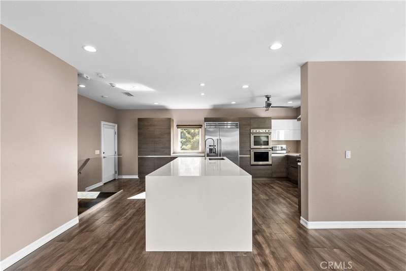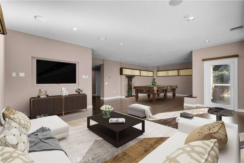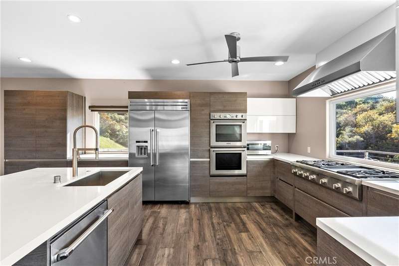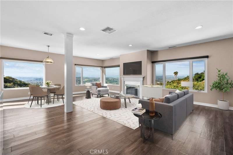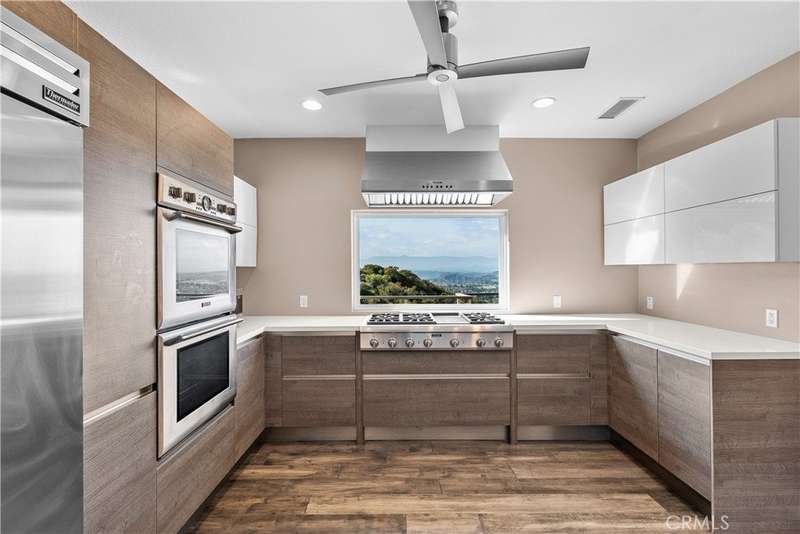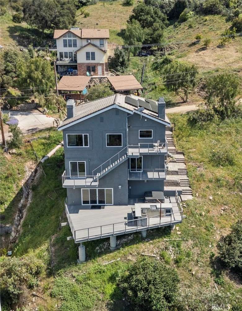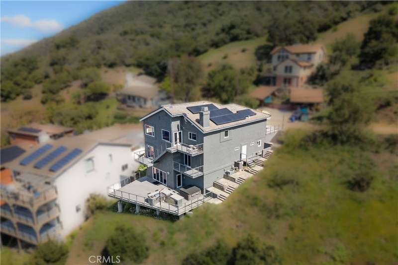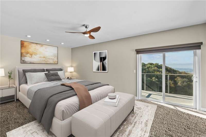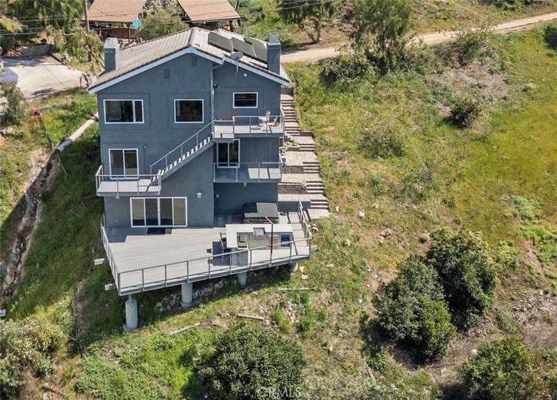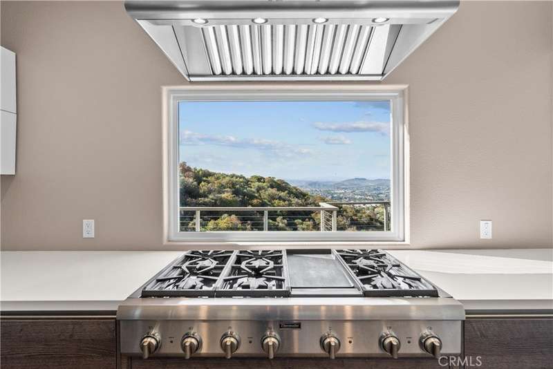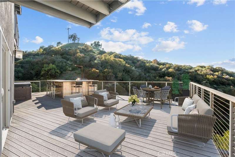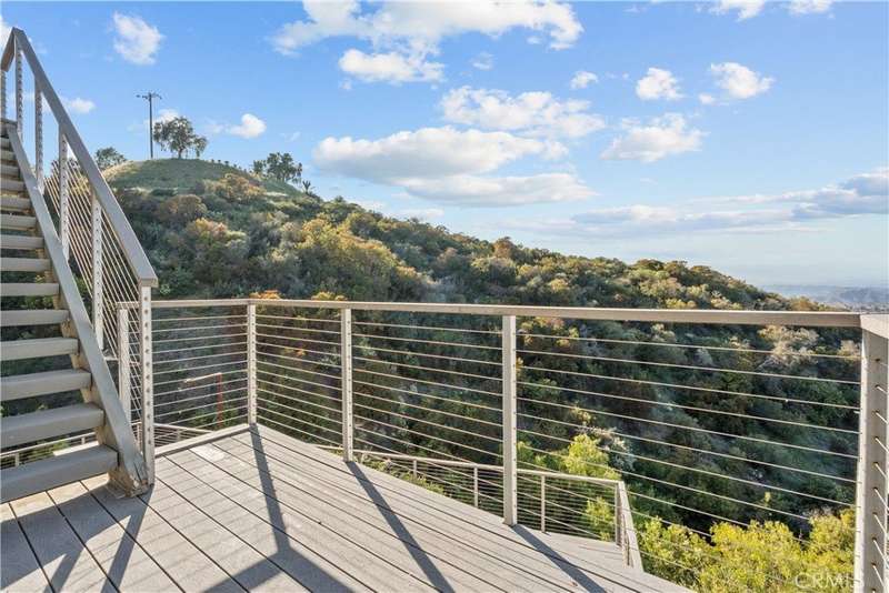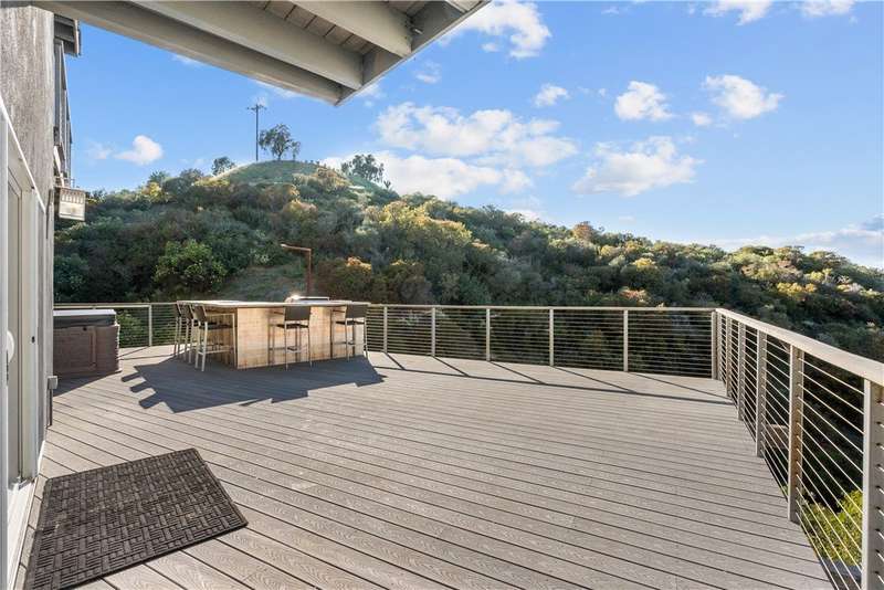 Nestled at the end of a private street with only one next-door neighbor, this exceptional home offers breathtaking valley views from every floor and three expansive balconies. Freshly painted inside and out, it blends modern elegance with ultimate privacy. The open-concept design features a sleek kitchen with Thermador appliances, European cabinetry, and a spacious island, all overlooking stunning views. The second level hosts the primary suite with balcony access, two additional bedrooms, a shared bathroom, and a laundry room. A separate living space with a private entrance and full bath offers rental or guest potential. The third level is built for entertaining, with a massive entertainment room, an additional bedroom, and a large deck with a jacuzzi. Luxury meets efficiency with paid solar, two tankless water heaters, Milgard windows, electric blinds, and individually zoned Nest thermostats. Just five minutes from freeways, shopping, and dining. With 5 bedrooms and 5 bathrooms, this home is the perfect blend of space, sustainability, and sophistication. Don’t miss this rare opportunity to own a one-of-a-kind sanctuary in a prime location!