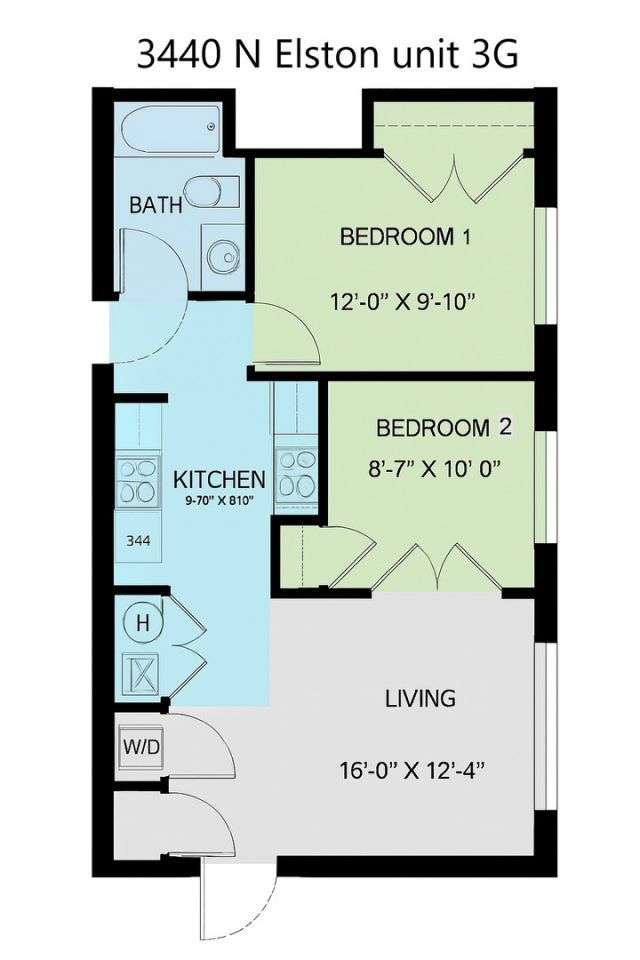 10 foot ceilings so it does not feel like a garden. In-unit washer and dryer, stainless steel appliances, dishwasher, over-the-stove microwave. Outdoor patio. Enjoy easy commuting from the nearby Belmont Blue Line Station, explore vibrant shopping and dining along Milwaukee Avenue, and relax at neighborhood parks like Kosciuszko Park and Brands Park.
