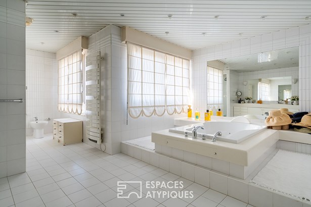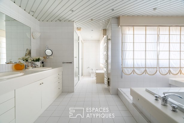 The layout has been designed symmetrically in which the day and night spaces confront each other, facing each other. The entrance reveals a vast living room bathed in light with an adjoining custom-fitted kitchen, the whole opening onto the terrace. The corridor serves as a dressing room in its entirety and serves two large bedrooms as well as a 20m2 bathroom with shower, jacuzzi and hammam. Plenty of storage space, a closed garage in the basement and a private outdoor parking space complete the features of this property. A second closed garage is available at an additional cost.