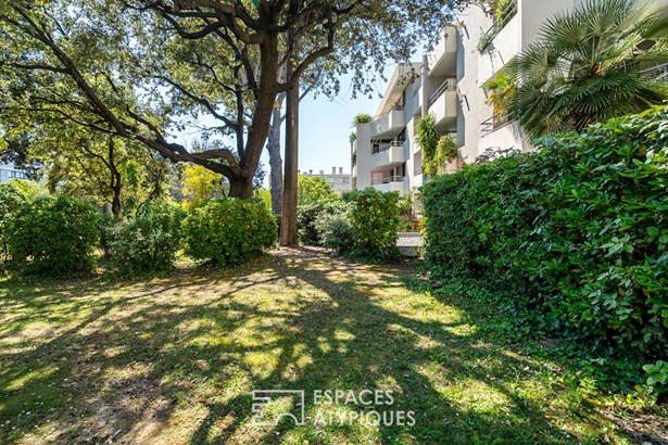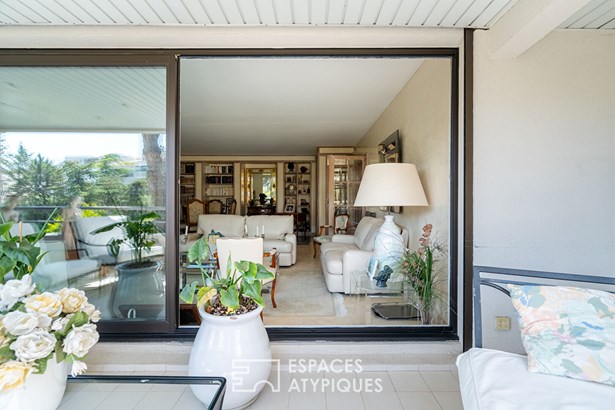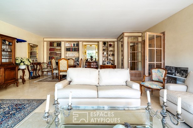 In the heart of a residence with caretaker, this living space benefits from a wooded park with a swimming pool to assert comfort and privacy. The volumes of the place organized around large open spaces, the marble flooring and the cladding of limed wood walls give this apartment a unique character.