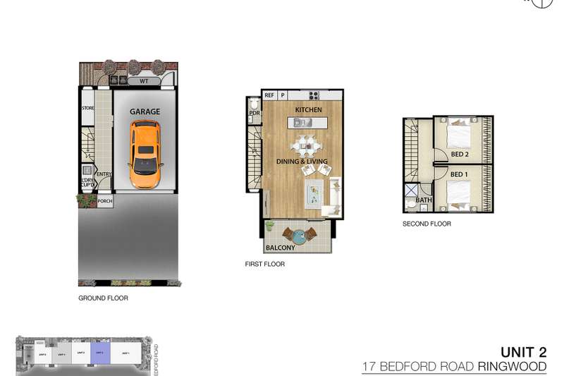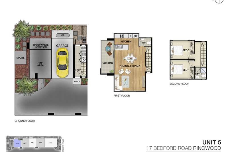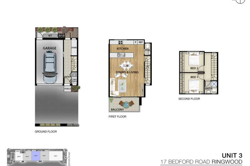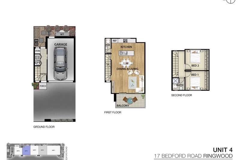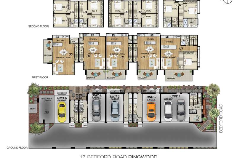 Construction has begun - See construction photos as of 18/06/2025 Exceptionally designed, these five brand-new townhouse apartments offer the perfect blend of style, comfort and convenience in the highly sought-after Ringwood Secondary College zone. With premium finishes, functional layouts and a prime location, these homes are ideal for modern family living. Spacious open-plan living and dining areas seamlessly connect to a dream kitchen featuring stone benchtops and modern appliances. Each home opens out to a private balcony, perfect for relaxed outdoor living. Units 2, 3, 4, and 5 each offer two generously sized bedrooms with built-in robes, a stylish upstairs bathroom, a convenient downstairs powder room and a single garage. Unit 1 stands out with its versatile layout, featuring 3 bedrooms, one bedroom downstairs and two upstairs, including the master bedroom with a walk-in robe and ensuite. This home has a remote controlled double garage with internal access. All homes will be complete with heating and cooling throughout, engineered timber flooring, carpeted bedrooms and high-quality fixtures. Each property is thoughtfully landscaped and beautifully finished. Perfectly positioned within walking distance of Ringwood Secondary College, Ringwood Station, Eastland Shopping Centre, Bedford Road shops, Aquinas College, Great Ryrie Primary, Our Lady's Primary School, local buses and the picturesque Ringwood Lake. With EastLink and Tintern Grammar just minutes away, the location offers unparalleled access to everything you need. UNIT 1: $949,000 UNIT 3: $749,000 UNIT 4: $749,000 UNIT 5: $729,000