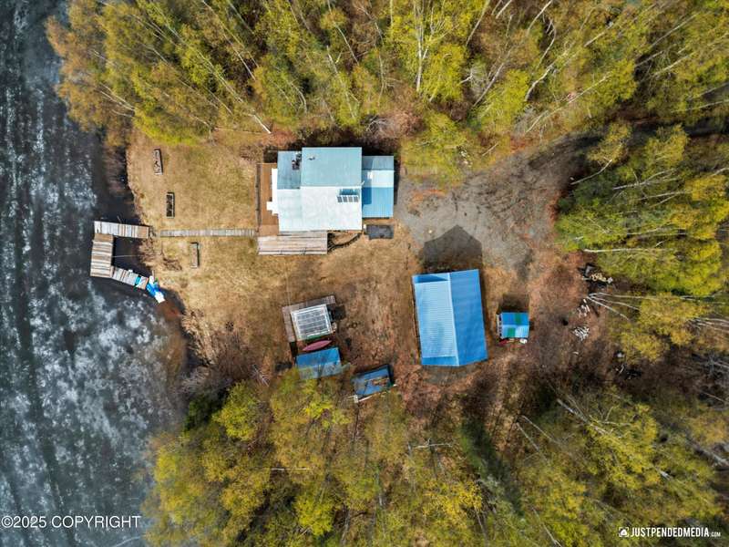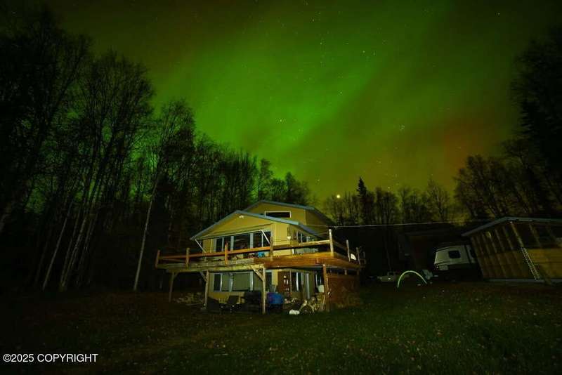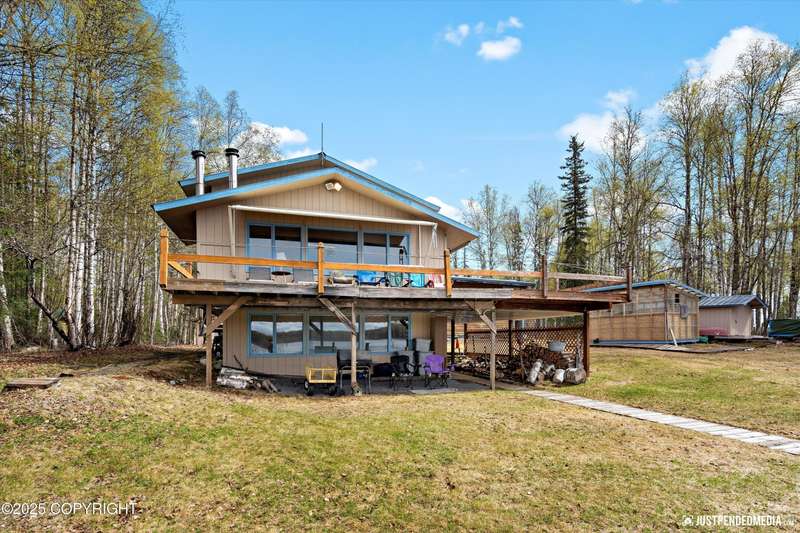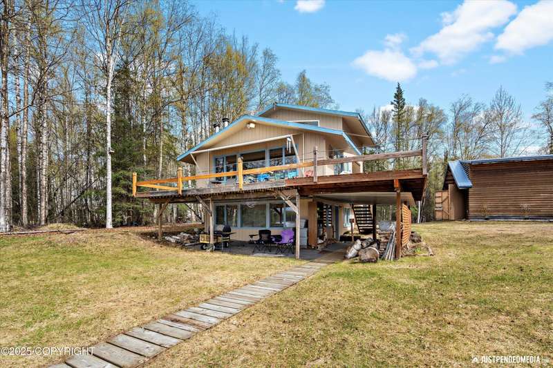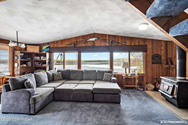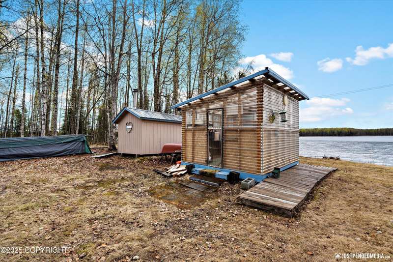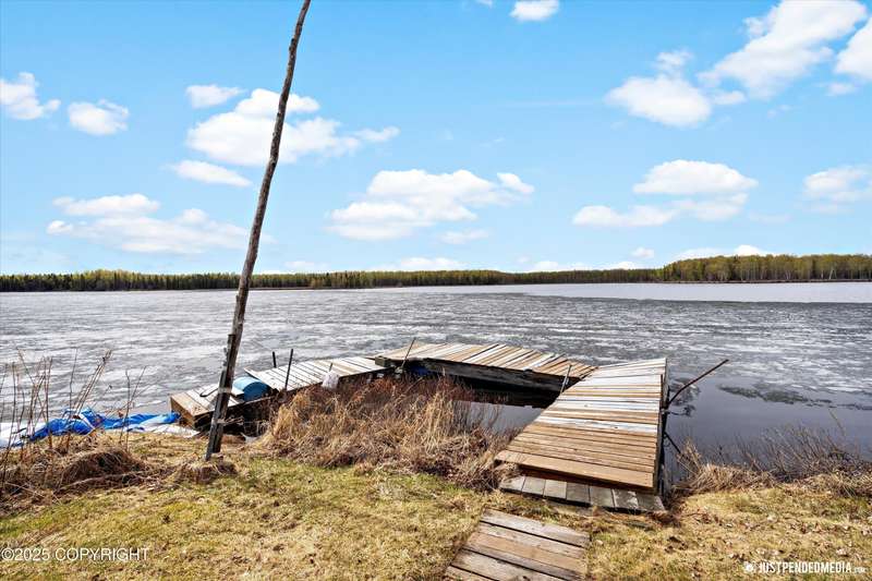 IMAGINE life on 131' of motorized Vera Lake! Watch the Iditarod from your dock, fish, floatplane, boat, or snowmachine. Off-grid cabin w/solar + diesel generator, wood stoves, full kitchen, loft, lake views, and wraparound deck. Detached 620 sf shop w/loft, sauna, greenhouse & more. Sellers open to fully furnished—Airbnb potential! A true Alaskan escape with year-round access and adventure.