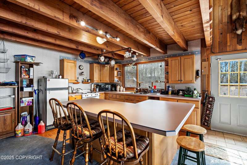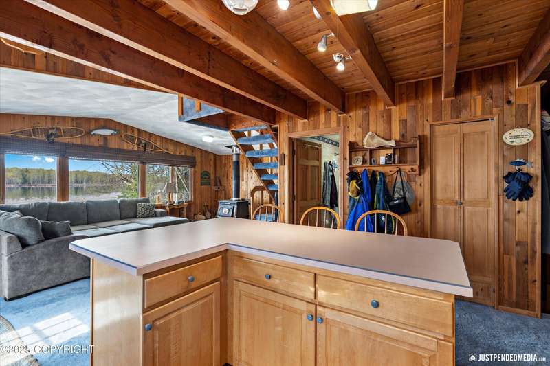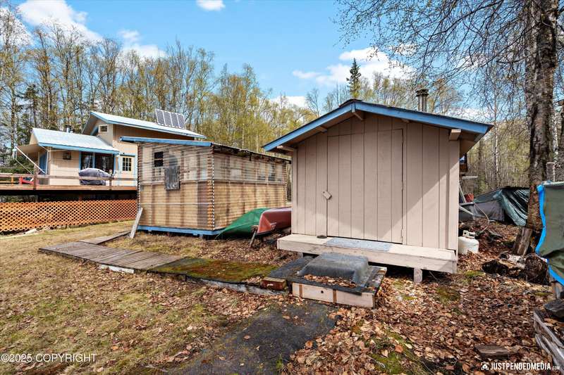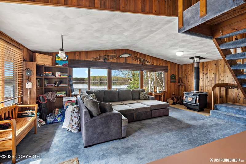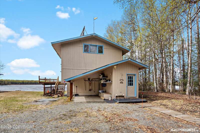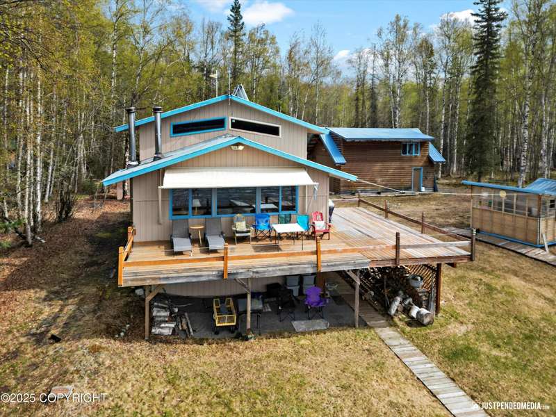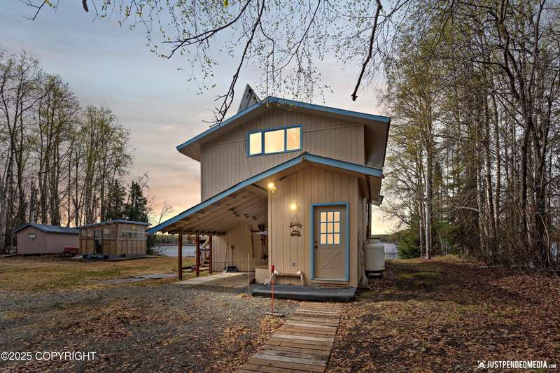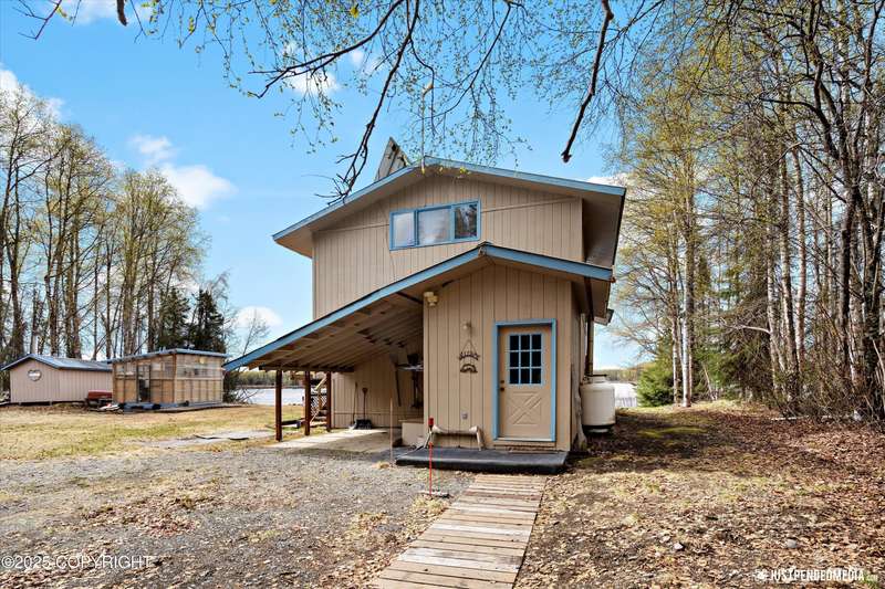 IMAGINE life on 131' of motorized Vera Lake! Watch the Iditarod from your dock, fish, floatplane, boat, or snowmachine. Off-grid cabin w/solar + diesel generator, wood stoves, full kitchen, loft, lake views, and wraparound deck. Detached 620 sf shop w/loft, sauna, greenhouse & more. Sellers open to fully furnished—Airbnb potential! A true Alaskan escape with year-round access and adventure.