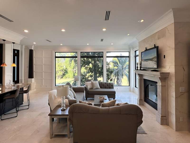 This Luxury Property offers a rare priced opportunity to live the resort lifestyle inside the gates of the Sandestin Golf & Tennis Resort, and the Seller is offering $20,000 credit at closing for costs, home warranty and pre-paids. A custom-built 4 Bedroom, 5.5 Bath located on the beach side, South of US 98, over-looking the 13th fairway of Baytowne GC. This 3-story luxurious home provides the ultimate venue for resort living, entertainment and the environment for luxury living. Features of this property include: A fully appointed gourmet kitchen, granite, stone and wood trim throughout, travertine and wood flooring, custom cabinetry, elevator service to all levels, private pool with hot tub, steam-shower room, luxury master bath, oversized garage, private pool, spa and so much mo The main entry is on the street level, second floor of the house. Entering from the Front Porch, through the double front doors and into the Foyer and Entry Hall, the Library/Study with built in shelving is just off the right. The large Dining Room with a wall of built in cabinets and serving counter space is to the left. The Butler's Pantry with sink is between the Dining Room and Gourmet Kitchen. This Kitchen with loads of Granite counter space provides the layout for a culinary extravaganza. There is a 6 Burner Gas, Viking Stove with Grill, Griddle and Double Ovens nestled in a custom wood mantle with inside lined granite wall slabs and vent. Across from the stove is a Granite topped Island with a Warming Drawer, Dual Refrigerated Drawers, and an extra wide serving drawer and there is an additional wide & deep drawer, and cabinets on the other side as well. On the other side of the Island in Kitchen stand the Sub-Zero Refrigerator & Freezer combination nested in cabinetry. The Microwave is just to the right set in the many cabinets that abound. From the Kitchen to the Living Room there are Double Wine Racks (Capacity=50 ea.) on each side of the steps leading to the Full Wet Bar, with both Wine Cooler and Cold Storage Refrigerator, Ice Maker, Sink and ample cabinets and shelves for stock. Just to the right from the Bar is the Elevator to the other levels. From the steps of the Kitchen down to this area it becomes wide open. The light comes in through five large Floor to Ceiling Windows in this expansive Living Room overlooking the 13th fairway of the Baytowne Golf Course. Recessed angle lighting is abundant and there is a floor outlet in the center of the room for convenience. In the Living Room to the right of the corner windows is an oversize gas fireplace with glass front and is framed inside a stone mantle. Next to the fireplace to the right is a wall of custom-built shelves. On the other side of the room, to the right of the Bar on the windows side of the Living Room are steps to a door for the 18x9 Balcony overlooking the pool and golf course, and this Balcony also connects to the Kitchen on the same level through another door. There are two other entry points to this spacious Living Room. The main one is via steps with triangle platform on one side leading from the Entry Hallway which has along each wall a semi-circle cylindrical inset with directional lights above in the ceiling. The other is up the steps by the rack of wall shelves to the hallway that has the guest bath off to the right and at the end a large Laundry Room with plenty of built-in cabinets, counter space and sink. Washer & Dryer INCLUDED! From the Laundry Room are