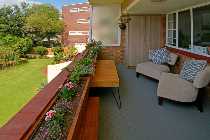 This spacious apartment, flooded with good, natural light, offers: sleek, modern kitchen (plumbed for two appliances & energy efficient gas hob) sits adjacent and is open to a comfortable dining area, large separate living room, spacious bedroom, attractive bathroom + guest cloak, good-sized, north-facing balcony, accessed from both the living area & bedroom, 1 parking bay. Additional features include: beautiful parquet flooring, town gas, cat friendly, 24/7 off site security monitoring. Sought-after Waverley, with its easy access to the M1 & the major commercial & retail centres of Melrose Arch, Rosebank & Sandton, makes this the ideal lock-up-and-go.
