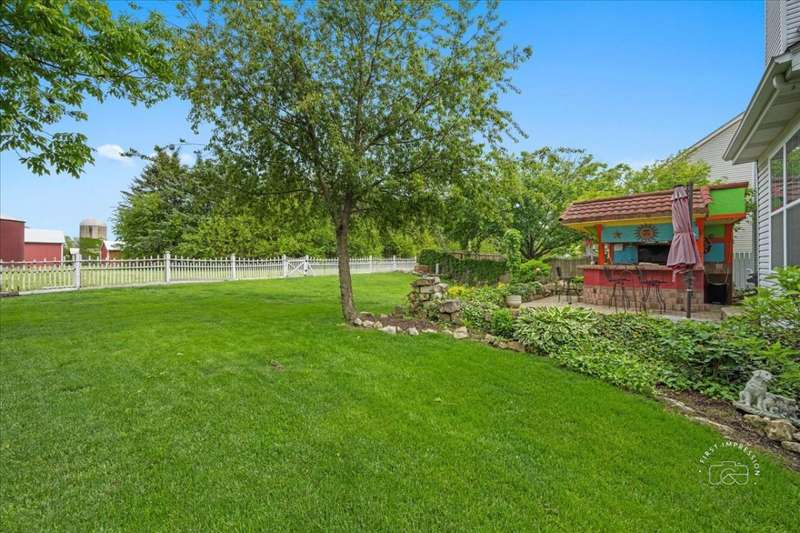 Welcome to 343 Diane Court in Geneva, IL - Fisher Farms Living at Its Finest! Tucked away on one of the most desirable lots in Fisher Farms, this spacious home sits at the end of a peaceful cul-de-sac and offers incredible views of open farmland and scenic pastures. Enjoy the privacy and beauty of nature right from your fenced-in backyard-this is one of the most picturesque settings in the neighborhood. With over 3,600 square feet of finished living space, you will step inside to a thoughtfully designed layout with hardwood floors throughout the main level and 20-foot ceilings in the family room, anchored by a beautiful fireplace. The open-concept living continues with a formal living room, dining room, flexible bonus room, and a full bathroom on the main level. The heart of the home-the kitchen-features 42 cabinets, new granite countertops, new stainless steel appliances, and upgraded essentials including a new dishwasher, refrigerator, and microwave. A spacious laundry/mudroom with a new dryer provides practical functionality just off the attached 2-car garage, which includes extra storage and a pulley system for bikes and seasonal items. Upstairs, you'll find four bedrooms, including a private primary suite complete with a personal balcony overlooking the tree lined street, a walk-in closet, and a luxurious en suite bath with a soaking tub, dual vanities, and separate shower. The additional bedrooms all include custom closet organizers and share a full hall bath. The finished basement extends the living space with a fifth bedroom, media room, office, full bathroom, and generous storage-ideal for guests, hobbies, or working from home. Recent updates and features include: New roof (2017), Top-tier HVAC system (2016). New dryer, dishwasher, refrigerator, and microwave. Backup sump pump. Covered backyard patio with built-in bar and seating area. All bedroom closets feature built-in organizers Located just minutes from Geneva Commons, top-rated Heartland Elementary School, bike and walking trails, and parks, this home is perfectly positioned for comfort, convenience, and connection to the outdoors. Don't miss this rare opportunity to own a move-in-ready home with exceptional upgrades and unmatched views in one of Geneva's most sought-after neighborhoods. New carpet to be installed prior to move-in. 3X rent per month for income requirements. All persons over 18 years old must apply (background & credit check). Additional security deposit for pets required.