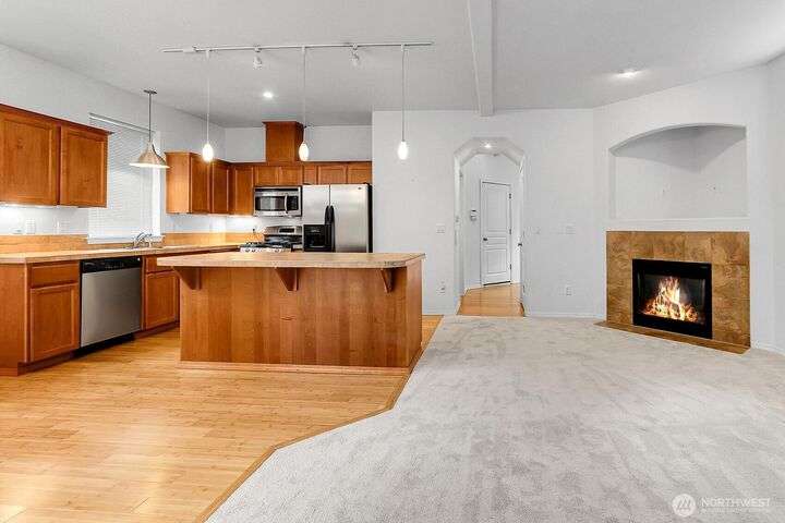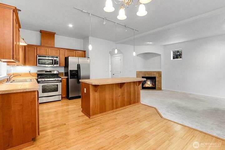 Stand-alone home in the Crossings at North Creek. Main level features 9-ft ceilings, open-concept living/dining areas, gas fireplace, powder room & access to fenced backyard. The chef’s kitchen is equipped with gas range, stainless appliances +undermount lighting. Upstairs, the spacious primary suite offers French doors, walk-in closet, and 5-piece bath. Addl highlights include tankless water heater, central vac, gas forced air heat, and 2-car garage. The top-level flex space is perfect for a bedroom, home office, or bonus room. Terms: 1st, sec dep equal to 1 month rent minus application fee. 6+ month lease. No smoking. 1 small dog ok, under 30 lbs. No co-signers. Renters insurance reqd. Min credit score: 700+. Verified income ratio: 3:1.