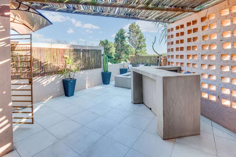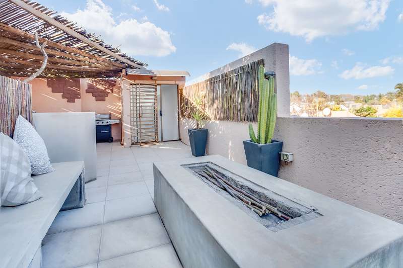 We have released yet another gem on the market Pet friendly, quiet, clean and peaceful corner unit in a well-maintained sought-after estate! Explore luxurious living in this 3 bedroom main ensuite duplex with a captivating upper roof deck area. Immerse yourself in modern design, spacious interiors and a private retreat overlooking the skyline. Your dream home awaits – experience elegance and comfort. DOWNSTAIRS: Garage, which leads straight onto a well-manicured private garden, with pool. Newly renovated kitchen with modern finishes, lots of cupboard space, two appliances, gas stove, the lounge flows onto a private well-manicured garden and pool. UPSTAIRS 3 bedrooms main ensuite, Second bathroom with shower. Upper rooftop deck area with breath-taking views Located within walking distance to the golf driving range. The Gautrain bus route and Monte Casino are a stone throw away. Magaliessig is ideally located near all major roads and major shopping centres. Asking R1 850 000
