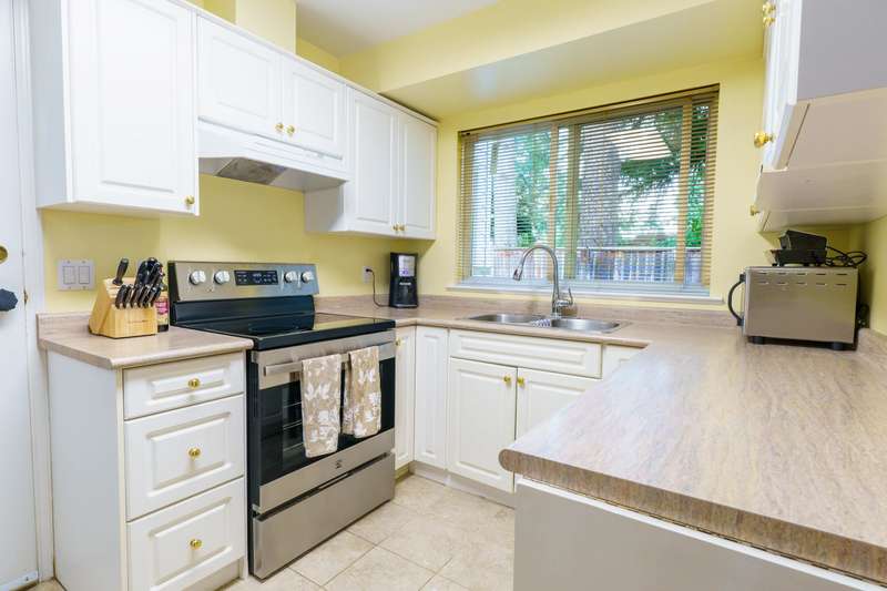 Piccadilly Place in West Maple Ridge! Spacious, freshly painted family home - white kitchen cabinets & newer s.s. appliances. The family room has a custom built bar, ideal for entertaining or serving up fun milkshakes to the kids. Bright, open living room with cozy gas fireplace. Convenient 2 pc. powder room. UP - large primary bedroom with updated 4 pc. ensuite, walk-in closet AND versatile flex room for working out or an office. Two more sizable bedrooms & another 4 pc. bath. Laundry room with newer W/D. New lighting fixtures brighten every corner of the home. Step out to a covered patio and private, fenced yard. Tandem garage 36'x10' for 2 cars. Pets welcome, no size restriction. Walk to Glenwood Elementary & MRSS. Parks, shopping, transportation nearby.