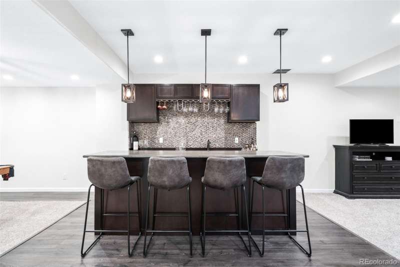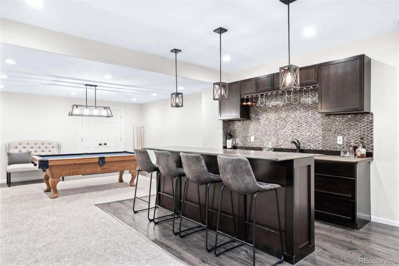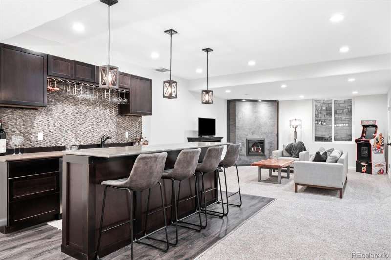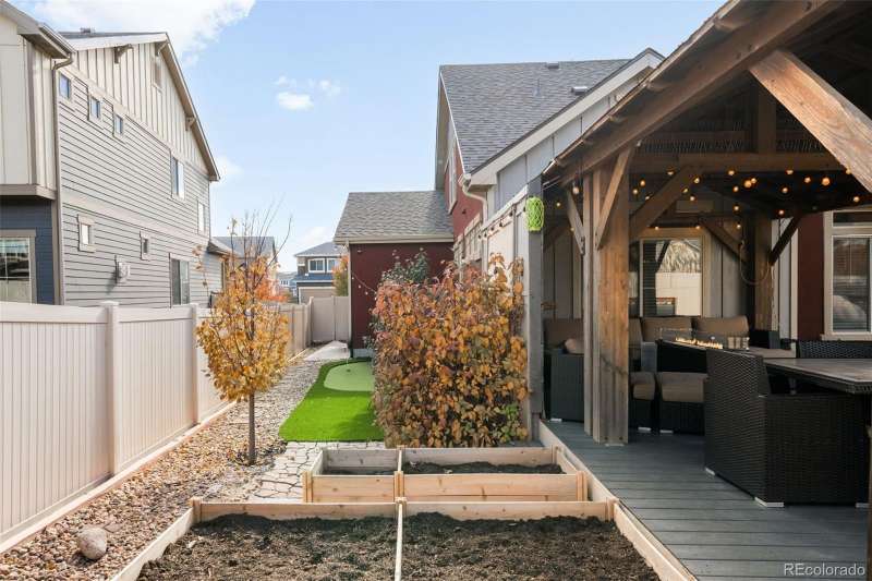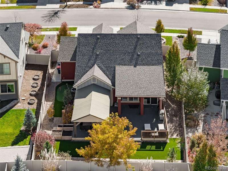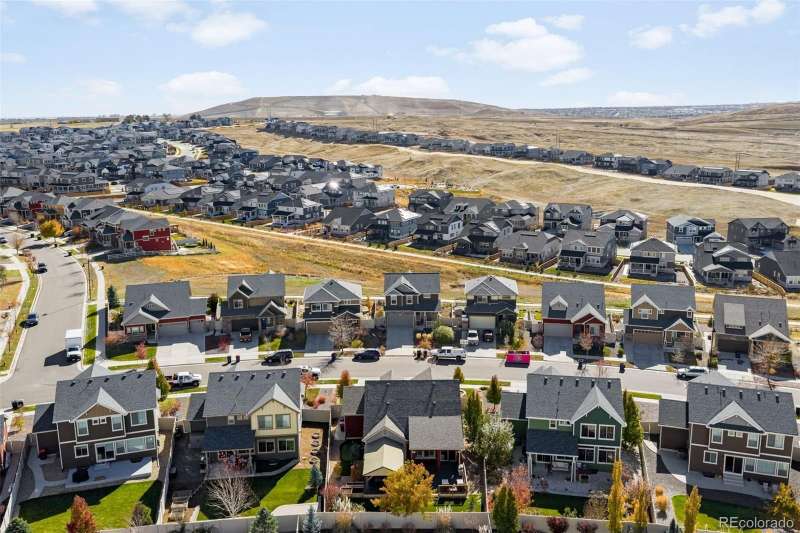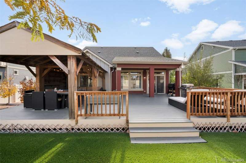 Beautifully upgraded home with the look and feel of a model! The seller spared no expense on custom builder upgrades, creating a truly move-in-ready home. Enjoy honed leather granite slab counters, a large center island, Whirlpool stainless steel appliances, accent walls, ceiling height custom cabinets, and upgraded lighting throughout. The open and spacious floor plan flows seamlessly to a walkout expanded Trex deck, gazebo, and low-maintenance artificial turf with a putting green and built-in planters—perfect for relaxing or entertaining. Located in the desirable Erie Highlands community, residents enjoy expansive trails, parks, and a community pool, all with incredible views throughout the neighborhood. The finished basement offers even more living space, featuring an additional bedroom, wet bar, beverage refrigerator, and an included pool table. Upstairs, a loft provides flexible space for work or play. An oversized three-car garage with high doors adds convenience and storage. With the neighborhood pool and park just around the corner, this beautiful home is ideal for entertaining friends and family!