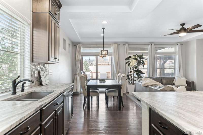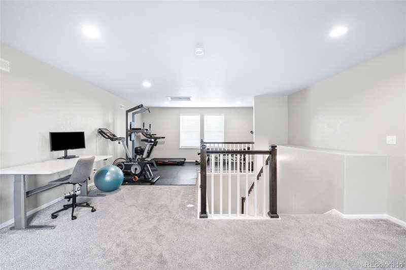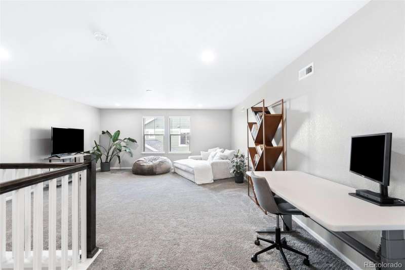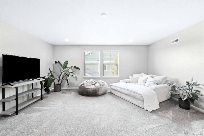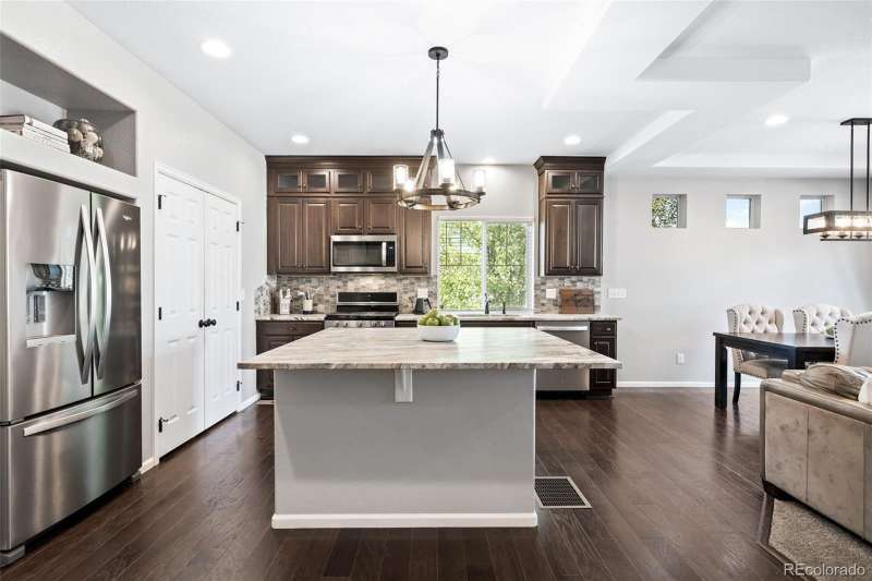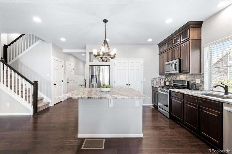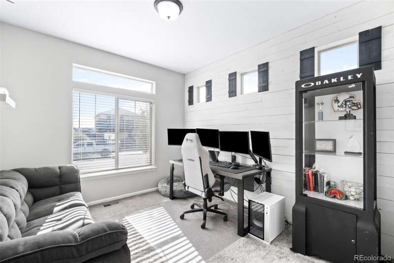 Beautifully upgraded home with the look and feel of a model! The seller spared no expense on custom builder upgrades, creating a truly move-in-ready home. Enjoy honed leather granite slab counters, a large center island, Whirlpool stainless steel appliances, accent walls, ceiling height custom cabinets, and upgraded lighting throughout. The open and spacious floor plan flows seamlessly to a walkout expanded Trex deck, gazebo, and low-maintenance artificial turf with a putting green and built-in planters—perfect for relaxing or entertaining. Located in the desirable Erie Highlands community, residents enjoy expansive trails, parks, and a community pool, all with incredible views throughout the neighborhood. The finished basement offers even more living space, featuring an additional bedroom, wet bar, beverage refrigerator, and an included pool table. Upstairs, a loft provides flexible space for work or play. An oversized three-car garage with high doors adds convenience and storage. With the neighborhood pool and park just around the corner, this beautiful home is ideal for entertaining friends and family!