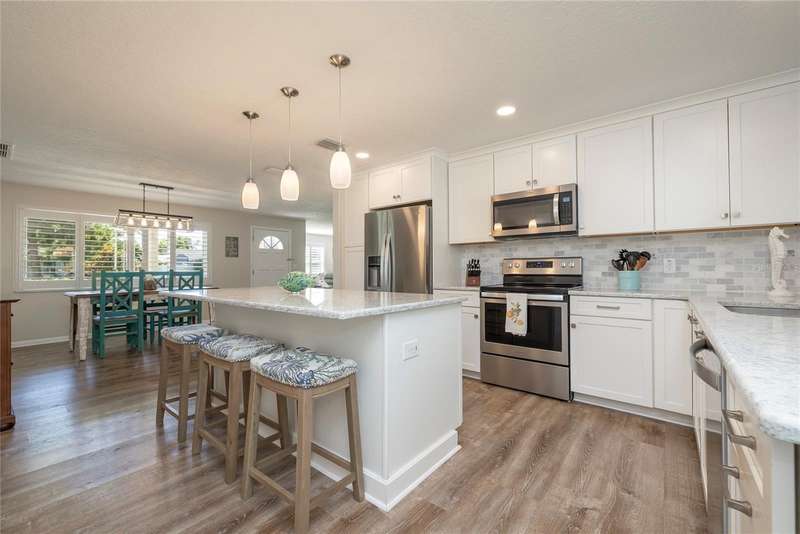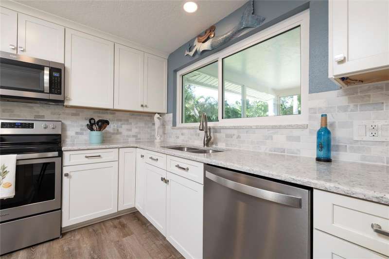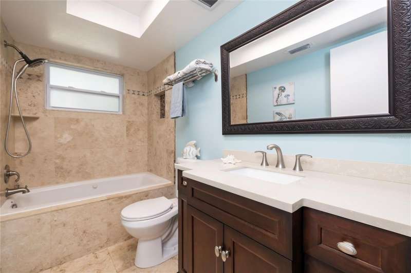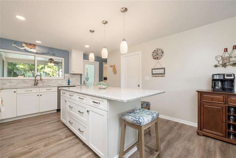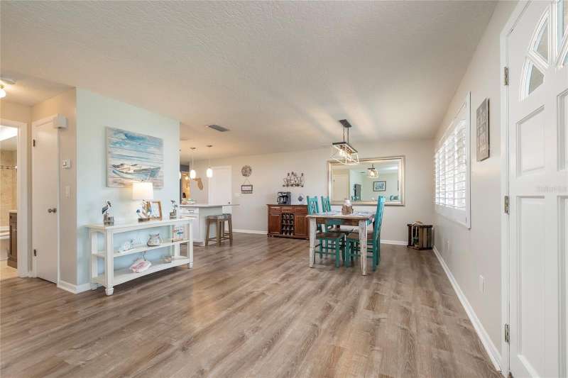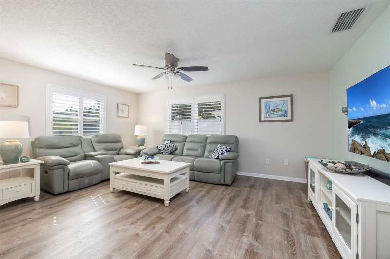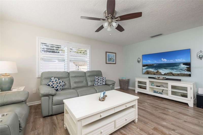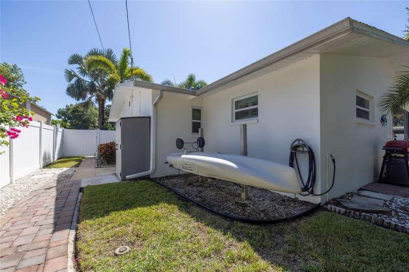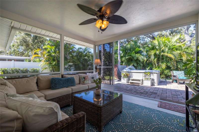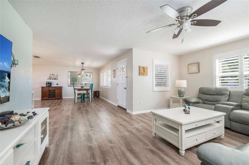 YOUR OWN PERSONAL PRIVATE PARADISE IN DELIGHTFUL DUNEDIN, FLORIDA - NO FLOOD INSURANCE REQUIRED - LOCATED IN GOLF CART ZONE - SPLIT PLAN - HOME WARRANTY OFFERED. This 2BR/2BA/2 Car Garage home is located in the Dunedin golf cart zone and is around the corner from the Dunedin Community and Fine Arts centers as well as Highlander Park. It is a short walk to the Pinellas trail and Hammock Park or a quick bike ride to Honeymoon Island. As you enter the home you will be amazed by the open floor plan with bright natural colors and coastal décor. The split-floor plan offers a primary bedroom which features an ensuite bathroom with walk-in shower, and a second bedroom with access to its own bathroom area with garden tub and French doors leading to the backyard. The bright updated kitchen features granite counters, large kitchen island with breakfast bar area, stainless steel appliances and under cabinet lighting with views of a very private fenced backyard and screened lanai. Once you enter the screened lanai you will feel like you have entered your own private paradise and outdoor living room. The backyard is completely fenced with 6-foot vinyl fencing, mature landscaping including Foxtail palms, Plumerias, along with Areca palms and Clusia providing privacy. Enjoy the large paver patio with an awesome 6 person hot tub with led lighting and waterfall. A firepit is in the center of the backyard for those cooler nights. The yard features landscape lighting throughout the front and back of the house. A parking area is dedicated on the side yard of the house behind the privacy fencing for a boat, golf cart, or other recreational vehicles. On the opposite side there is a location for hanging up kayaks or paddleboards. An irrigation system on reclaimed water is available to keep the grass and shrubbery looking beautiful. The large 2 car garage and large driveway give you plenty of room to park. Enjoy desirable Dunedin's downtown nightlife, festivals, & restaurants just minutes away. Don't forget to relax on your Gulf Beaches at Honeymoon Island, Caladesi Island, Dunedin Causeway, & Clearwater Beach! Tampa International provides a gateway to the world and is only 20 miles away or half-hour drive as well as Raymond James Stadium, home to the Tampa Bay Buccaneers; downtown Tampa is only a few minutes further and is home to the Tampa Bay Lightning and the Straz Center for Performing Arts. You may also want to go just 20 miles south to Downtown St Petersburg for the Tampa Bay Rays and the great night life and arts along Beach Drive. All this is within only a short drive from your future home. Listing agent is the owner.
