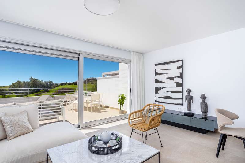 Are you looking for a house with panoramic views of the golf course and the coast? Green Golf is a new residential development of just 48 townhouses built over 2 storeys in a private residential complex, with communal pools and gardens, located in Estepona Golf, at the heart of the Costa del Sol. The houses with 3 bedroom have 220m2 of building surface distributed in 3 levels: parking with private basement for storage. First floor is distributed with an open plan concept kitchen, living and dining room, a guest toilet and a large terrace. Three bedrooms on the second floor with fitted wardrobes and two bathrooms, one of them en-suite. Gated and private urbanization with swimming pool and garden areas, designed with a contemporary style. A great opportunity to buy a townhouse off plan at an unbeatable price. A privileged location close to wonderful beaches such as Bahia Dorada, or marinas including Estepona, Duquesa, Sotogrande or Puerto Banus, equidistant from the internation