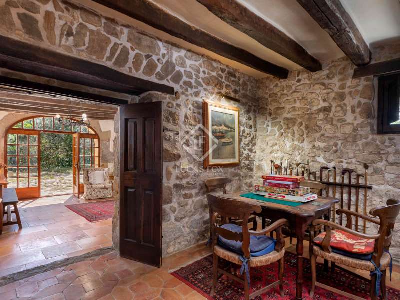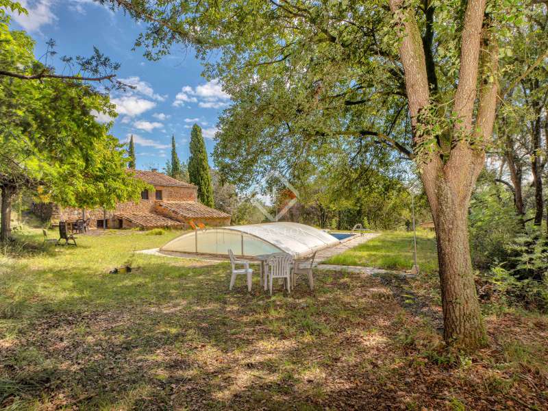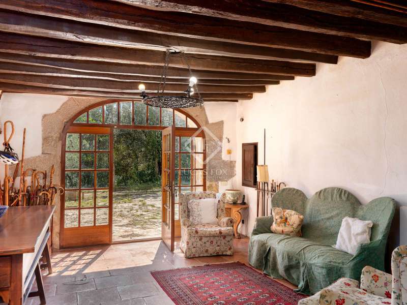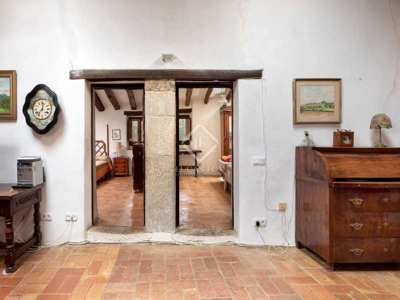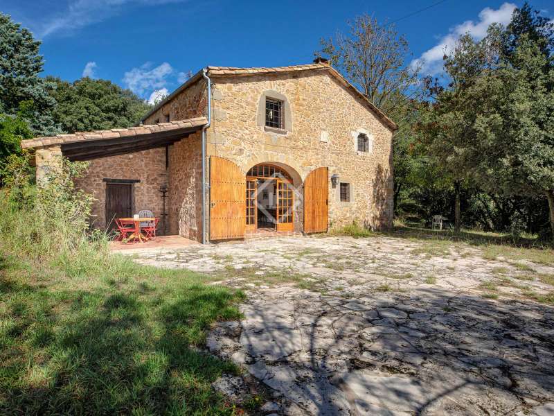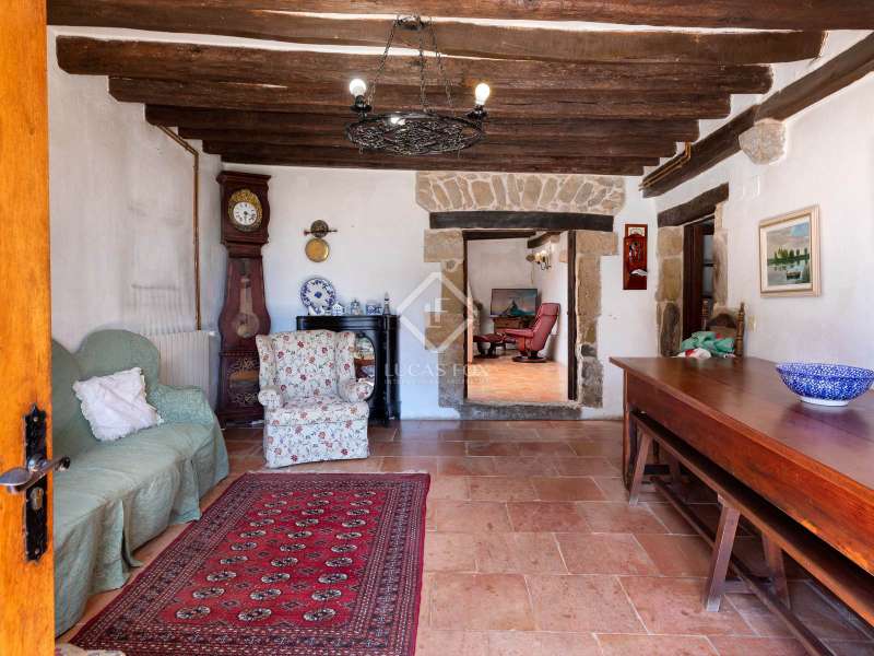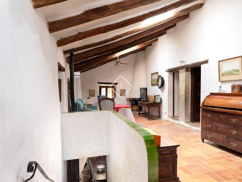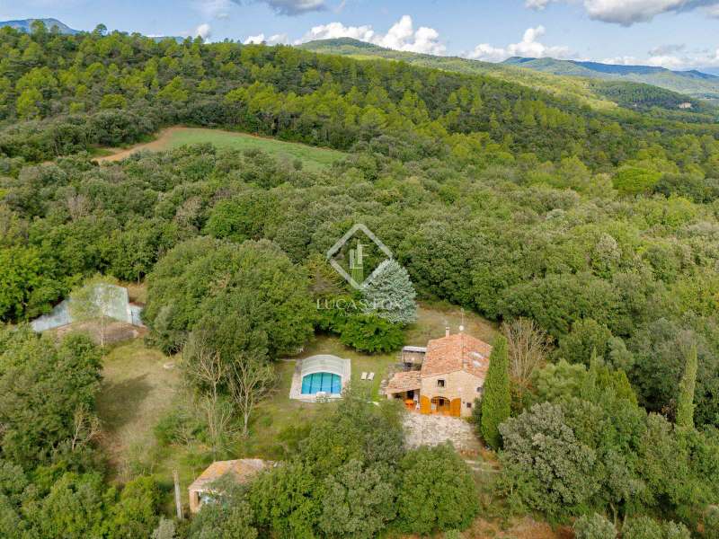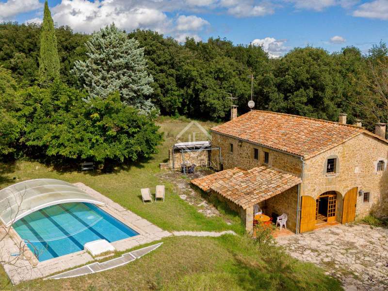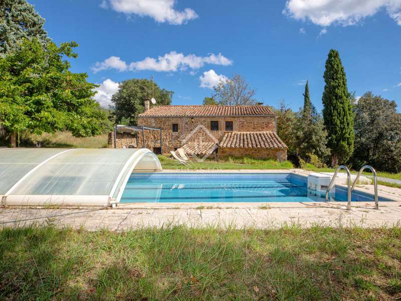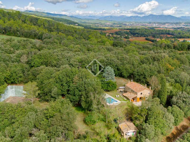 Lucas Fox presents this authentic 19th century country house , located in the idyllic Pla de l'Estany, Girona, in a natural setting. The country house sits on one hectare of private land. The construction combines rustic charm with modern comforts, ideal for those looking for a quiet retreat without sacrificing connectivity. The country house has a comfortable layout on two floors, which includes a large entrance hall with vaulted ceilings, a cosy living room with fireplace, a dining room and a kitchen with pantry. The ground floor also houses a single bedroom with bathroom and a storage room next to a porch that opens onto the extensive grounds. On the first floor, there is a second living room with fireplace, as well as three additional bedrooms and a bathroom. Exterior, there is a swimming pool, a tennis court and a beautiful private oak forest that surrounds the property and offers a quiet and private environment. Among its features, it is worth highlighting that the country house is connected to the public electricity and water supply, has a heating system with diesel oil and an old well that now functions as a cistern. There is also the possibility of expanding the current built surface, which offers great potential for improvement to adapt the country house to the needs and preferences of the new owner. Although the property retains its original charm with stone walls, wooden beams, terracotta floors and vaulted ceilings, it requires renovation to provide it with modern comfort and meet current needs, providing a unique opportunity to personalize every detail. Its location is equally privileged, making it an exceptional option for those who value rural tranquility without moving away from the main points of interest in the area.