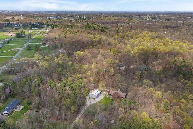 Escape to your own private retreat with this one-of-a-kind ranch, quietly tucked away on nearly 10 wooded acres in beautiful Ontario, OH! Perfect for those craving peace and solitude, this 2 bedroom, 2.5-bathroom home offers a serene lifestyle surrounded by nature. The spacious owner's suite is a true sanctuary, featuring a warm fireplace and a custom-designed shower that invites relaxation. Soaring vaulted ceilings, a custom kitchen, and a sunlit living room wrapped in windows create a sense of openness while keeping you connected to the natural beauty outside. The lower level offers added living space with a full bathroom and dual walk-out access. Step outside to enjoy a stamped concrete patio in the front and endless, secluded yard space in the back, ideal for peaceful mornings or starlit evenings. A detached workshop provides the perfect haven for hobbyists or extra storage. Privacy, charm, and space, this property has it all. More photos to come!
