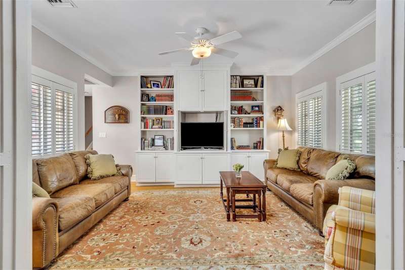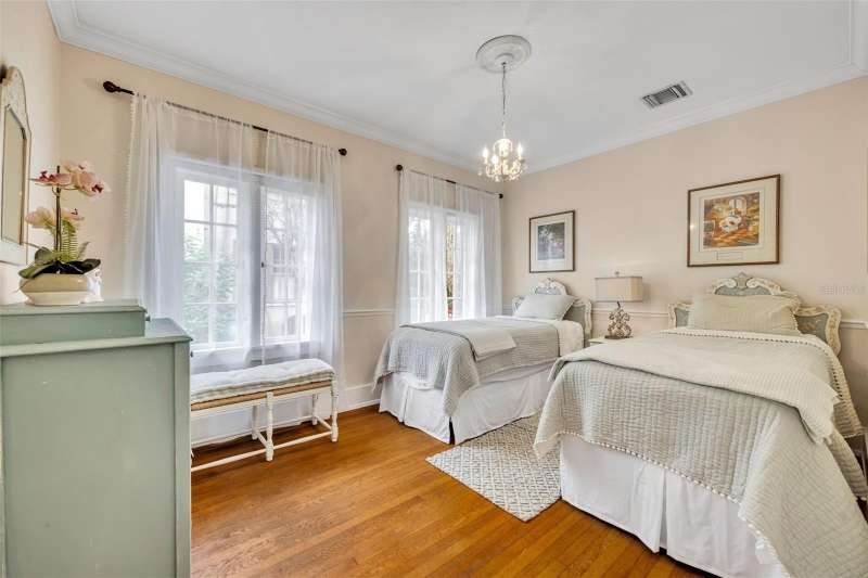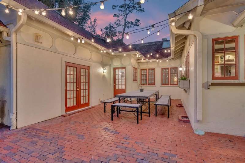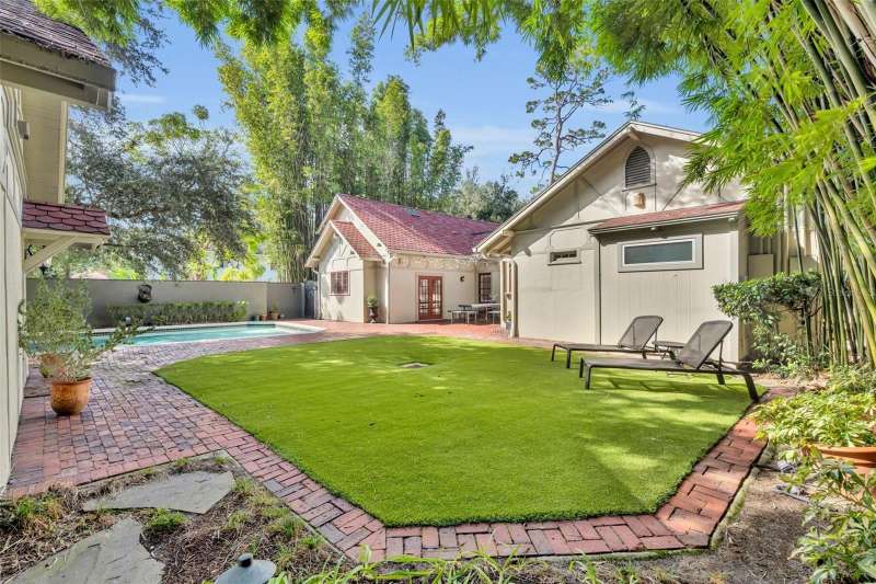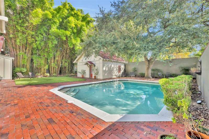 Step into storybook charm in the heart of one of Orlando’s most sought-after neighborhoods. Built in 1925, this Tudor-style gem exudes timeless character and warmth at every turn. From the moment you pull up on the brick-lined street, the curb appeal captivates, and the rounded front door with its classic mailbox slip hints at the enchanting details waiting inside. Inside, you're greeted by original wood floors, soaring ceilings with exposed beams, and a cozy fireplace in the living room, complete with a built-in bench by the window—pure charm. Adjacent to the living room is the spacious formal dining room, featuring French doors leading to the family room, and another door providing access to the heart of the home: the kitchen. Renovated in the early 2000s, the kitchen boasts a center island, dual sinks—one overlooking the backyard—stainless steel appliances including a Wolf range connected to natural gas, Sub-Zero refrigerator, dishwasher, and wine refrigerator. The study/den leads to a hallway featuring a full bath and two generously sized bedrooms, including one with an updated en-suite bathroom. On the other side of the house, the family room is filled with natural light, showcases built-ins, and connects to the fourth bedroom with en-suite half bath and laundry, as well as stairs to the primary wing. Upstairs, the primary suite is a retreat of its own. To the right, a spacious bedroom with abundant storage and character; to the left, a large bath and an oversized walk-in closet. Step outside to a courtyard ideal for al fresco dining, a sparkling saltwater pool, private trees, and low-maintenance artificial turf. The detached in-law suite is a standout—400 sf with a private entrance, kitchenette, and full bath. Currently used as a music studio, it’s ready to be a guest suite, private office, or rental opportunity. Additional highlights include two walkable attics, plantation shutters throughout, an attached two-car garage, and a prime location just minutes from Downtown Orlando, College Park, the new Packing District, Lake Highland Prep, The First Academy, Bishop Moore High, the Creative Village, the Dr. Phillips Performing Arts Center, and easy access to I-4 and SR 408. Call today to experience this home in person!